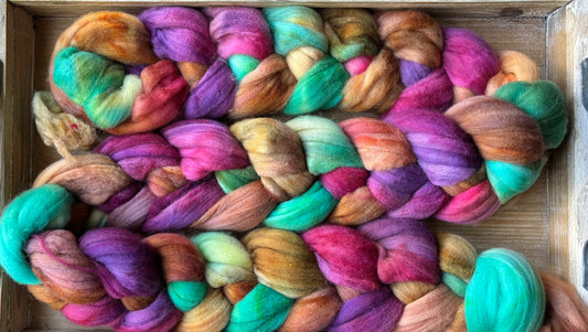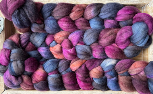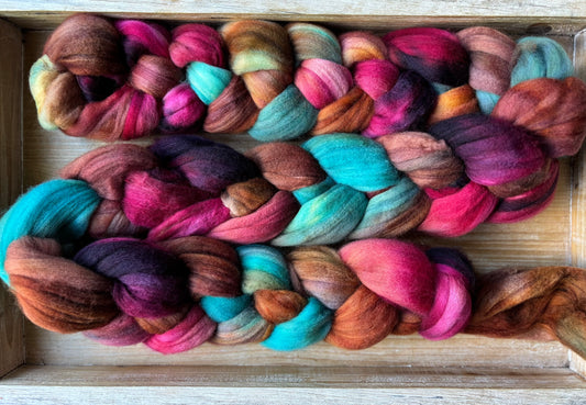 One of a Kind Batch - 100 grams of Spinning Fibre - Untreated Merino Wool 22 Micron - Hand Dyed Combed Top