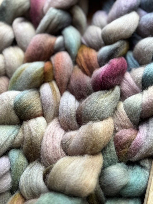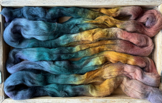 One of a Kind Batch - 100 grams of Spinning Fibre - 100% Targhee - 23 Micron - Hand Dyed Combed Top