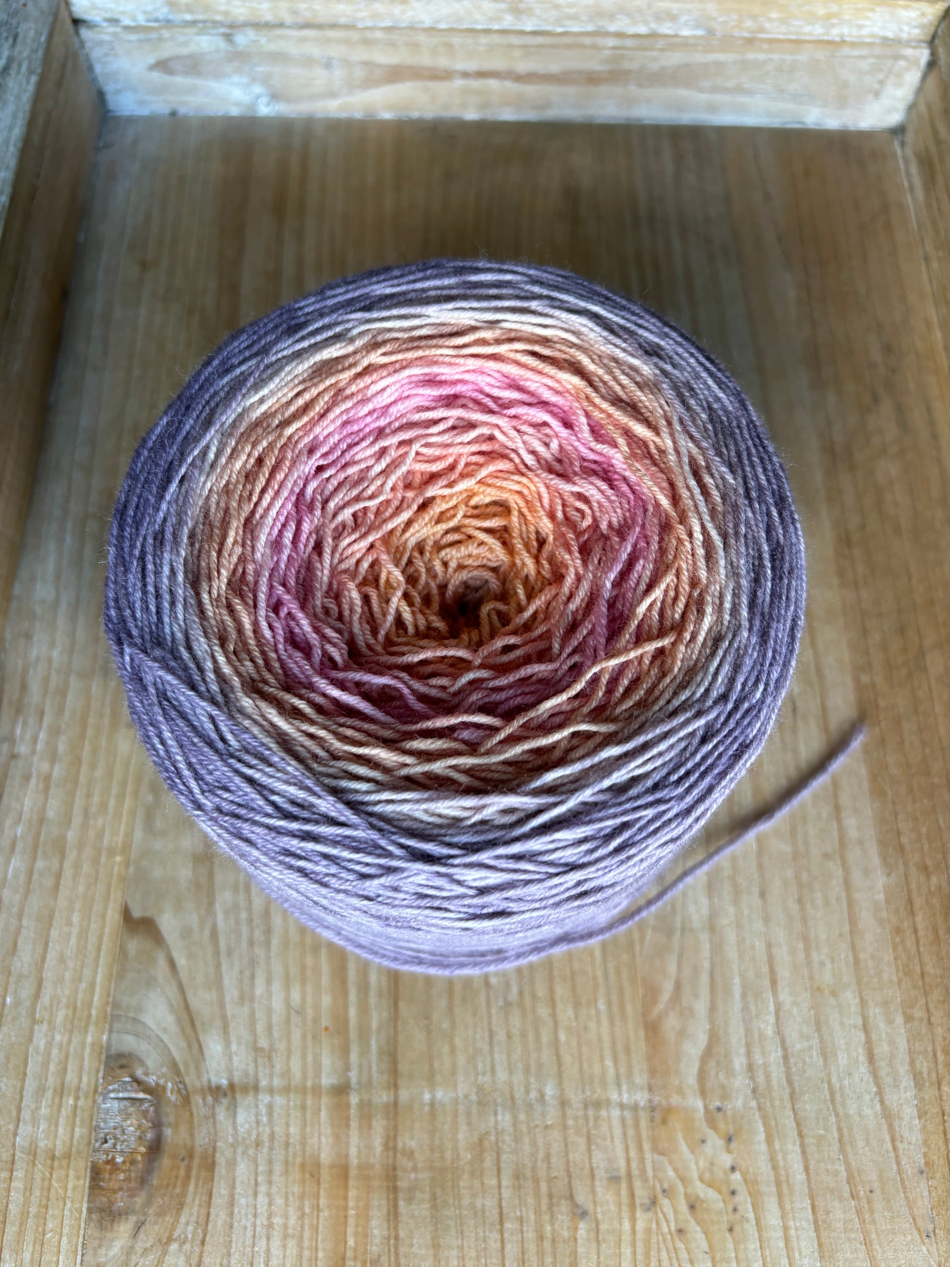 Teintes dans un fil lisse et continu, les couleurs passent lentement d'une teinte à l'autre, sans effort, sans les nuisances des jointures et des nœuds.
