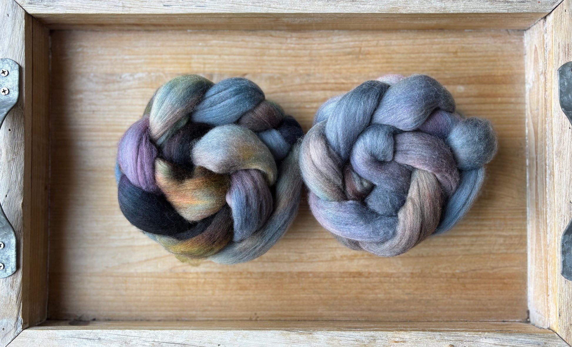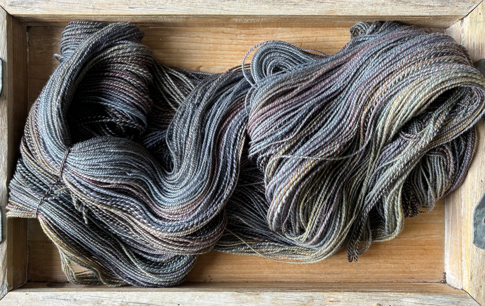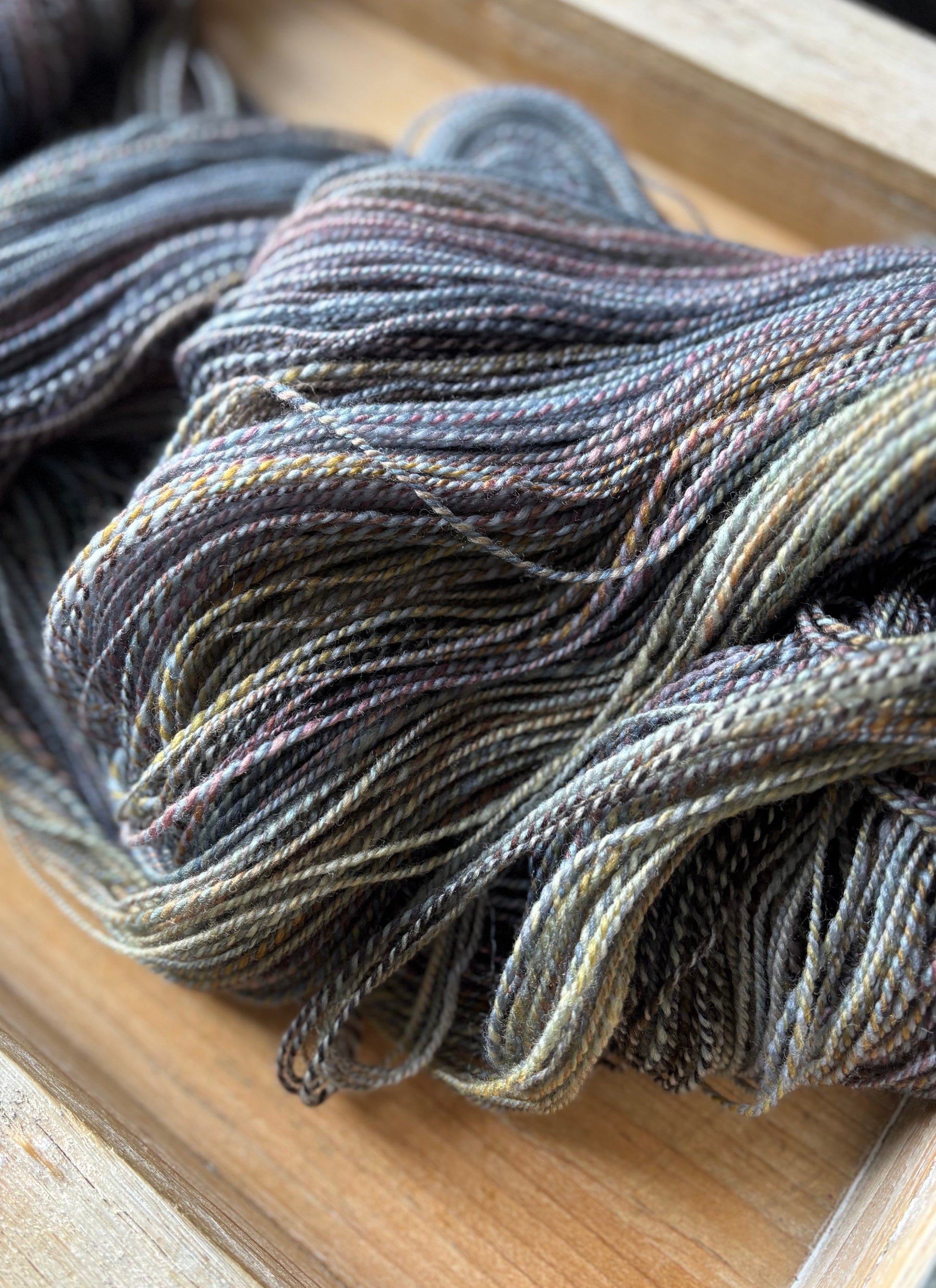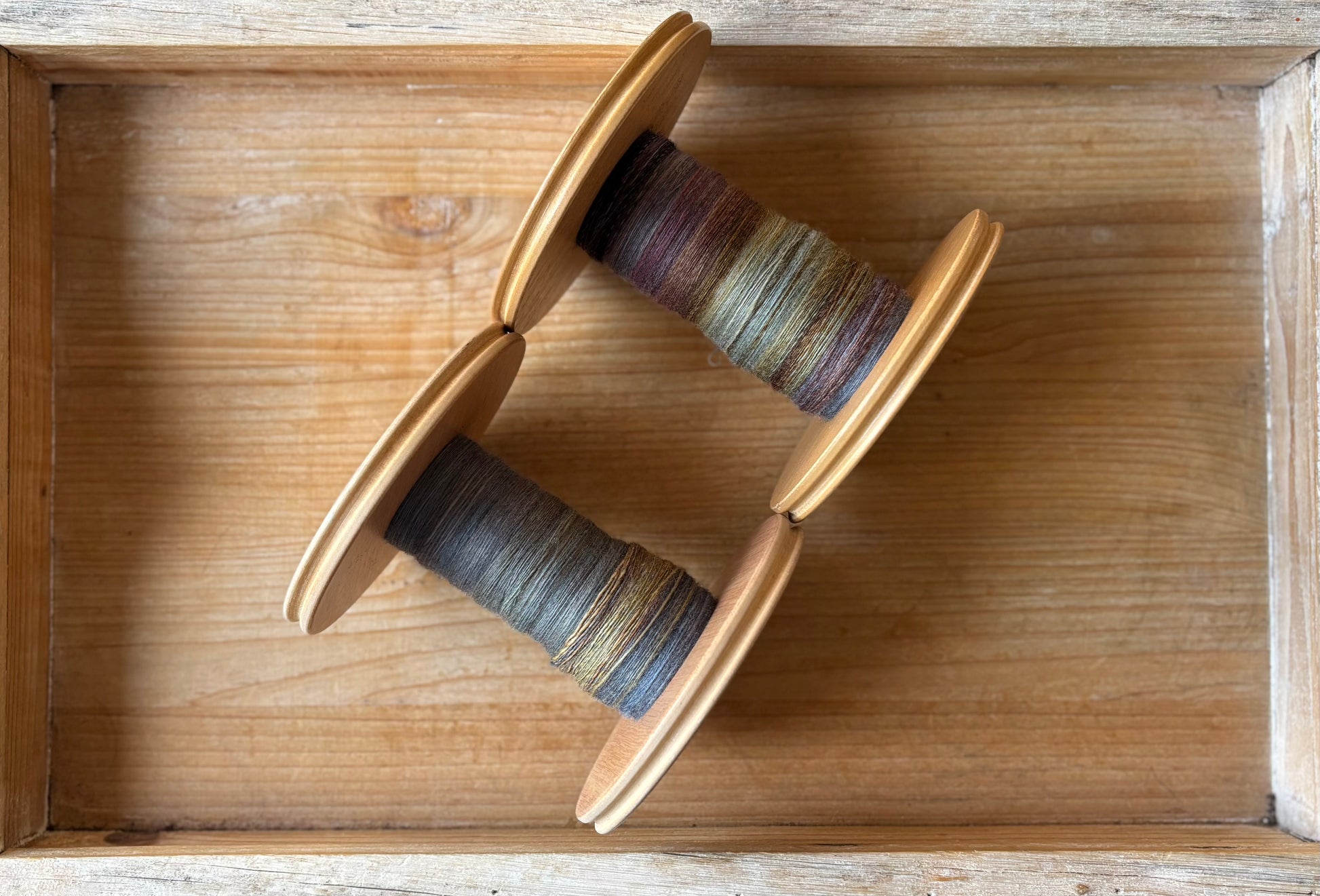 This was such a lovely spin, I’m just loving how one braid can end up looking completely different on two different bobbins, but then collide together to create some seriously beautiful yarn! have discounted this skein by 10$ due to a break in the yarn, my swift was spinning a little too fast during the re skeining process and sadly snapped in one place. Such a bummer but it happens.
