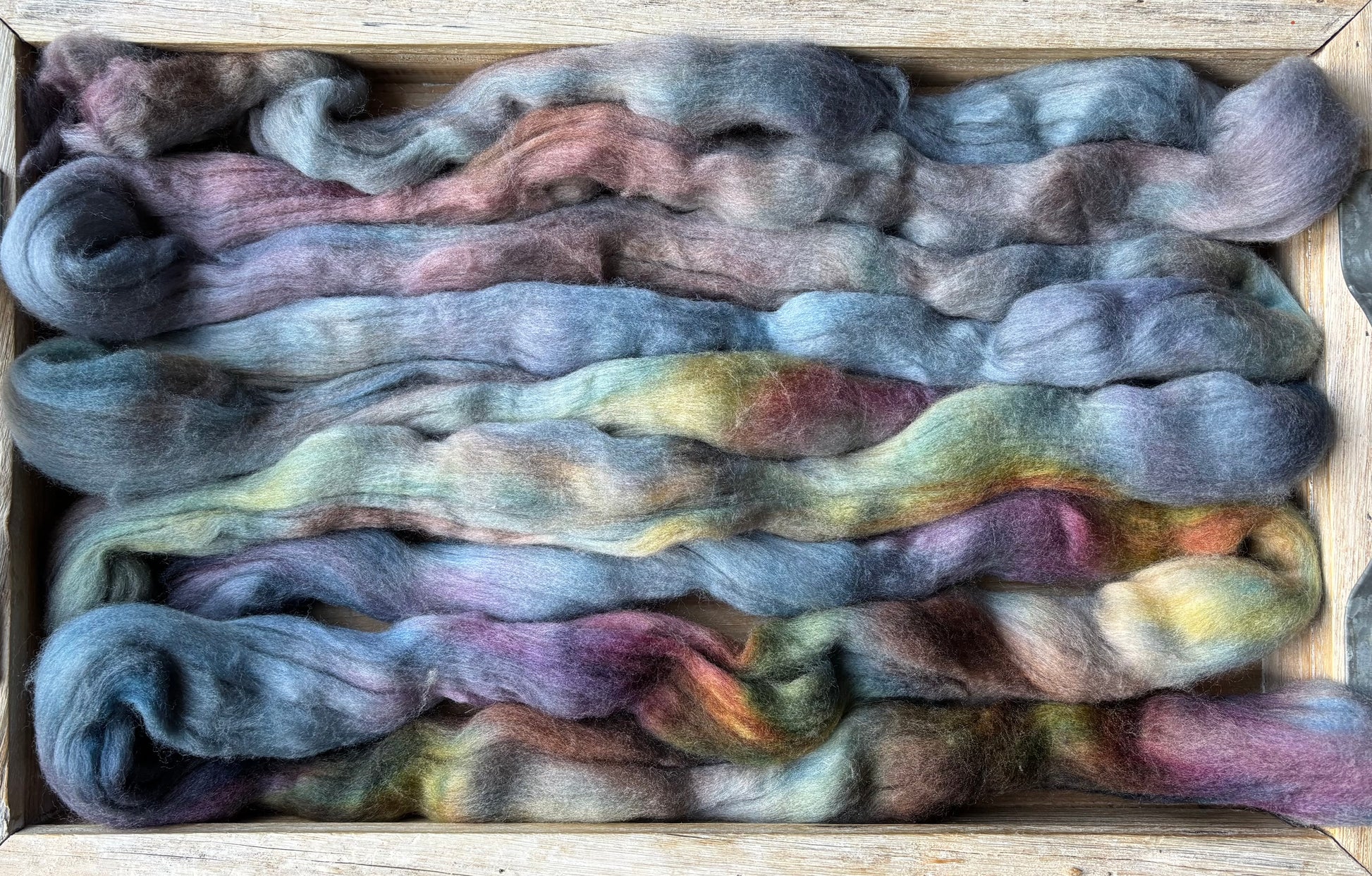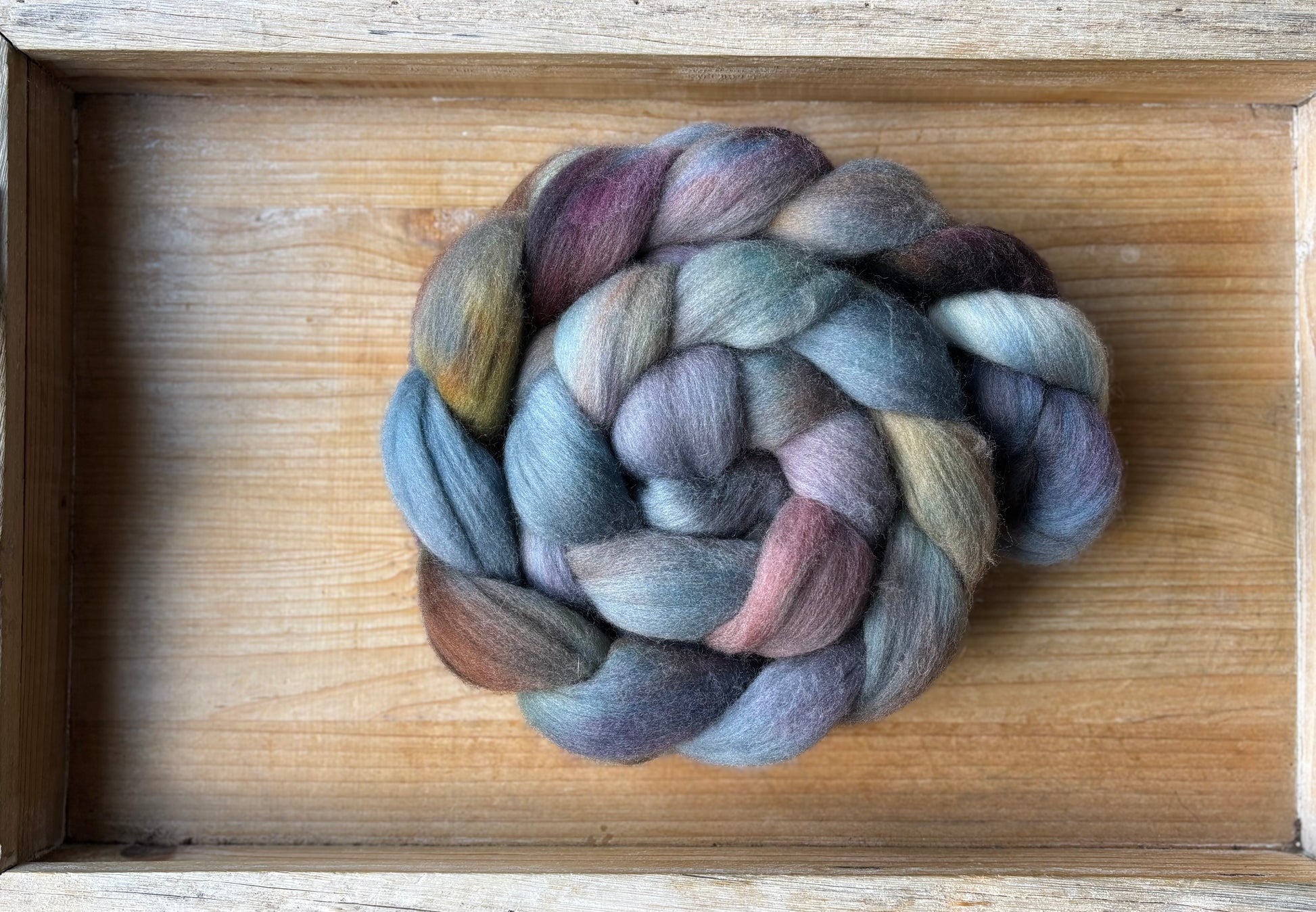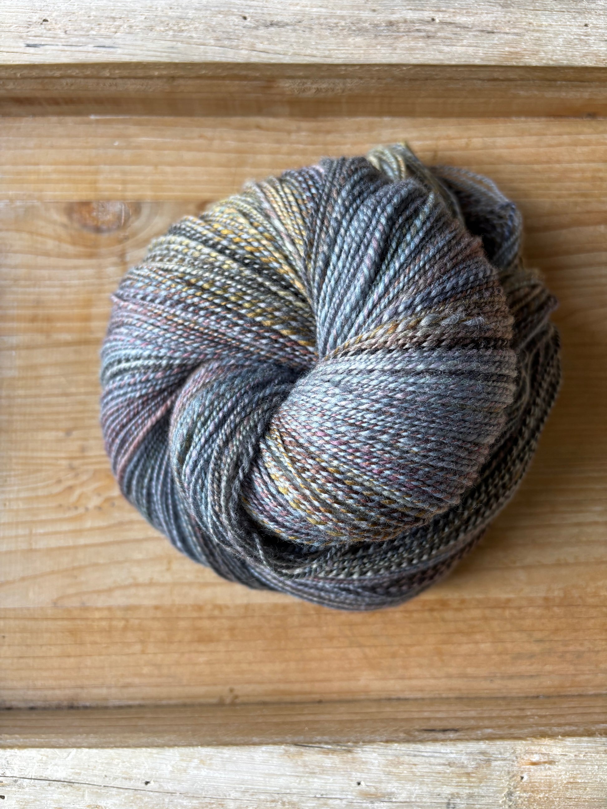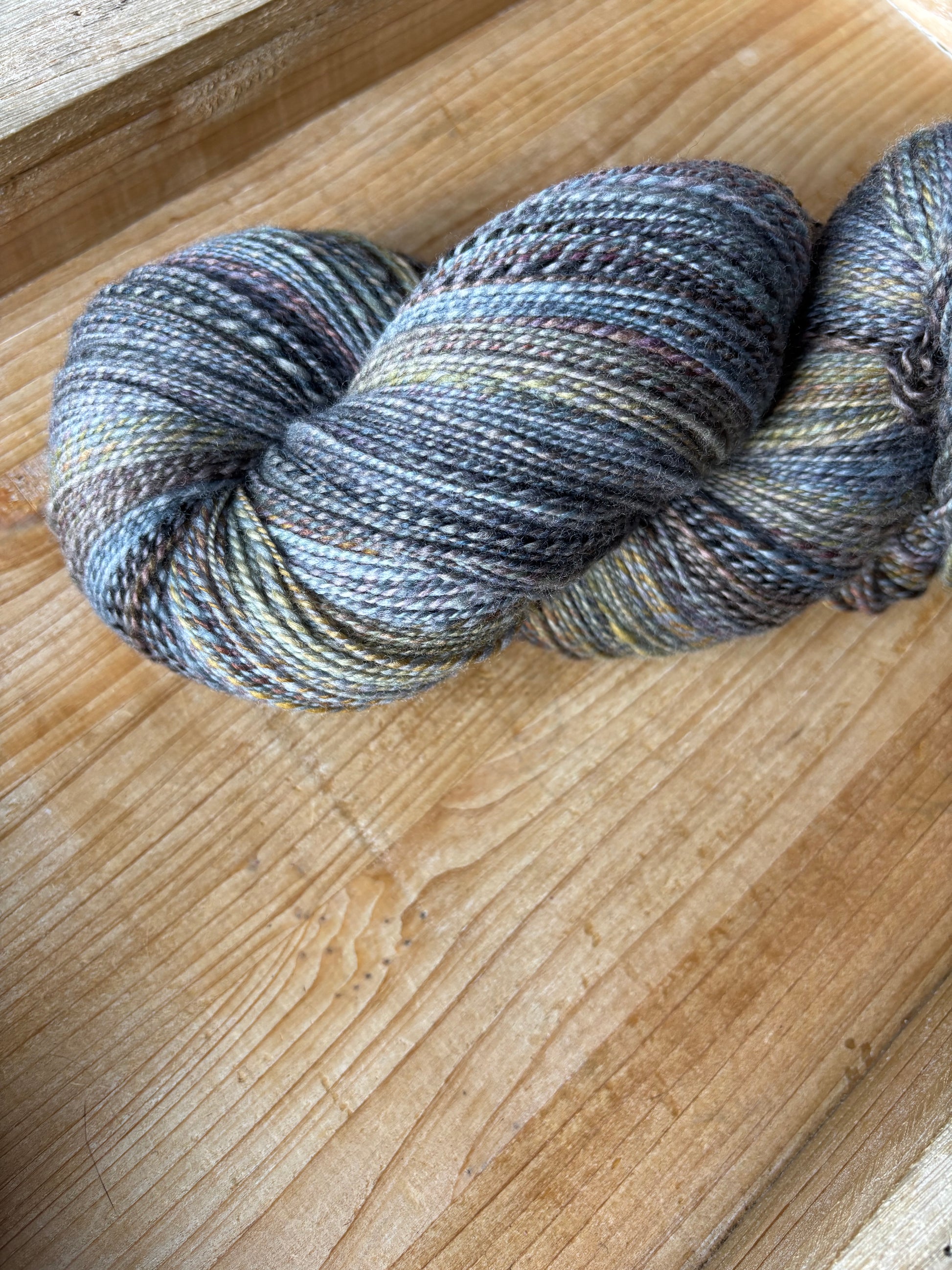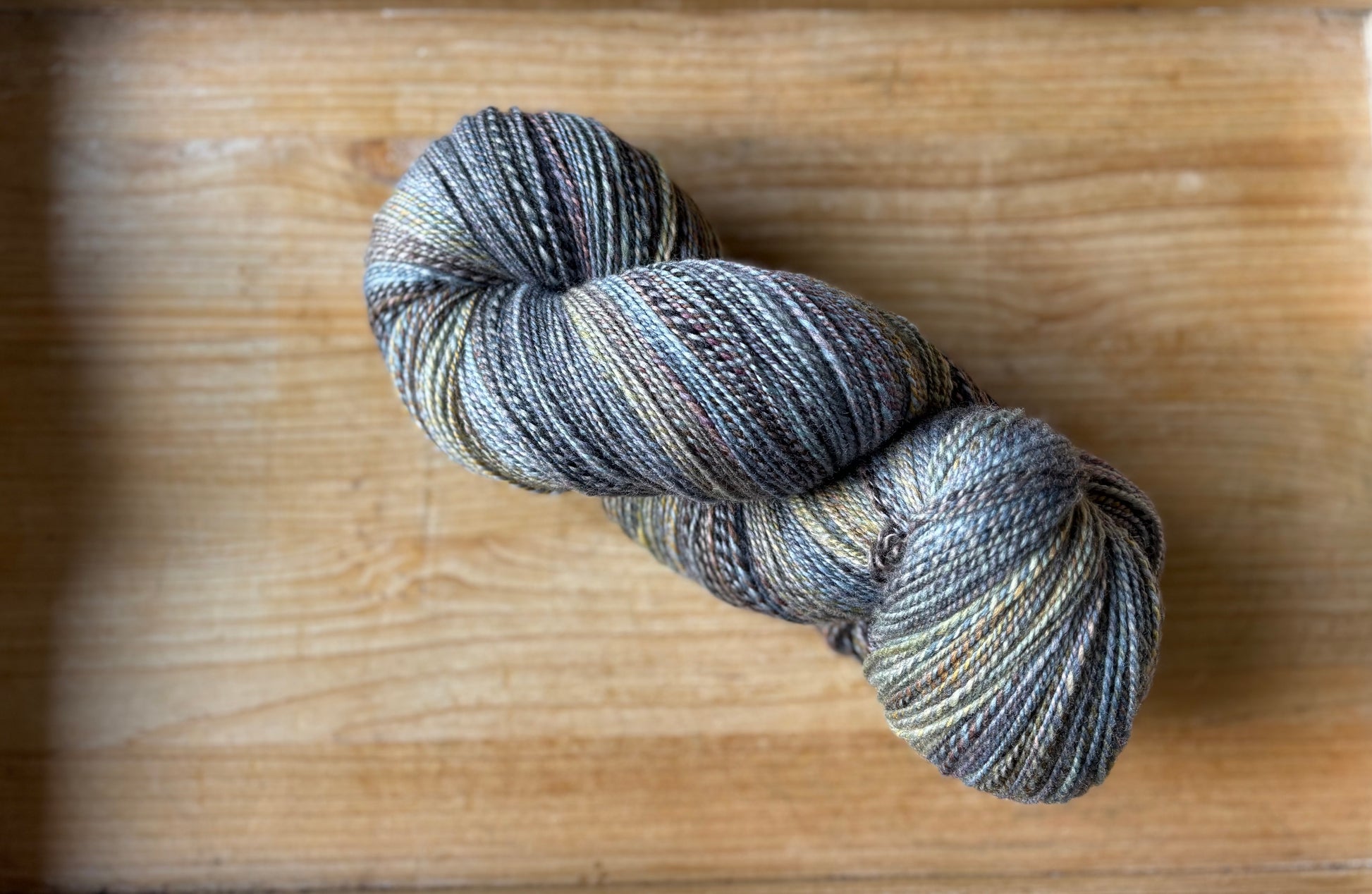This was such a lovely spin, I’m just loving how one braid can end up looking completely different on two different bobbins, but then collide together to create some seriously beautiful yarn! have discounted this skein by 10$ due to a break in the yarn, my swift was spinning a little too fast during the re skeining process and sadly snapped in one place. Such a bummer but it happens.