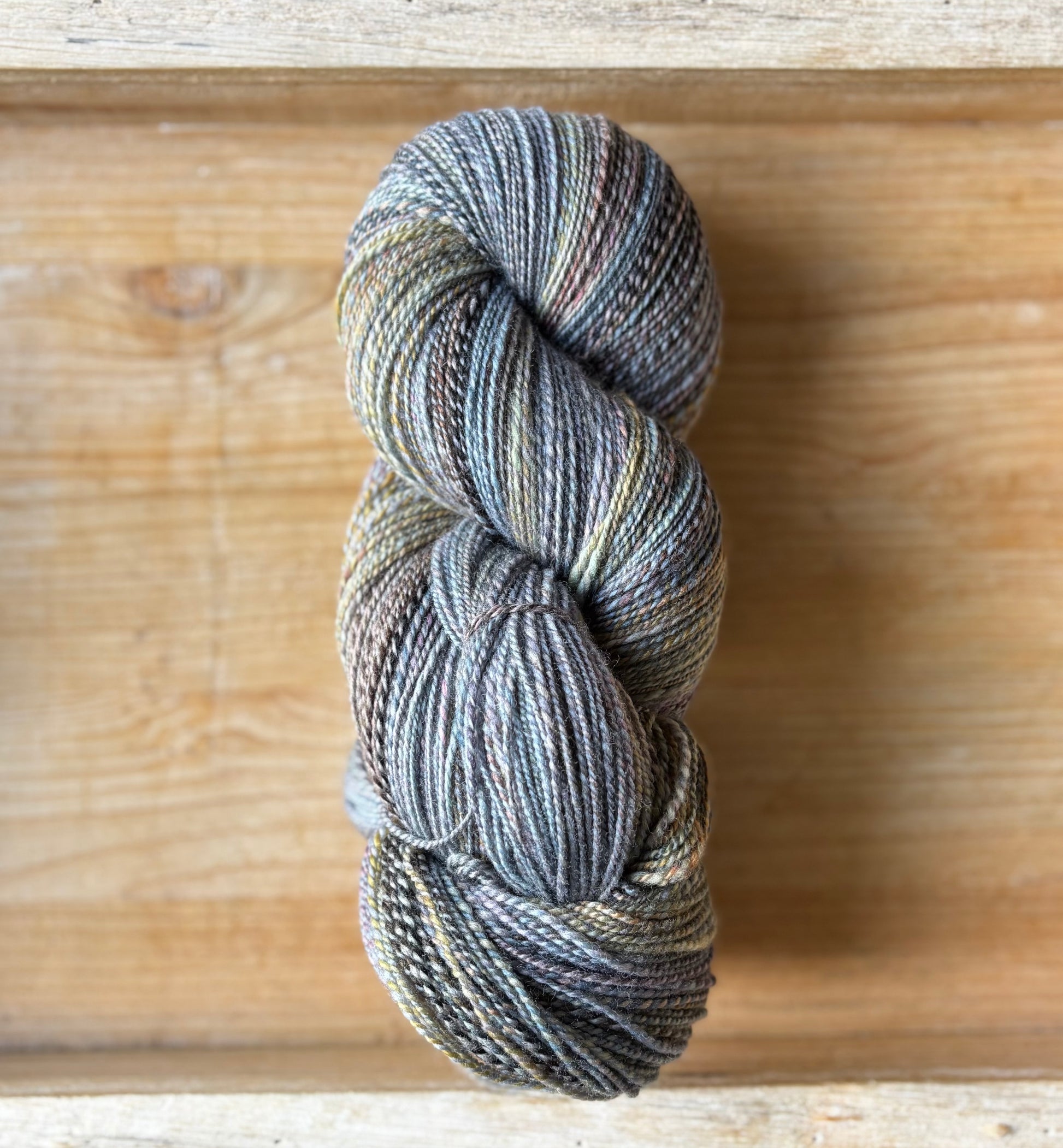 This skein is 127 grams and approximately 644 yards. A perfect amount of yardage for a contrast colour in a sweater, or shawl. The yarn itself is soft, and has great bounce to it, the colours are muted and soft.