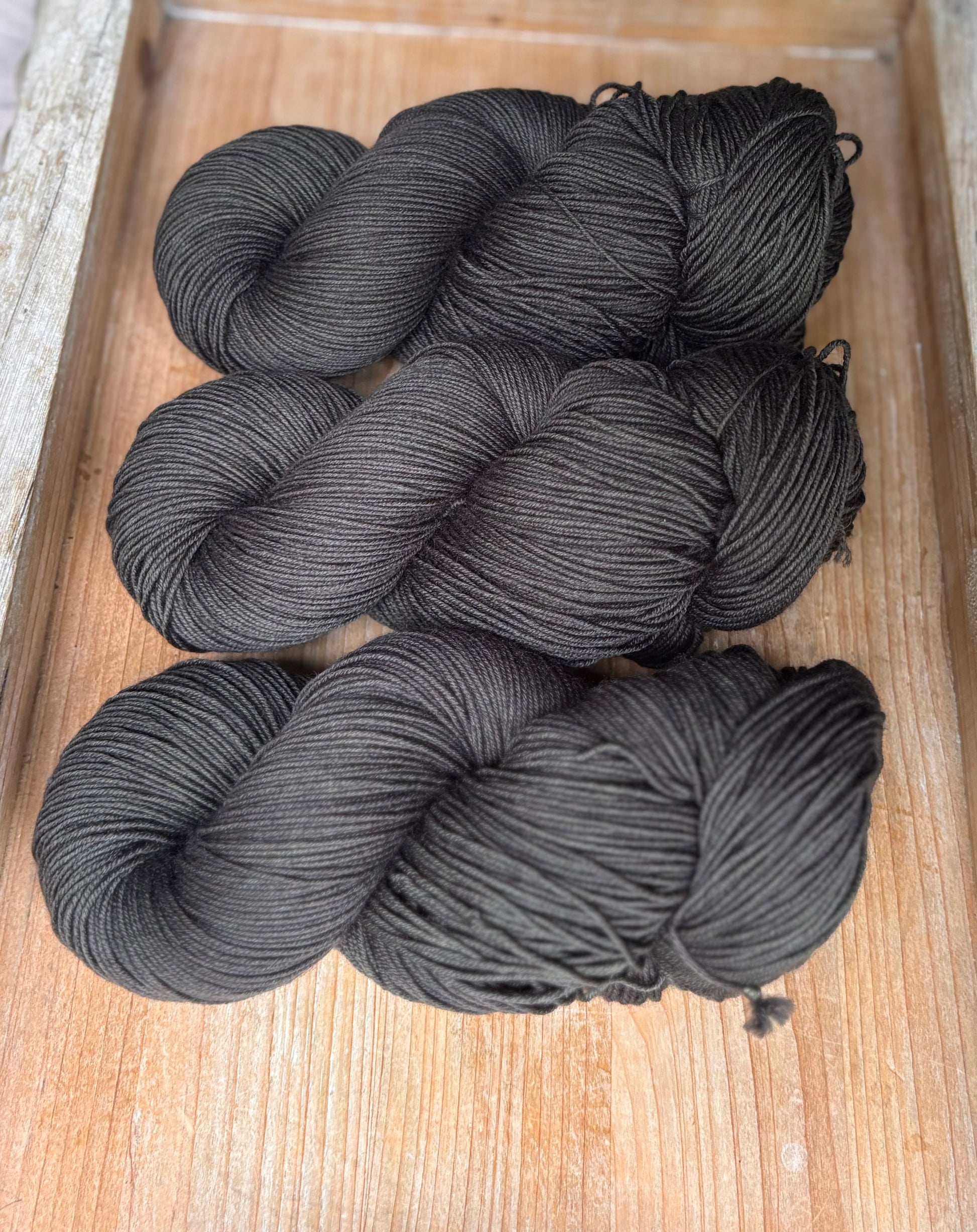 Le charbon de bois est un coloris audacieux et saisissant. C'est sournois, ce n'est pas tout à fait bleu, ni tout à fait gris, ni tout à fait marron, peut-être un peu de violet là-dedans. Quelle que soit la manière dont vous souhaitez le décrire, c'est définitivement un incontournable de couleur neutre. Portable, 4 saisons, Yarn Stash Must Have. Il est magnifique en soi, mais est également frappant avec d'autres couleurs comme And It Stoned Me, Wild Peacock, High Tide, Wishing Well et Lucky Penny's, pour n'en nommer que quelques-unes !