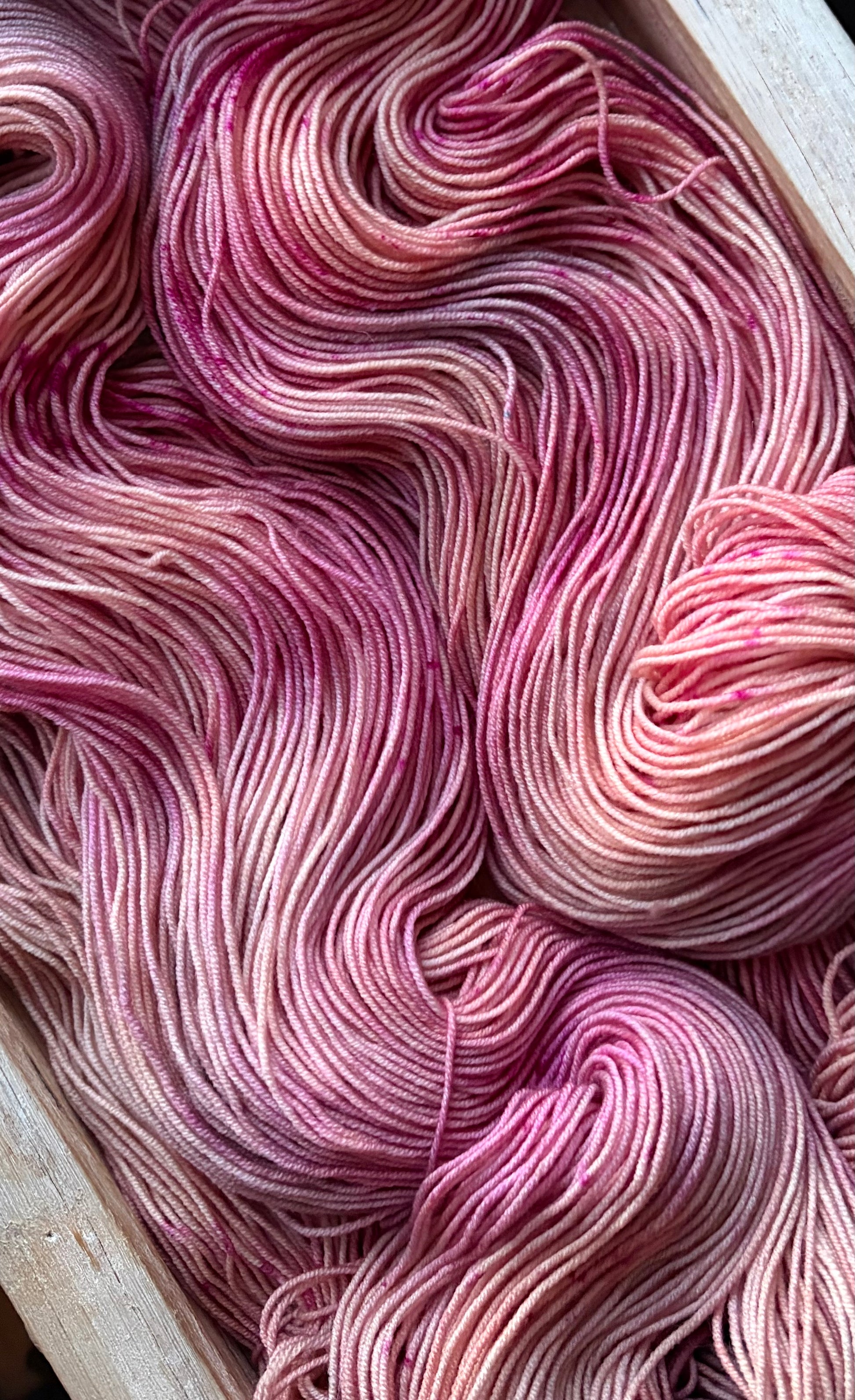 Hidden DK Base: Once a little shop secret, this base is now available all the time! This ultra versatile Double Knit Base is a no-brainer, easy choice for anything meant to wear next to the skin. Made up of 85% Extra Fine Superwash Merino Wool and 15% Nylon, this yarn is unbelievably soft, easy to care for (machine washable on a delicate cycle, in cold water) and takes up the dye colours beautifully. This yarn base (especially) does not agree with the plastic packaging and shipping process, and can often have an off-putting odour upon opening. With a little room to breathe, and some fresh air, you’ll notice it dissipates quickly enough! Each skein is 100 grams and 246 yards, this yarn is a 4ply construction. Fibres in this base are sourced from Australia, the wool used in this yarn is ethically produced from sheep that have NOT been mulesed.