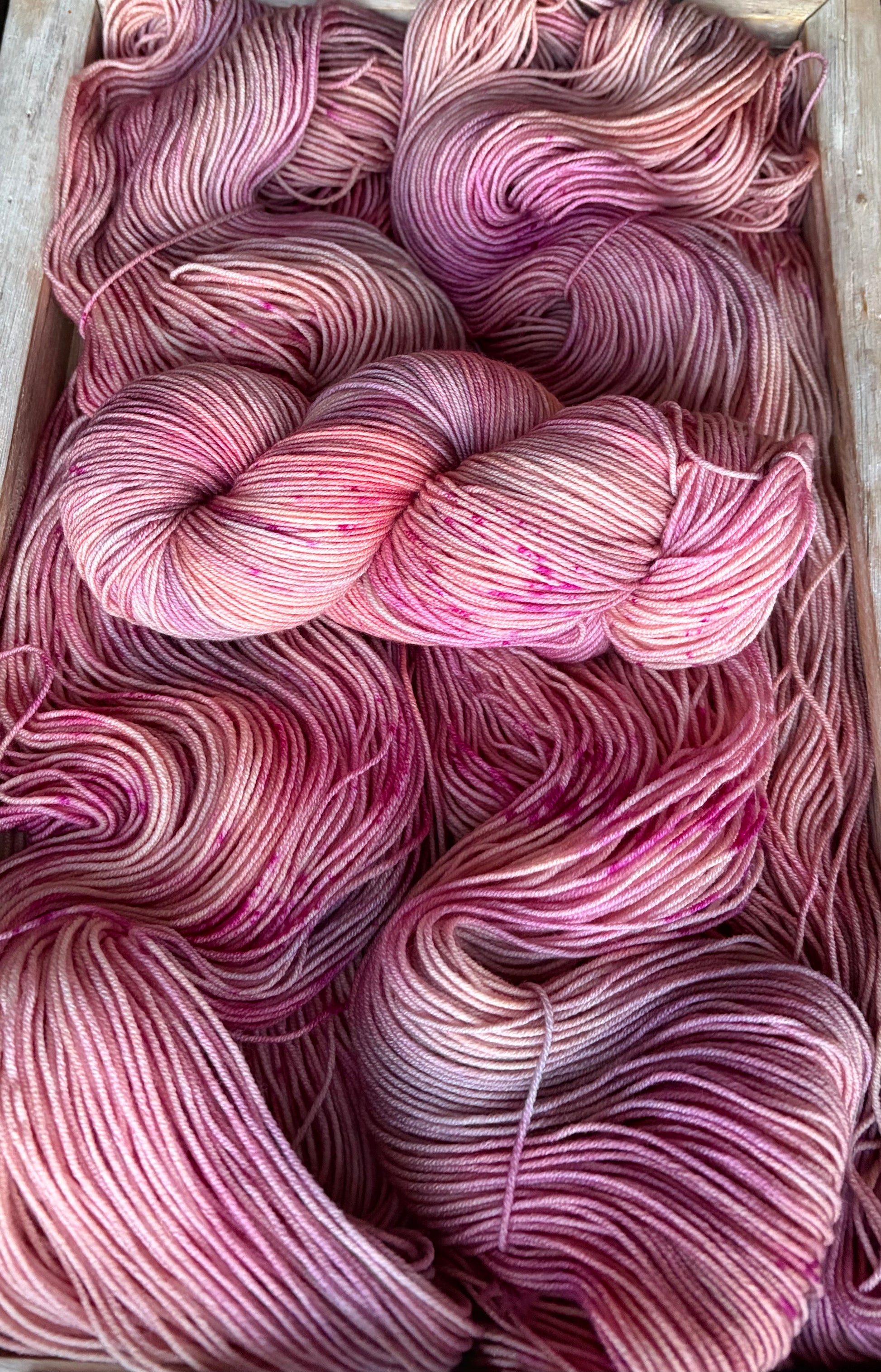Luxe Sock Base: Luxe Sock is made up of 75% Ultra Fine Merino Wool, 15% Mulberry Silk, and 10% Cashmere. Each skien is 100 grams and 437 yards, 2ply construction. This yarn base is heavenly soft against the skin, and perfect for a special project calling for a high end fingering weight yarn. The Mulberry Silk adds drape and lustre, and the cashmere creates a fuzzy halo effect as you work with it. The colours of dye tend to shine through, looking much more striking and rich compared to some of my samples on Superwash bases. Fibres in this base are sourced from Australia, the wool used in this yarn is ethically produced from sheep that have NOT been mulesed. Hand wash only, lay flat to dry.