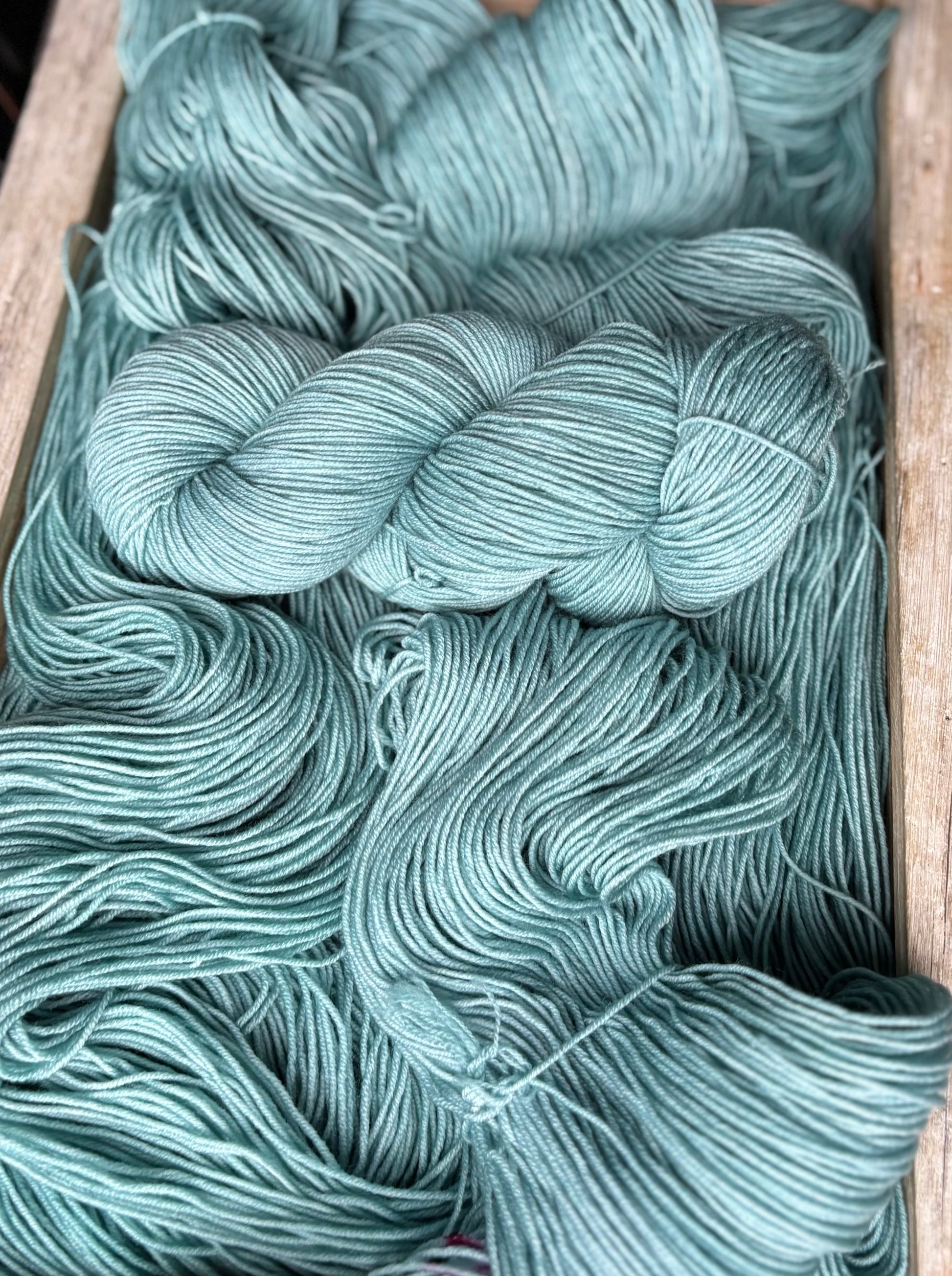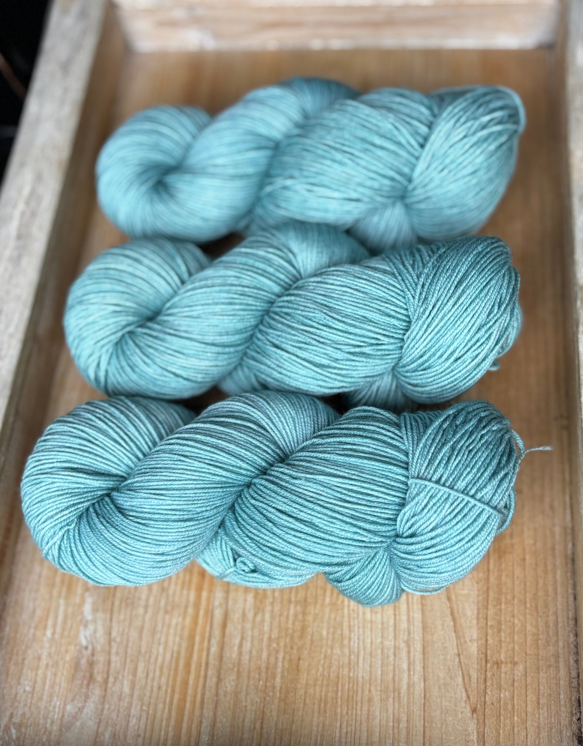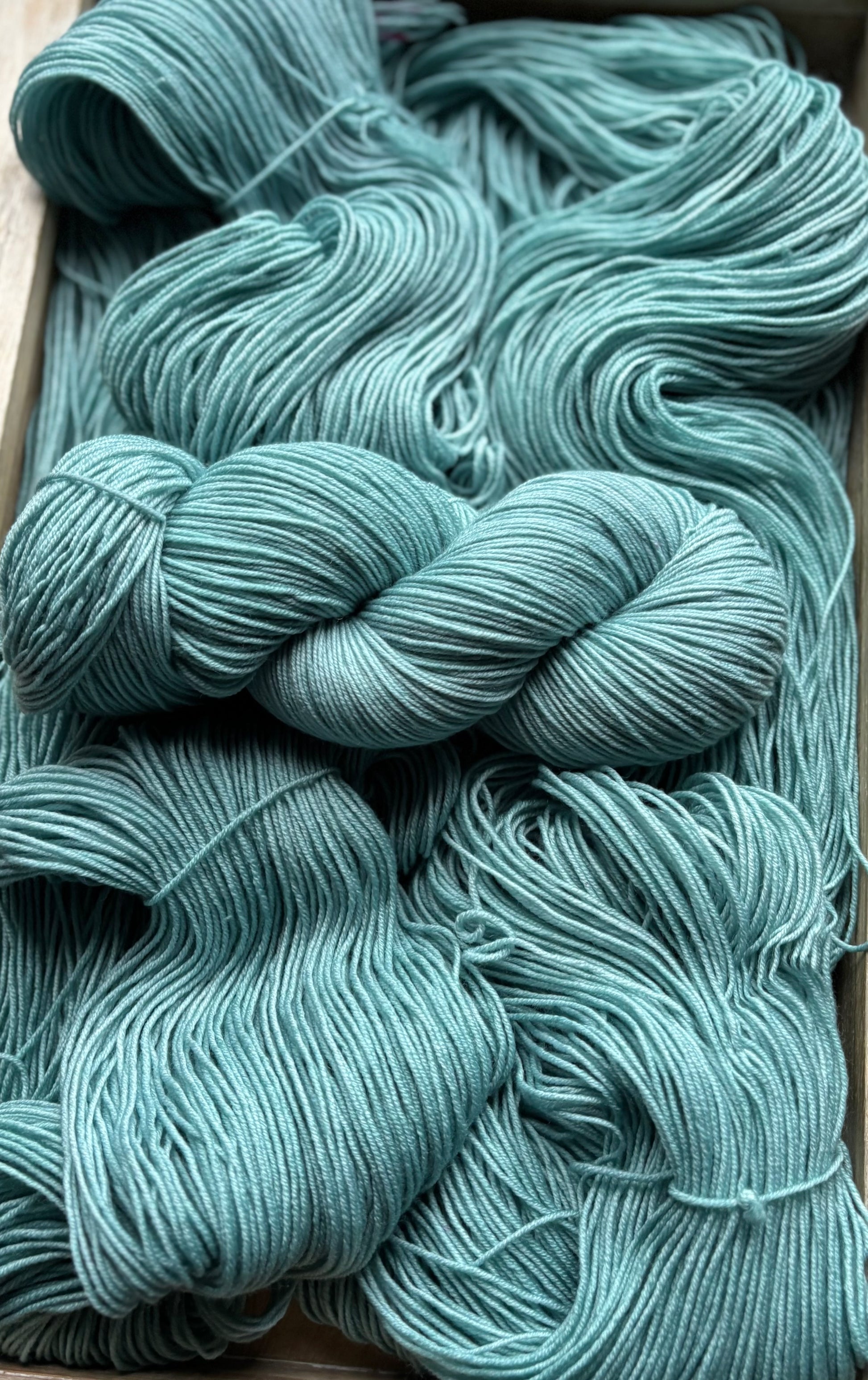 Luxe Sock Base: Luxe Sock is made up of 75% Ultra Fine Merino Wool, 15% Mulberry Silk, and 10% Cashmere. Each skien is 100 grams and 437 yards, 2ply construction. This yarn base is heavenly soft against the skin, and perfect for a special project calling for a high end fingering weight yarn. The Mulberry Silk adds drape and lustre, and the cashmere creates a fuzzy halo effect as you work with it. The colours of dye tend to shine through, looking much more striking and rich compared to some of my samples on Superwash bases. Fibres in this base are sourced from Australia, the wool used in this yarn is ethically produced from sheep that have NOT been mulesed. Hand wash only, lay flat to dry.