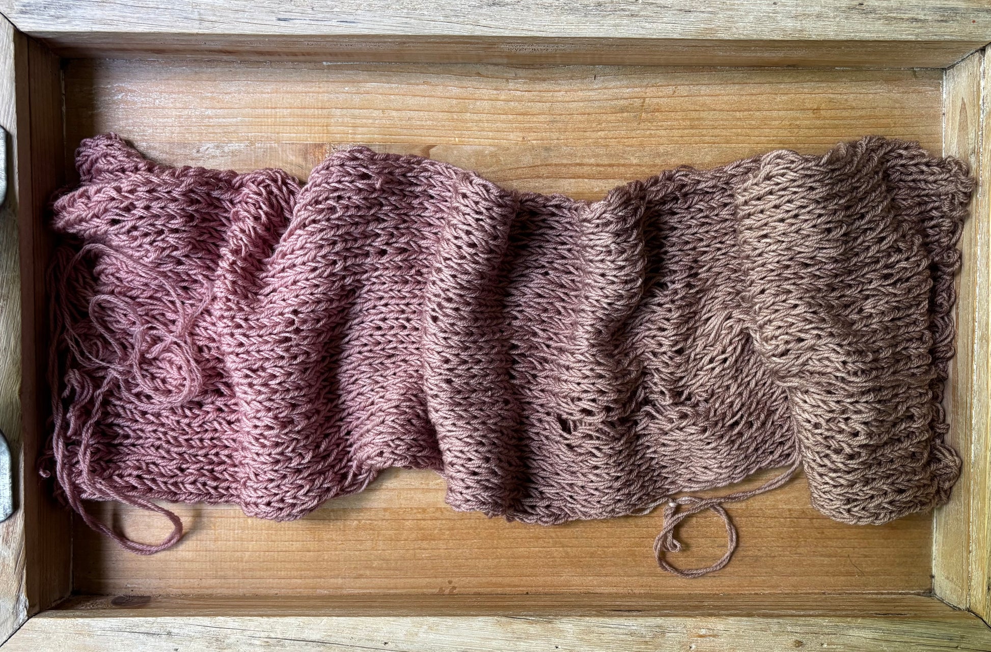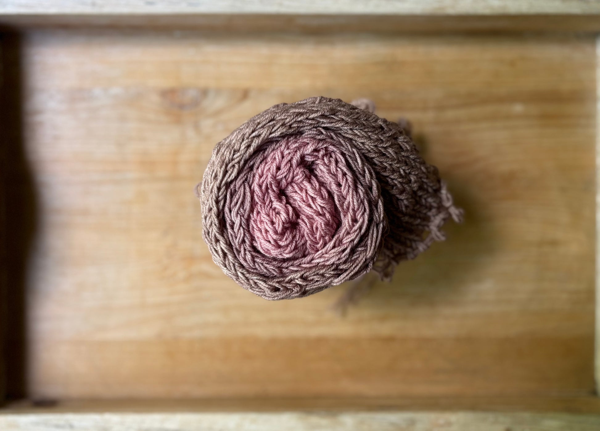 Using a circular knitting machine, I held two strands of Squishy Sock Base together to create a special yarn blank for this gradient dyeing technique. Because the finished sock blank is a little tighter than my typical one stranded gradients, there is a gentle dapple effect of colour throughout the yarn. I find once it’s knit up, you get a fabulous heathered effect, bringing the cosy factor up a notch!