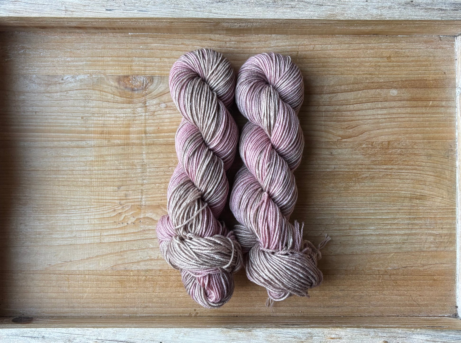 You'll receive two identical mini skeins, with the perfect amount of yardage for your next sock project! Each skein is 50 grams and 200 yards of fingering weight yarn, with two together coming to 100 grams and 400 yards in total. *one skein will be a little less than 200 yards with this set*