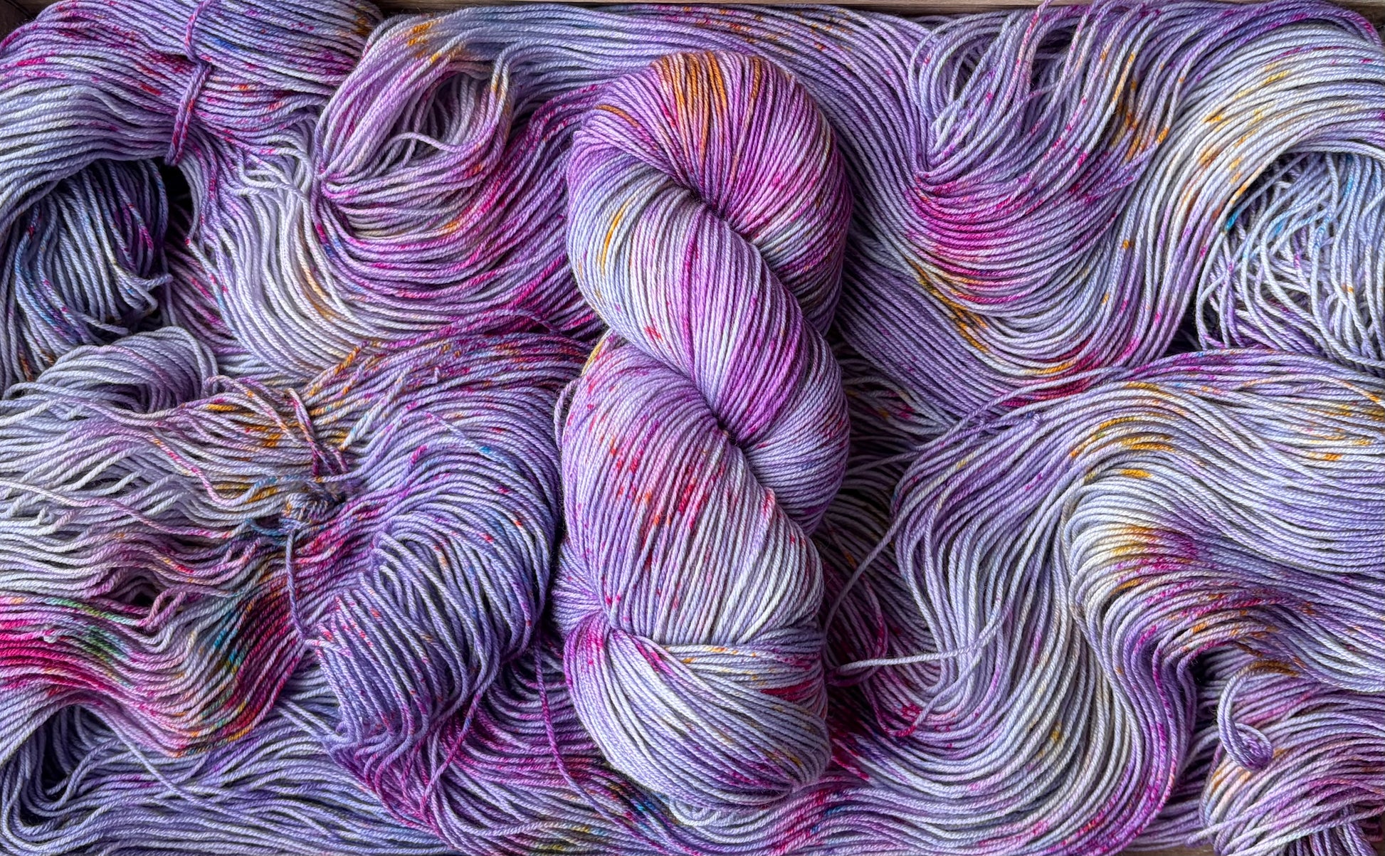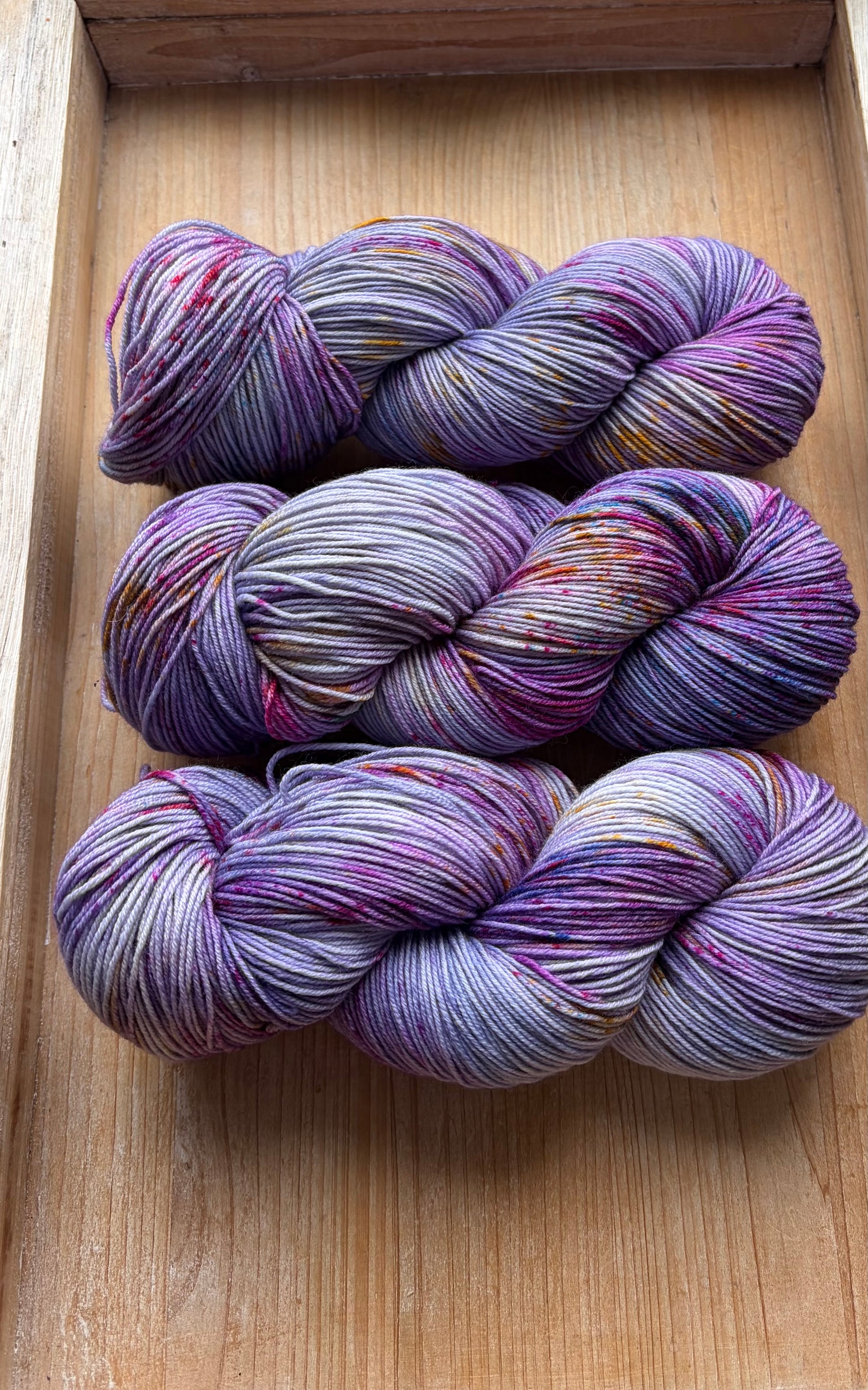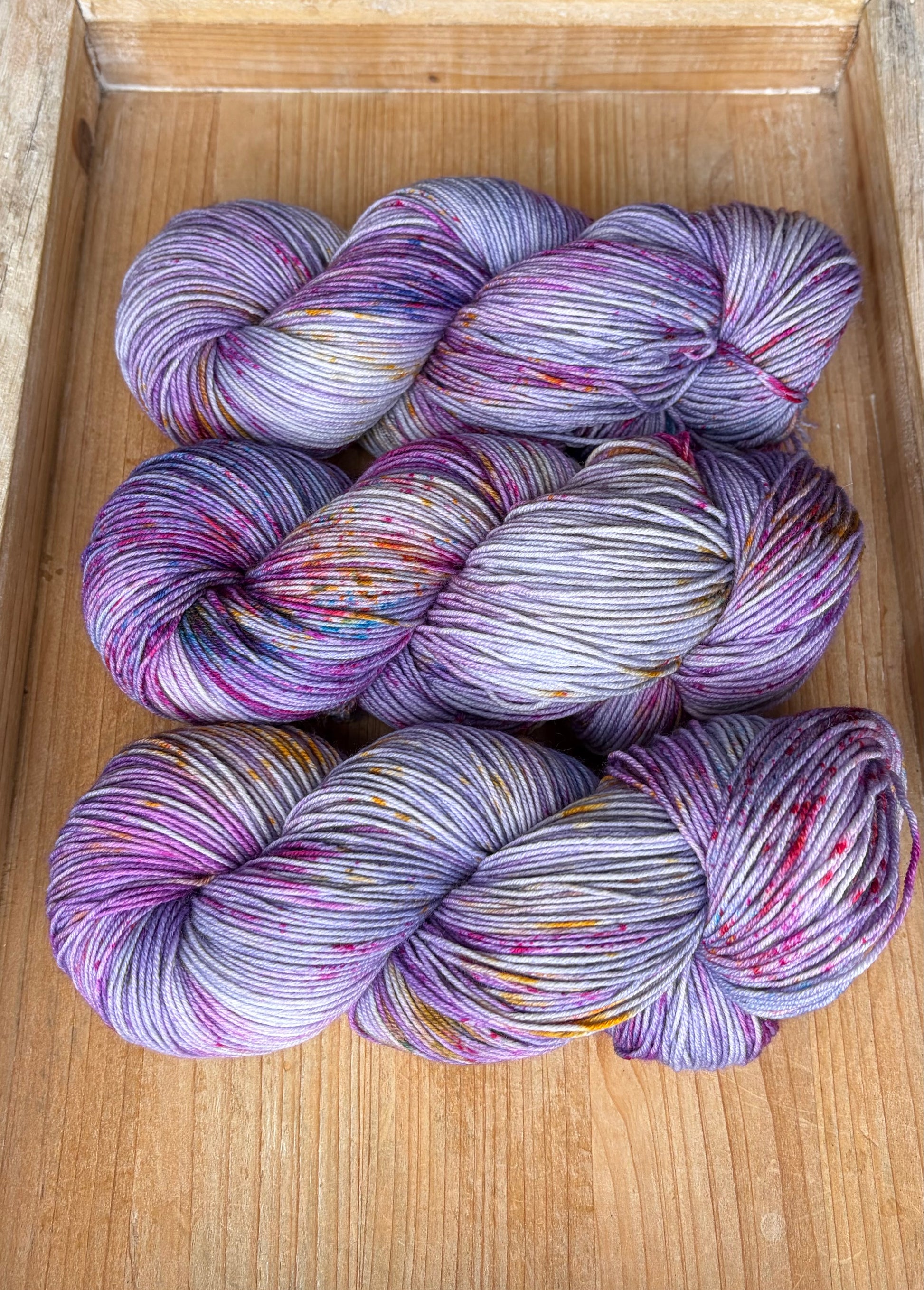 Still Believe in Magic is bringing the best of hand dyed yarn to the table, with beautiful layers of blues, purples and pinks, and a generous splash of the most fun speckles. Magic is alive and well with this Colourway!