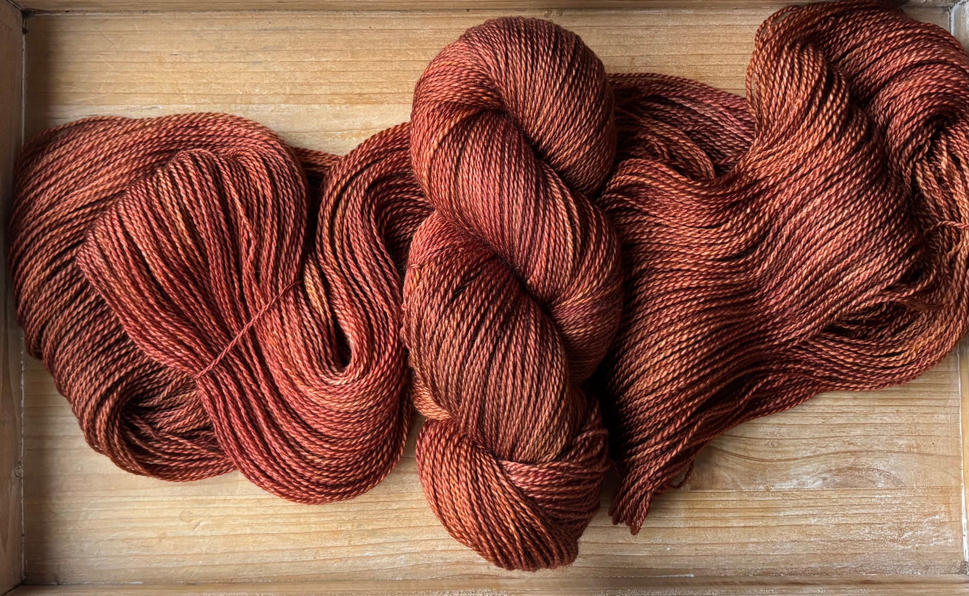La beauté des fils teints de manière indépendante est qu'il n'y en a pas deux identiques, je recommande d'alterner les écheveaux après chaque rang pour un look plus uniforme. C’est un phénomène rare et je fais tout mon possible pour éviter cela, mais il y a toujours un risque que la couleur dégorge au premier lavage. Les photos utilisées sont choisies pour représenter au mieux les véritables coloris, en utilisant la lumière naturelle du soleil. Je fais de mon mieux pour obtenir une cohérence entre les lots de teinture, mais il est important de commander la bonne quantité pour votre projet, car il y a toujours une différence d'un lot à l'autre. Si vous avez besoin d’une consultation rapide lors du choix des couleurs, faites-le-moi savoir, j’aimerais vous aider !