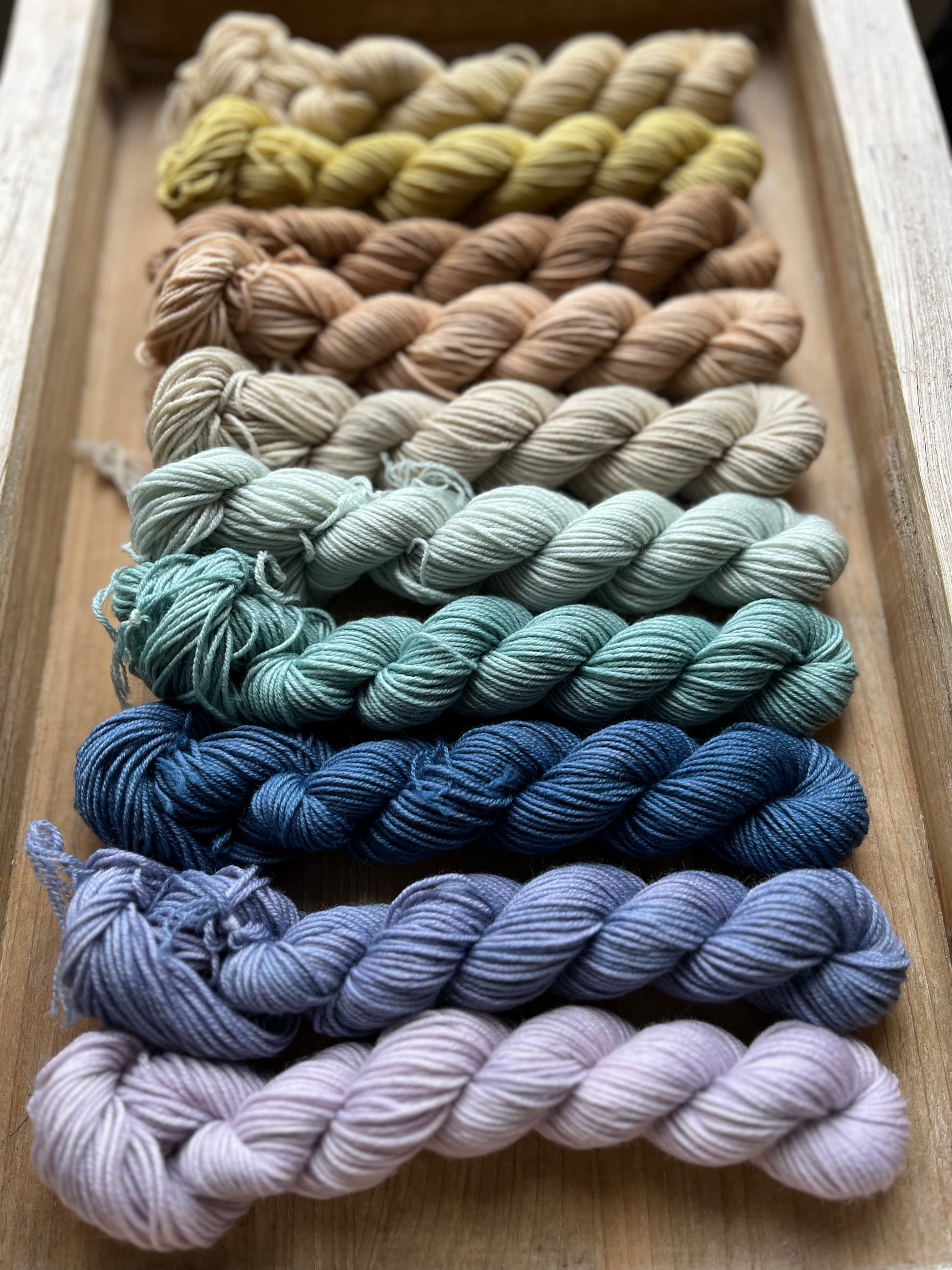 This yarn fade is so flexible and versatile, you can arrange your mini tonals in many different ways, as well as combining them with other yarn fades seen here at Hidden Pond Yarns!