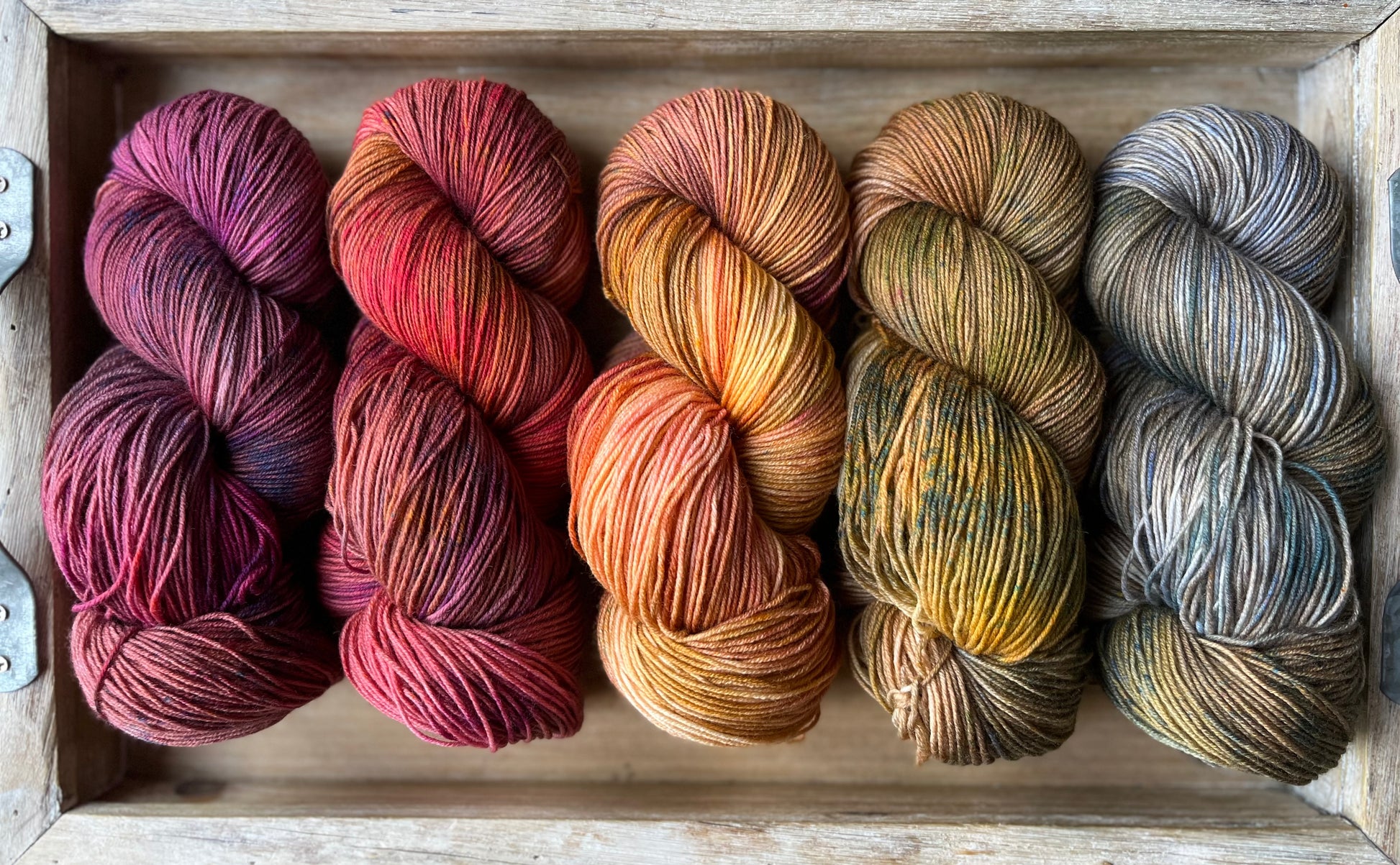 This 5 Skein Yarn Fade is a One of A Kind creation. Truly, my favourite way to dye yarn, as I throw away the rules and the recipe book, and let the creativity flow. Because these sets are not replicable, if you fall in love at first sight, I suggest snatching up this unique fade while you can!