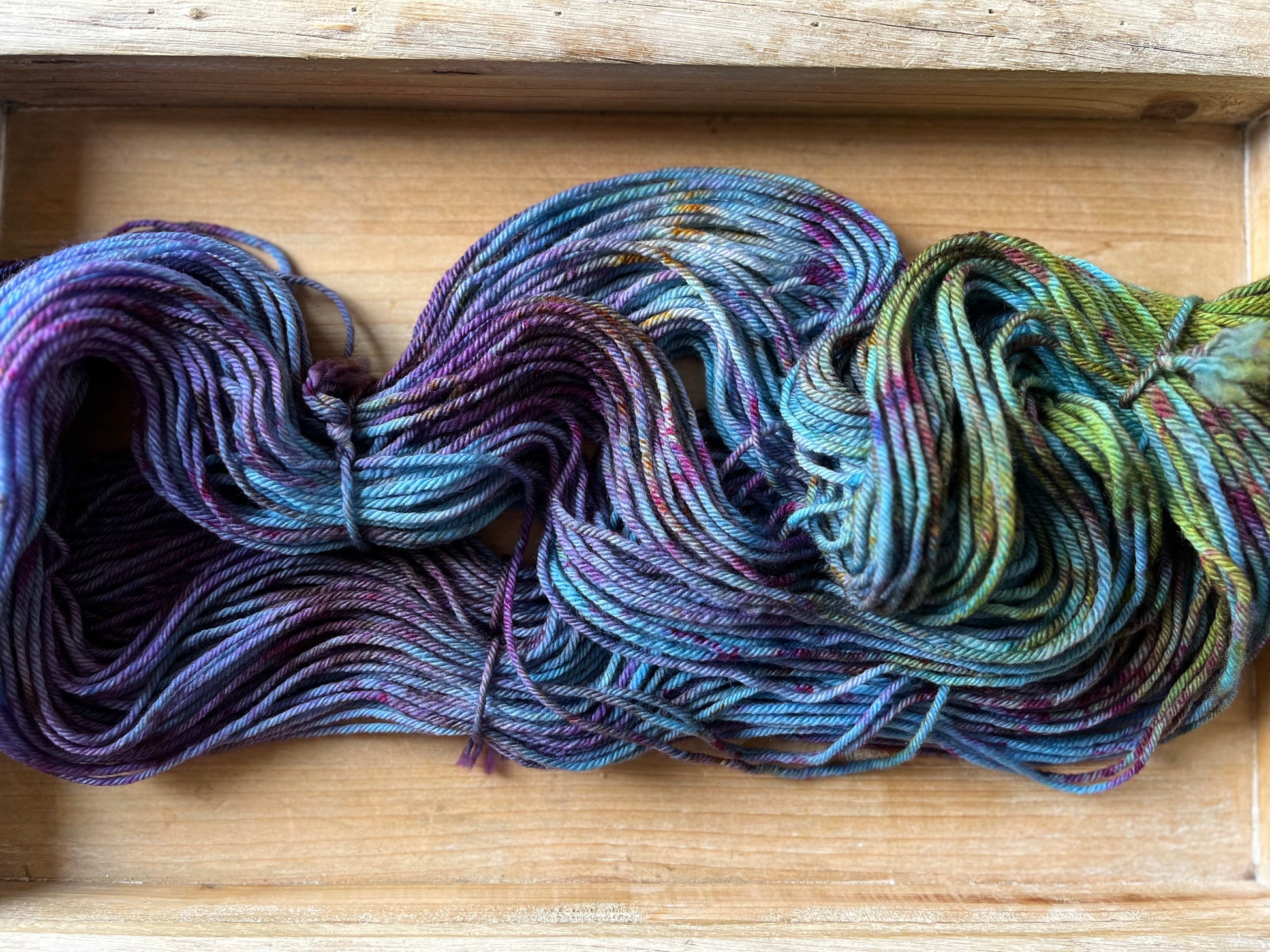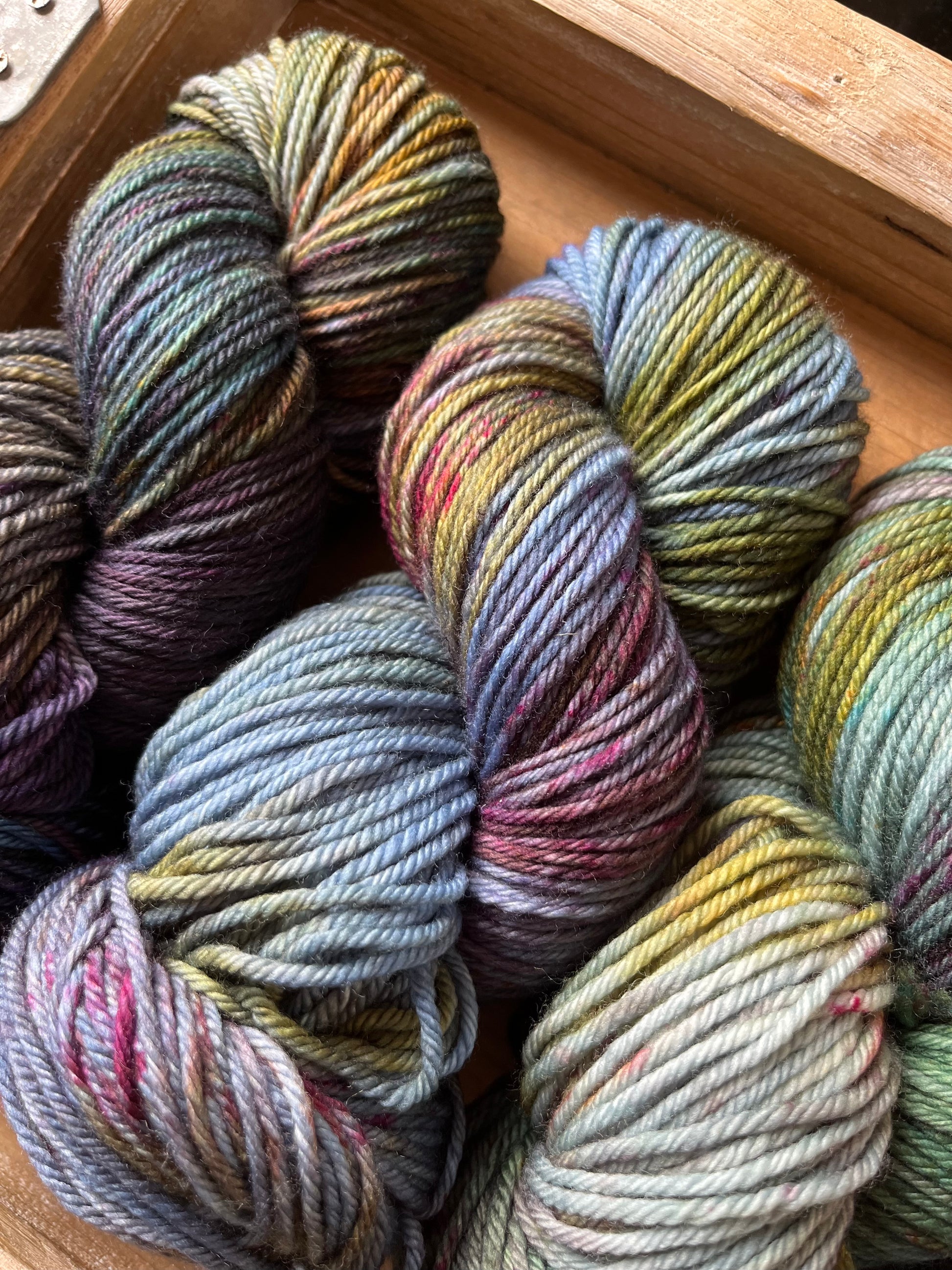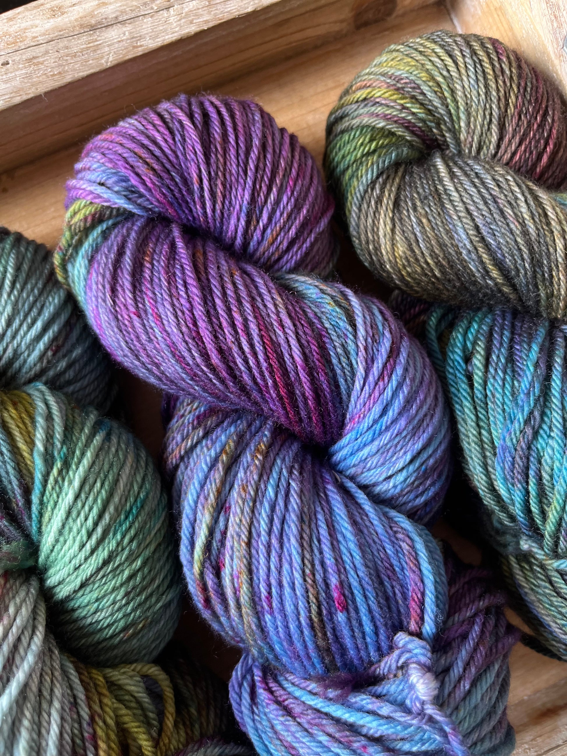 Made of 100% Superwash Merino, and at 100 grams/205 yards per skein, this is a great choice for items that are meant to wear. Scarves, hats, mittens, thick socks, just about anything that needs an easy wash.