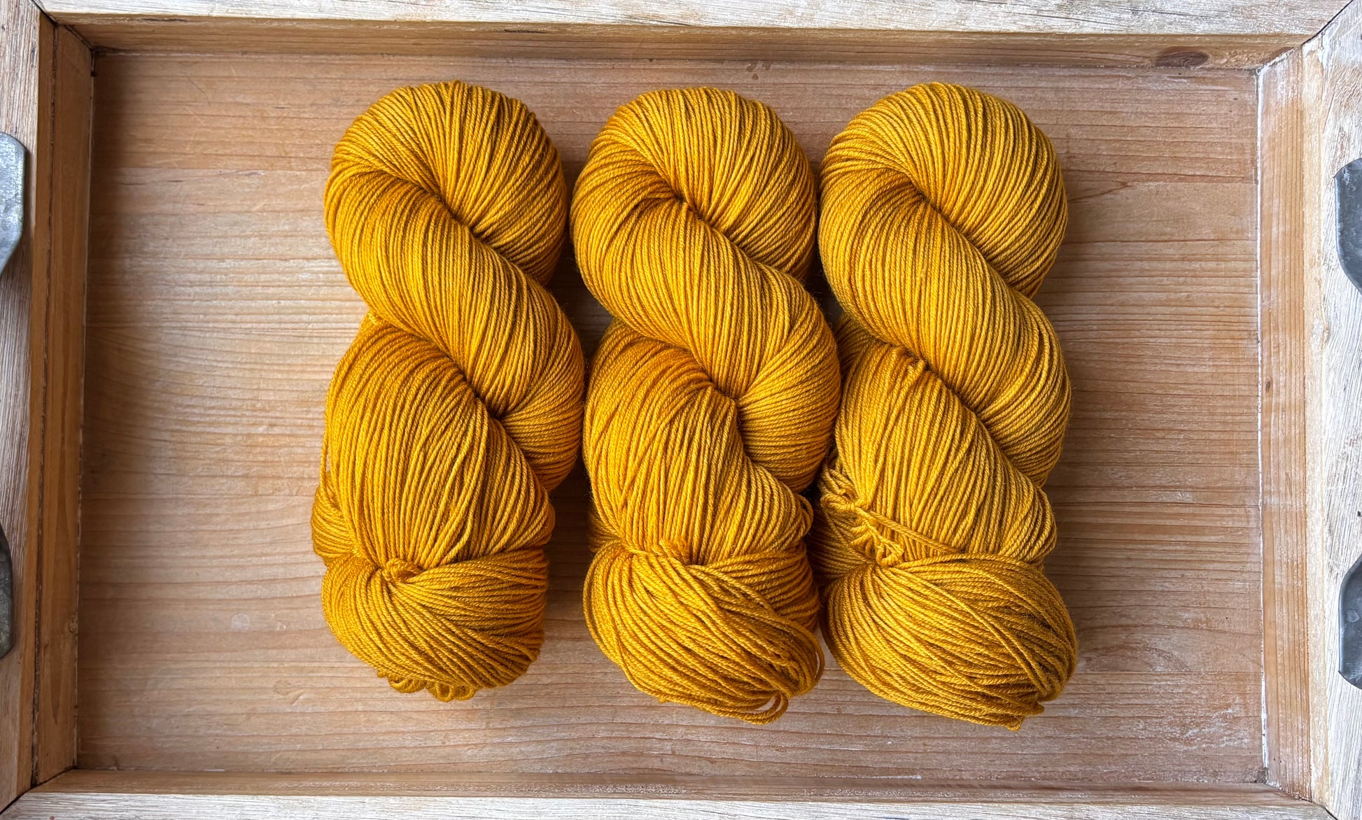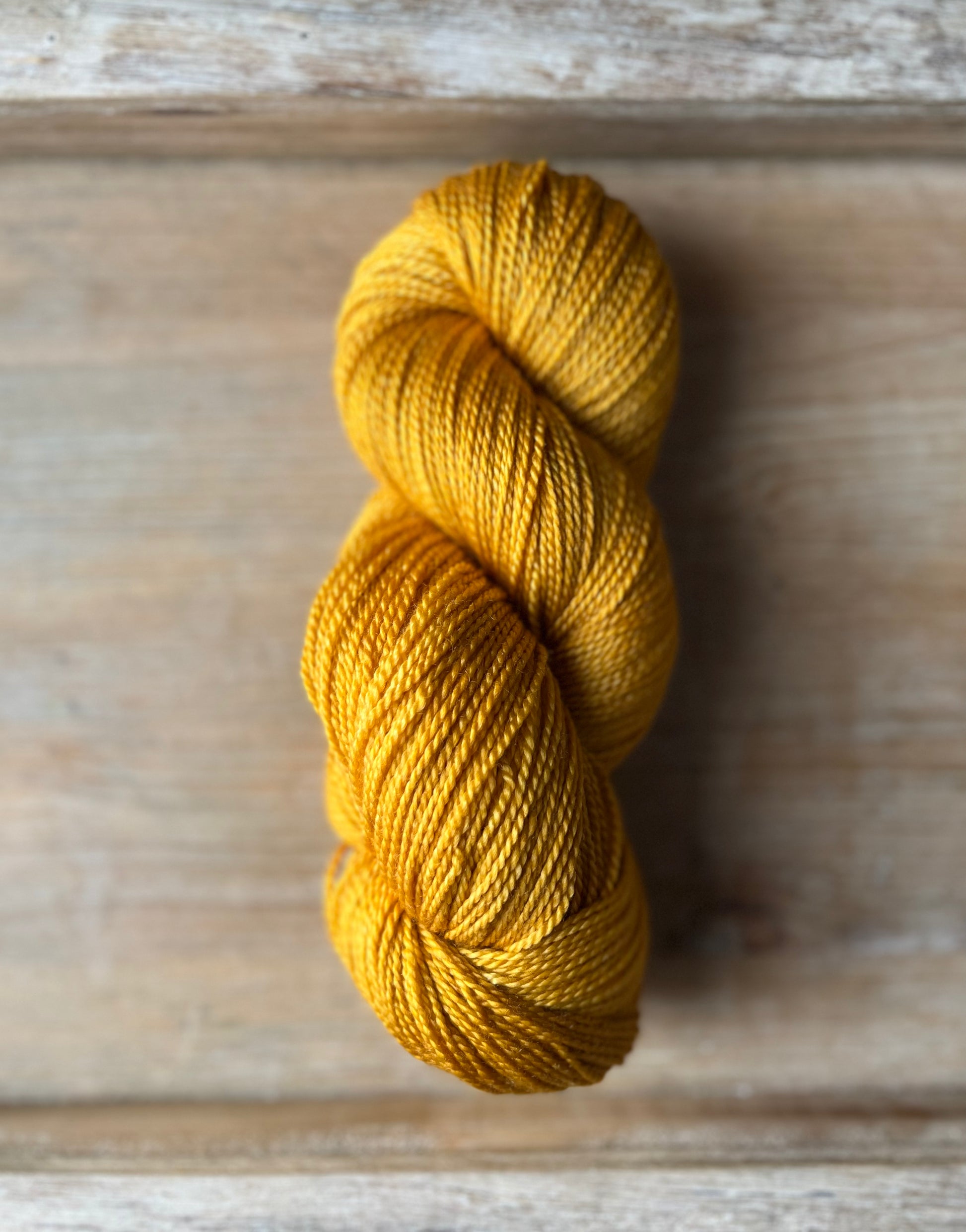 Luxe Sock Base: Luxe Sock is made up of 75% Ultra Fine Merino Wool, 15% Mulberry Silk, and 10% Cashmere. Each skien is 100 grams and 437 yards, 2ply construction. This yarn base is heavenly soft against the skin, and perfect for a special project calling for a high end fingering weight yarn. The Mulberry Silk adds drape and lustre, and the cashmere creates a fuzzy halo effect as you work with it. The colours of dye tend to shine through, looking much more striking and rich compared to some of my samples on Superwash bases. Fibres in this base are sourced from Australia, the wool used in this yarn is ethically produced from sheep that have NOT been mulesed. Hand wash only, lay flat to dry.