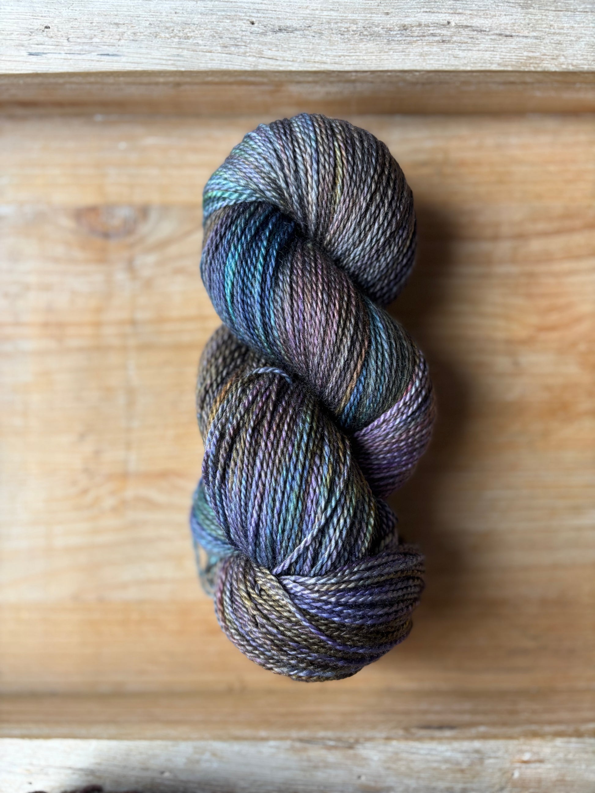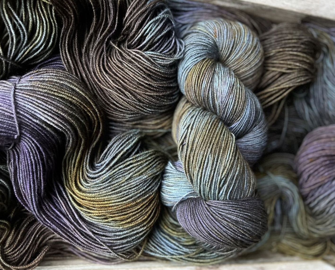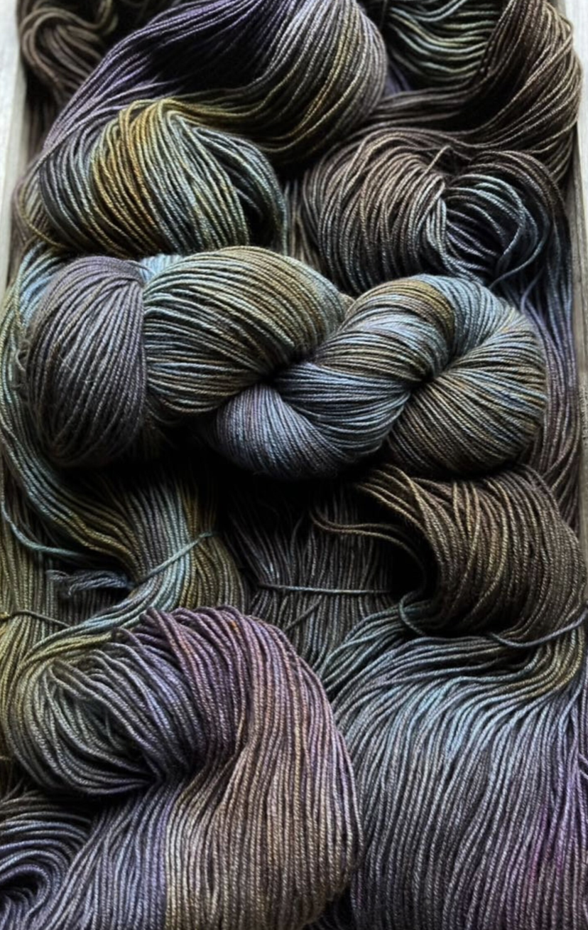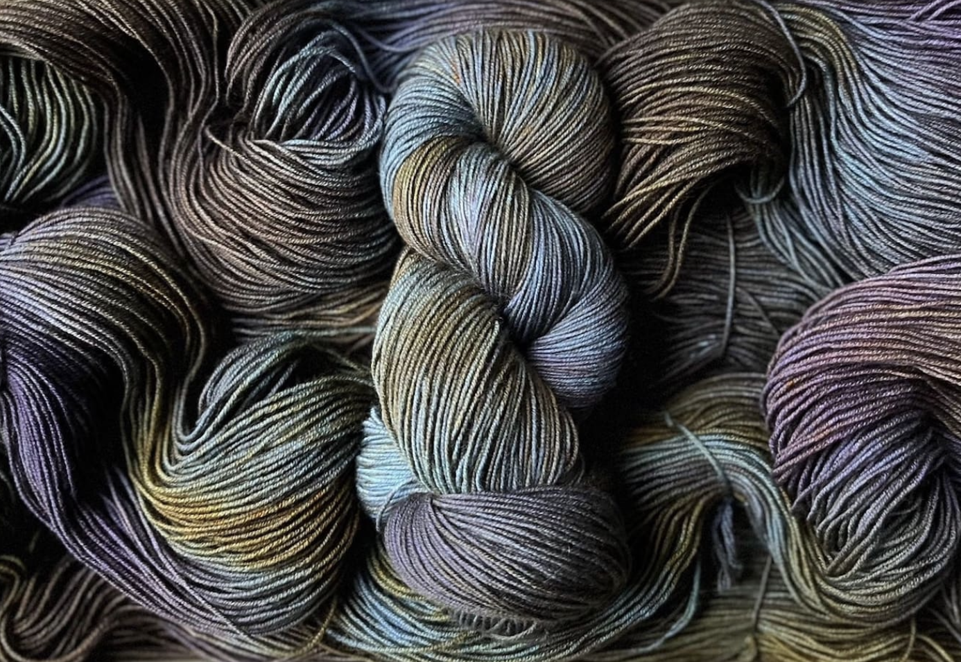 Luxe Sock Base: Luxe Sock is made up of 75% Ultra Fine Merino Wool, 15% Mulberry Silk, and 10% Cashmere. Each skien is 100 grams and 437 yards, 2ply construction. This yarn base is heavenly soft against the skin, and perfect for a special project calling for a high end fingering weight yarn. The Mulberry Silk adds drape and lustre, and the cashmere creates a fuzzy halo effect as you work with it. The colours of dye tend to shine through, looking much more striking and rich compared to some of my samples on Superwash bases. Fibres in this base are sourced from Australia, the wool used in this yarn is ethically produced from sheep that have NOT been mulesed. Hand wash only, lay flat to dry.