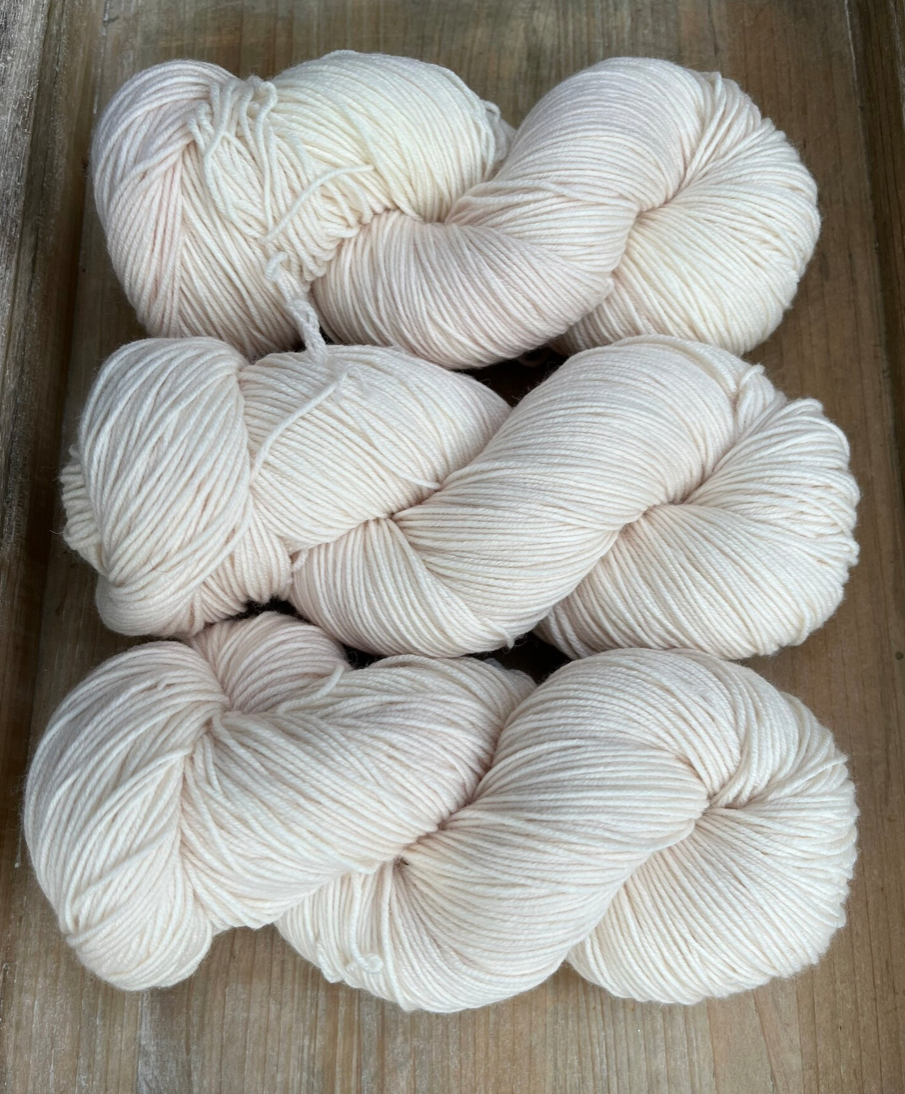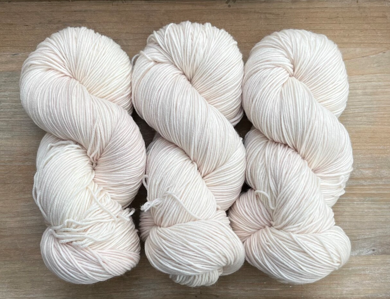 Luxe Sock Base: Luxe Sock is made up of 75% Ultra Fine Merino Wool, 15% Mulberry Silk, and 10% Cashmere. Each skien is 100 grams and 437 yards, 2ply construction. This yarn base is heavenly soft against the skin, and perfect for a special project calling for a high end fingering weight yarn. The Mulberry Silk adds drape and lustre, and the cashmere creates a fuzzy halo effect as you work with it. The colours of dye tend to shine through, looking much more striking and rich compared to some of my samples on Superwash bases. Fibres in this base are sourced from Australia, the wool used in this yarn is ethically produced from sheep that have NOT been mulesed. Hand wash only, lay flat to dry.