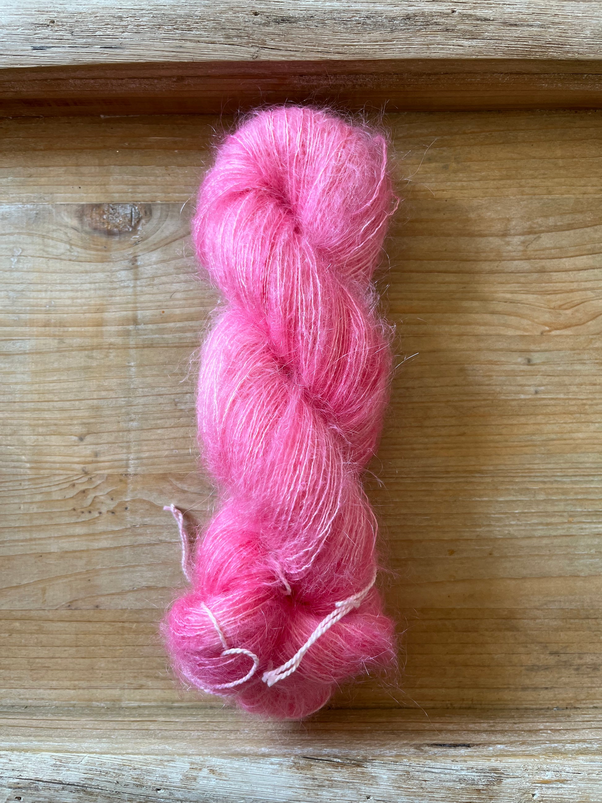 Mohair Halo Base: A delicate, lace weight yarn made up of 72% Superkid Mohair and 28% Mulberry Silk. Each skein is 50 grams and 460 yards, single ply construction. This yarn is lovely on it’s own, but is also amazing when held together with another yarn base. The fuzziness of the mohair creates a halo of colour within your project. Fibres in this base are sourced from South Africa. Hand wash only, lay flat to dry.