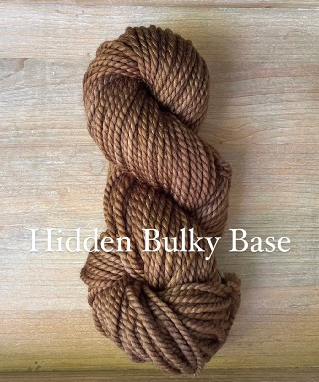 Hidden Bulky Base: Once a little shop secret, this base is now available all the time! The thickest of all my bases, this 100% Extra Fine Superwash Merino base is unbelievably soft next to the skin, and the dye colours simply shine through. Each skein is 100 grams and 109 yards, with a 2ply construction. Although made up of the same blend as the Classic Worsted Weight base, this yarn has a much softer feel to it thanks to the Extra Fine Merino Wool. Fibres in this base are sourced from Australia, the wool used in this yarn is ethically produced from sheep that have NOT been mulesed.