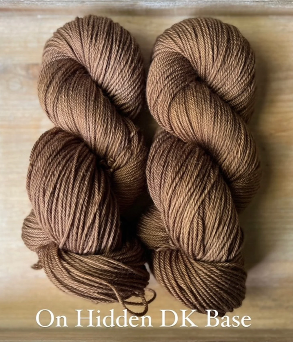 Hidden DK Base: Once a little shop secret, this base is now available all the time! This ultra versatile Double Knit Base is a no-brainer, easy choice for anything meant to wear next to the skin. Made up of 85% Extra Fine Superwash Merino Wool and 15% Nylon, this yarn is unbelievably soft, easy to care for (machine washable on a delicate cycle, in cold water) and takes up the dye colours beautifully. This yarn base (especially) does not agree with the plastic packaging and shipping process, and can often have an off-putting odour upon opening. With a little room to breathe, and some fresh air, you’ll notice it dissipates quickly enough! Each skein is 100 grams and 246 yards, this yarn is a 4ply construction. Fibres in this base are sourced from Australia, the wool used in this yarn is ethically produced from sheep that have NOT been mulesed.