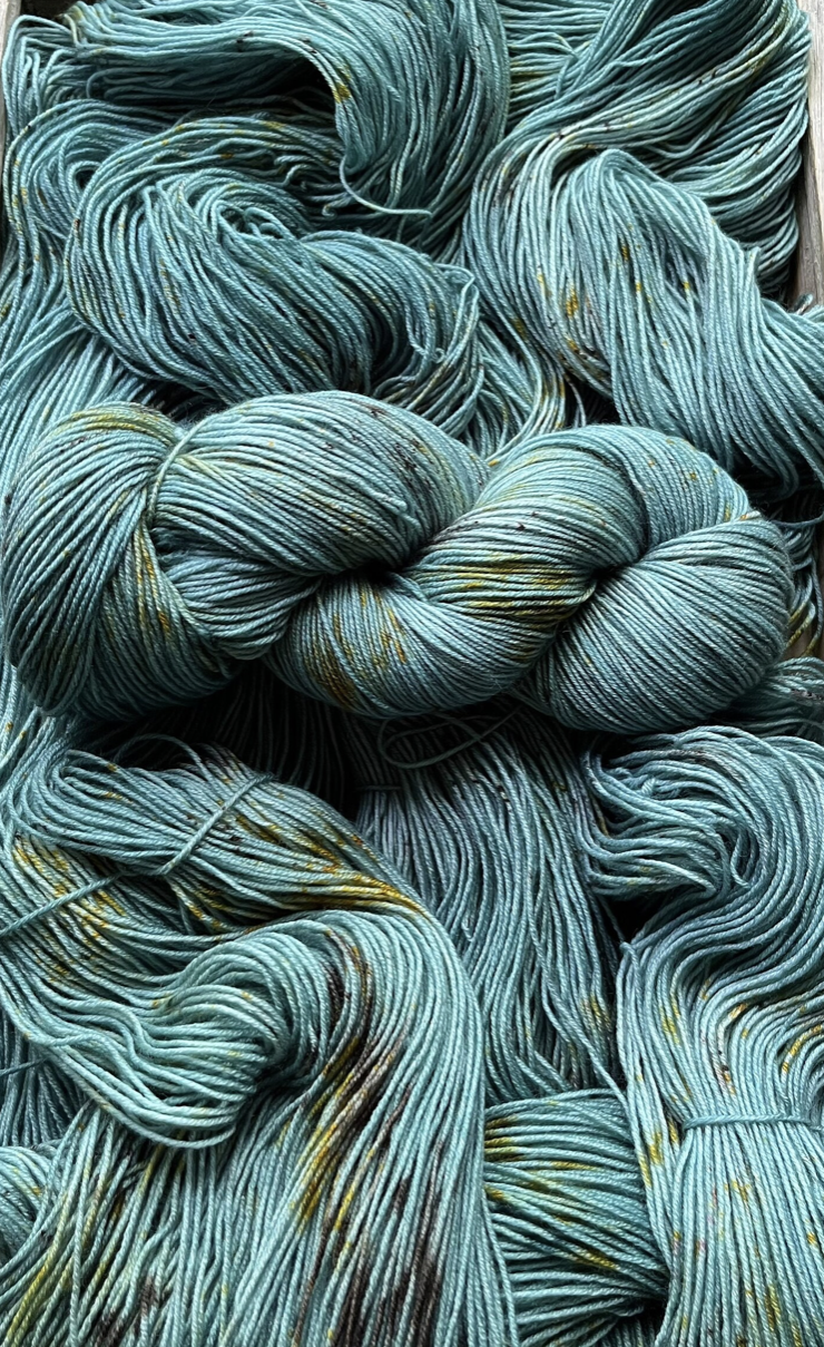 Beach Cruiser is a beautiful, dusty turquoise shade with golden speckles throughout. A fan favourite from the start, this colourway will delight and enchant you while working on your next project!