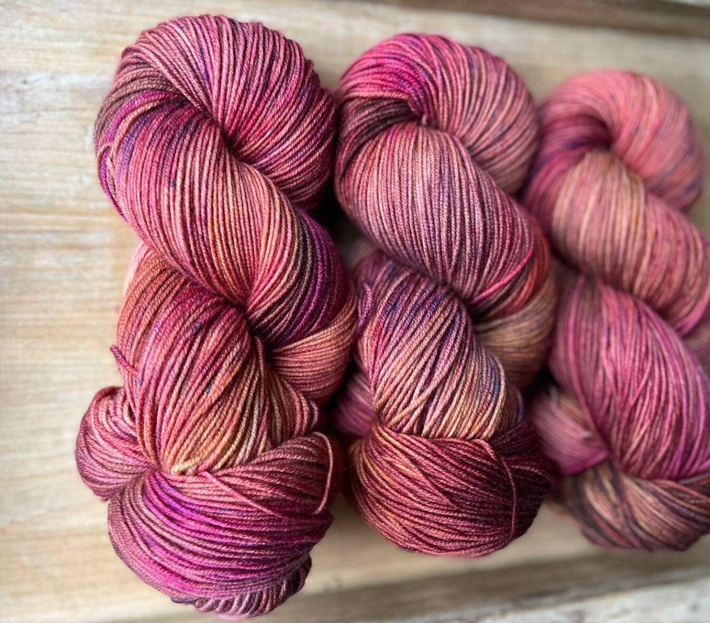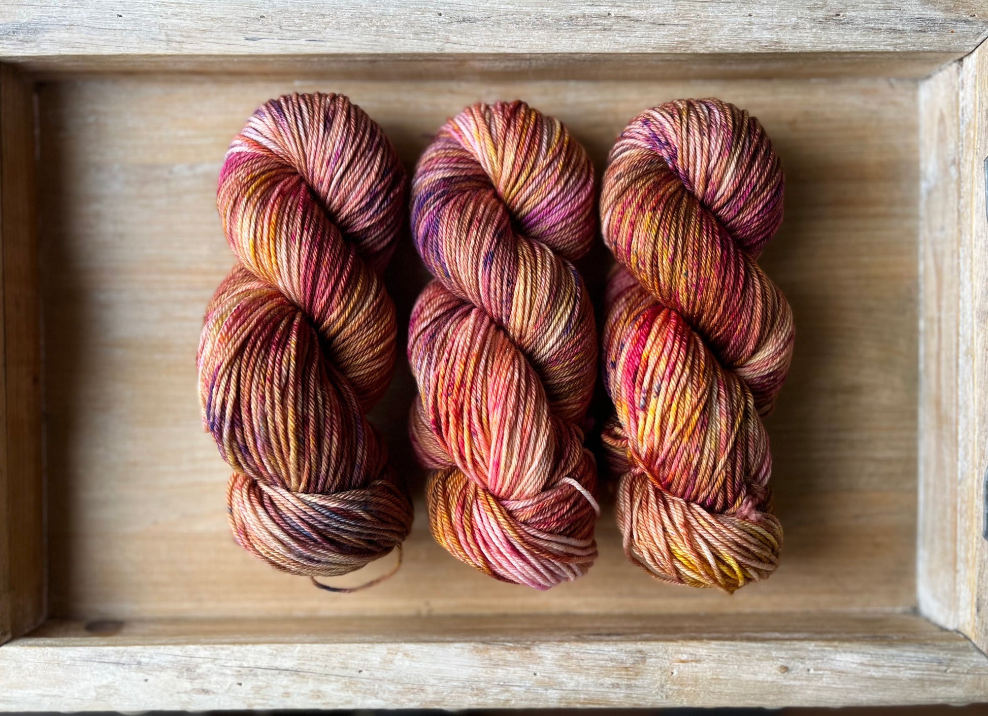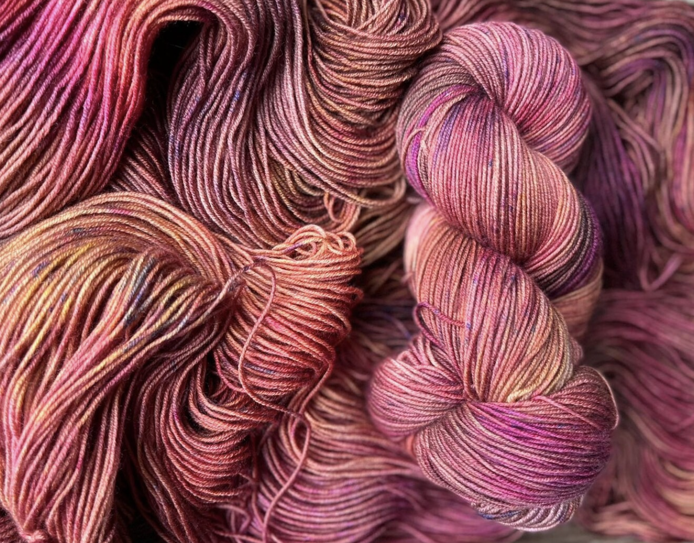 Luxe Sock Base: Luxe Sock is made up of 75% Ultra Fine Merino Wool, 15% Mulberry Silk, and 10% Cashmere. Each skien is 100 grams and 437 yards, 2ply construction. This yarn base is heavenly soft against the skin, and perfect for a special project calling for a high end fingering weight yarn. The Mulberry Silk adds drape and lustre, and the cashmere creates a fuzzy halo effect as you work with it. The colours of dye tend to shine through, looking much more striking and rich compared to some of my samples on Superwash bases. Fibres in this base are sourced from Australia, the wool used in this yarn is ethically produced from sheep that have NOT been mulesed. Hand wash only, lay flat to dry.