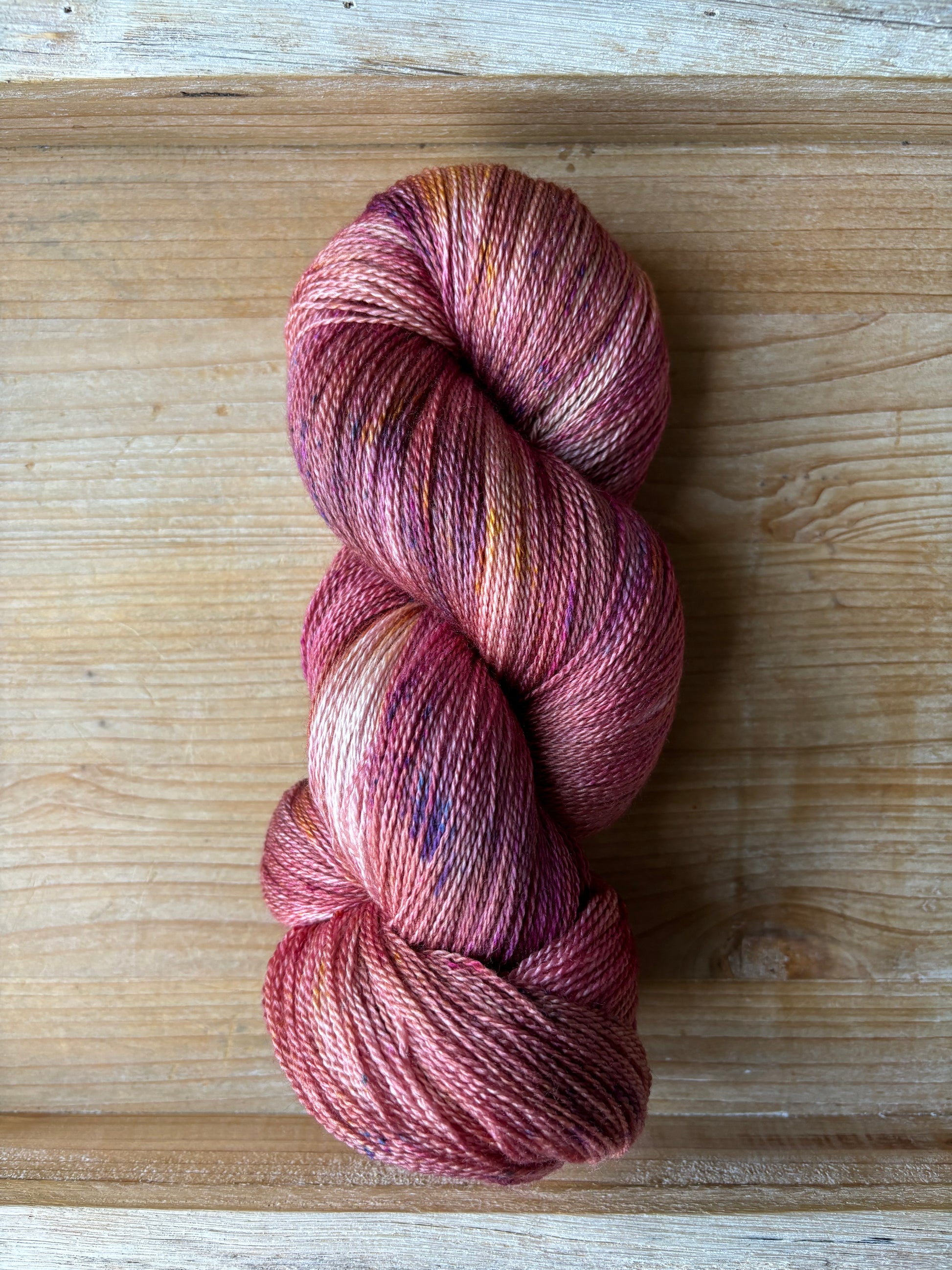 Lustrous Lace Base: This very thin, very fine lace weight yarn is both luxurious yet practical. Made up of 75% Extrafine Superwash Merino, and 25% Mulberry Silk, this base is so very soft, and the colours of dye simply glow throughout each skein. 100 grams and 875 yards, this yarn base is a 2ply construction. A stunning choice for shawls and light summer garments, this yarn base has a lovely drape and is very comfortable to wear next to the skin. Fibres in this base are sourced from Australia, the wool used in this yarn is ethically produced from sheep that have NOT been mulesed.. Hand wash only, lay flat to dry.