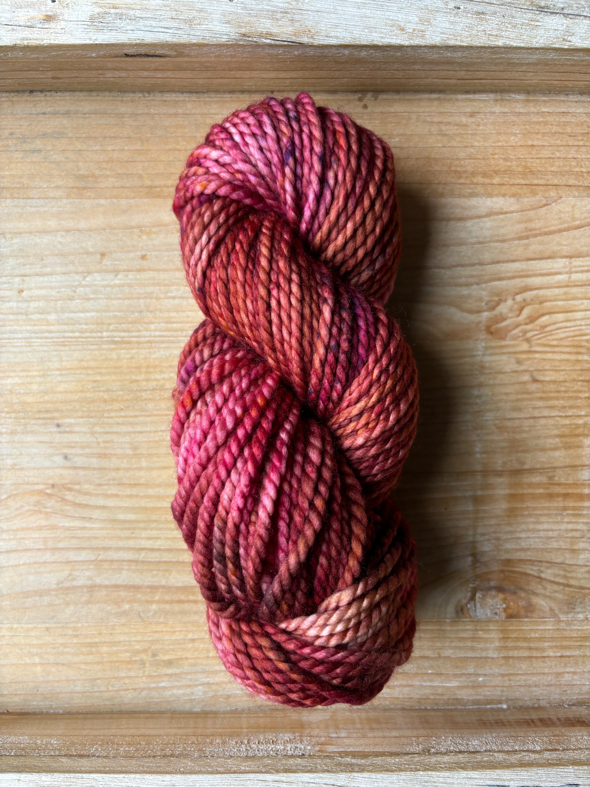 Hidden Bulky Base: Once a little shop secret, this base is now available all the time! The thickest of all my bases, this 100% Extra Fine Superwash Merino base is unbelievably soft next to the skin, and the dye colours simply shine through. Each skein is 100 grams and 109 yards, with a 2ply construction. Although made up of the same blend as the Classic Worsted Weight base, this yarn has a much softer feel to it thanks to the Extra Fine Merino Wool. Fibres in this base are sourced from Australia, the wool used in this yarn is ethically produced from sheep that have NOT been mulesed.