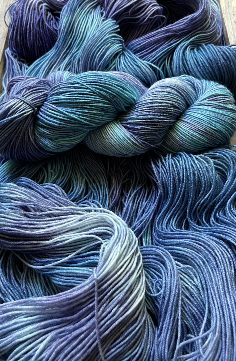Luxe Sock Base: Luxe Sock is made up of 75% Ultra Fine Merino Wool, 15% Mulberry Silk, and 10% Cashmere. Each skien is 100 grams and 437 yards, 2ply construction. This yarn base is heavenly soft against the skin, and perfect for a special project calling for a high end fingering weight yarn. The Mulberry Silk adds drape and lustre, and the cashmere creates a fuzzy halo effect as you work with it. The colours of dye tend to shine through, looking much more striking and rich compared to some of my samples on Superwash bases. Fibres in this base are sourced from Australia, the wool used in this yarn is ethically produced from sheep that have NOT been mulesed. Hand wash only, lay flat to dry.