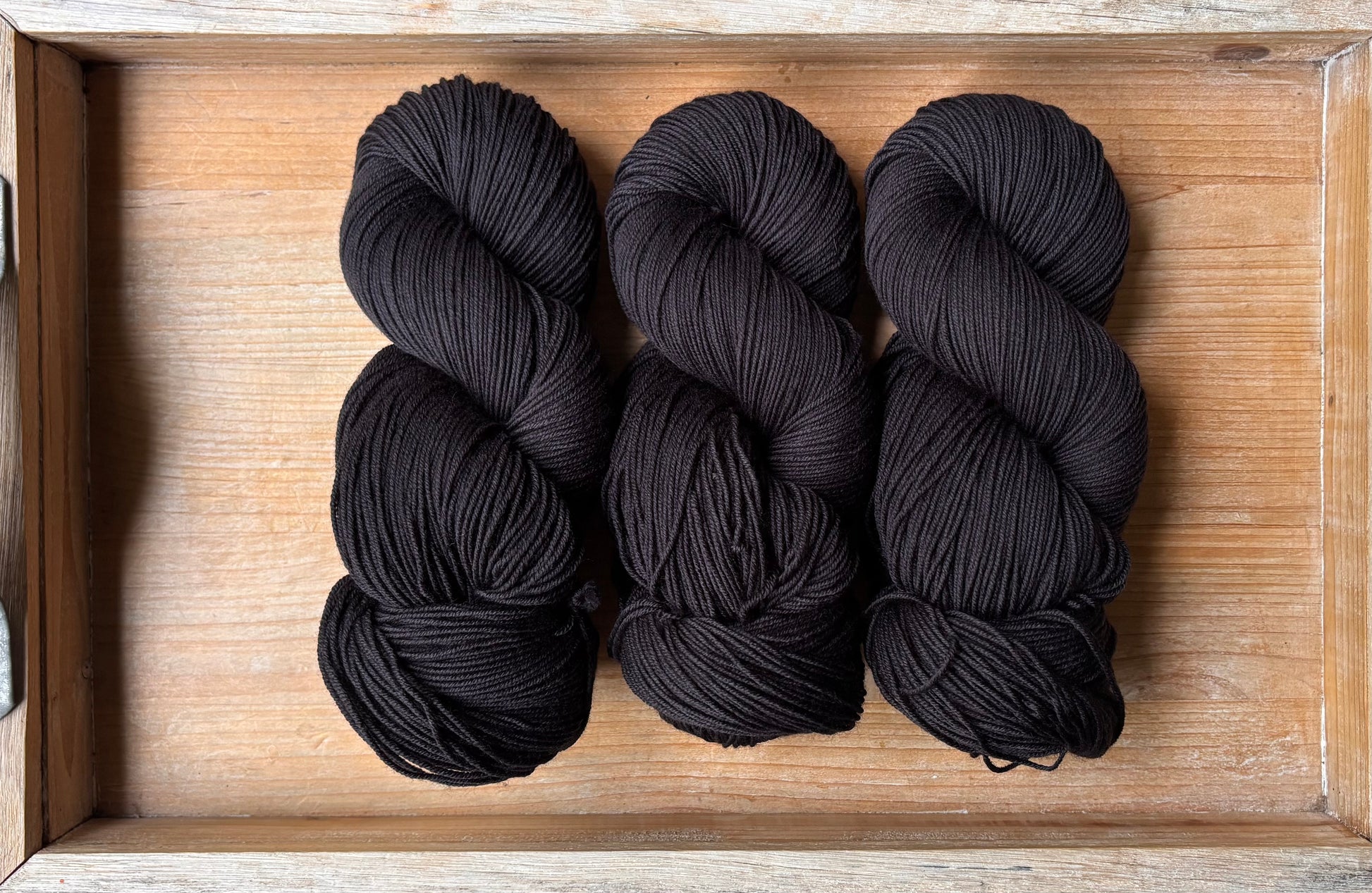 After much trial and error, I've been able to build the perfect dye recipe for a true Black colourway! Chat Noir is named fondly after my own black Bombay cat, Pixie, who has my heart forever.
