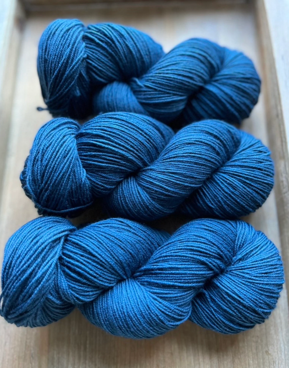 Boyfriend Jeans is a deep midnight blue with a bit of pop to it, a true staple of any wardrobe or yarn collection!