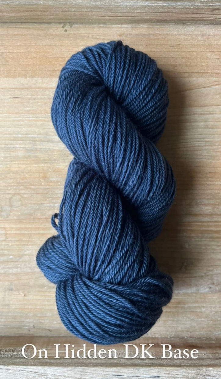 Hidden DK Base: Once a little shop secret, this base is now available all the time! This ultra versatile Double Knit Base is a no-brainer, easy choice for anything meant to wear next to the skin. Made up of 85% Extra Fine Superwash Merino Wool and 15% Nylon, this yarn is unbelievably soft, easy to care for (machine washable on a delicate cycle, in cold water) and takes up the dye colours beautifully. This yarn base (especially) does not agree with the plastic packaging and shipping process, and can often have an off-putting odour upon opening. With a little room to breathe, and some fresh air, you’ll notice it dissipates quickly enough! Each skein is 100 grams and 246 yards, this yarn is a 4ply construction. Fibres in this base are sourced from Australia, the wool used in this yarn is ethically produced from sheep that have NOT been mulesed.