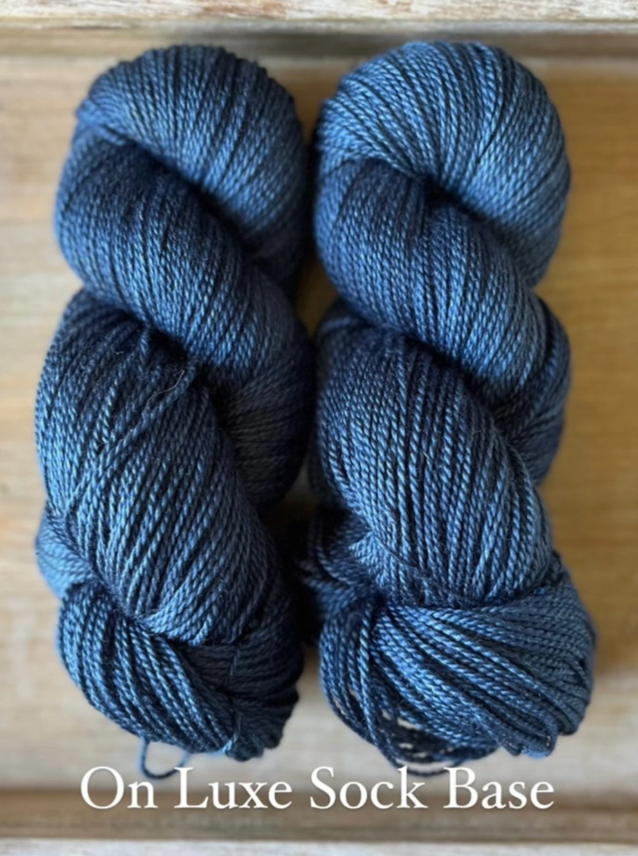Luxe Sock Base: Luxe Sock is made up of 75% Ultra Fine Merino Wool, 15% Mulberry Silk, and 10% Cashmere. Each skien is 100 grams and 437 yards, 2ply construction. This yarn base is heavenly soft against the skin, and perfect for a special project calling for a high end fingering weight yarn. The Mulberry Silk adds drape and lustre, and the cashmere creates a fuzzy halo effect as you work with it. The colours of dye tend to shine through, looking much more striking and rich compared to some of my samples on Superwash bases. Fibres in this base are sourced from Australia, the wool used in this yarn is ethically produced from sheep that have NOT been mulesed. Hand wash only, lay flat to dry.