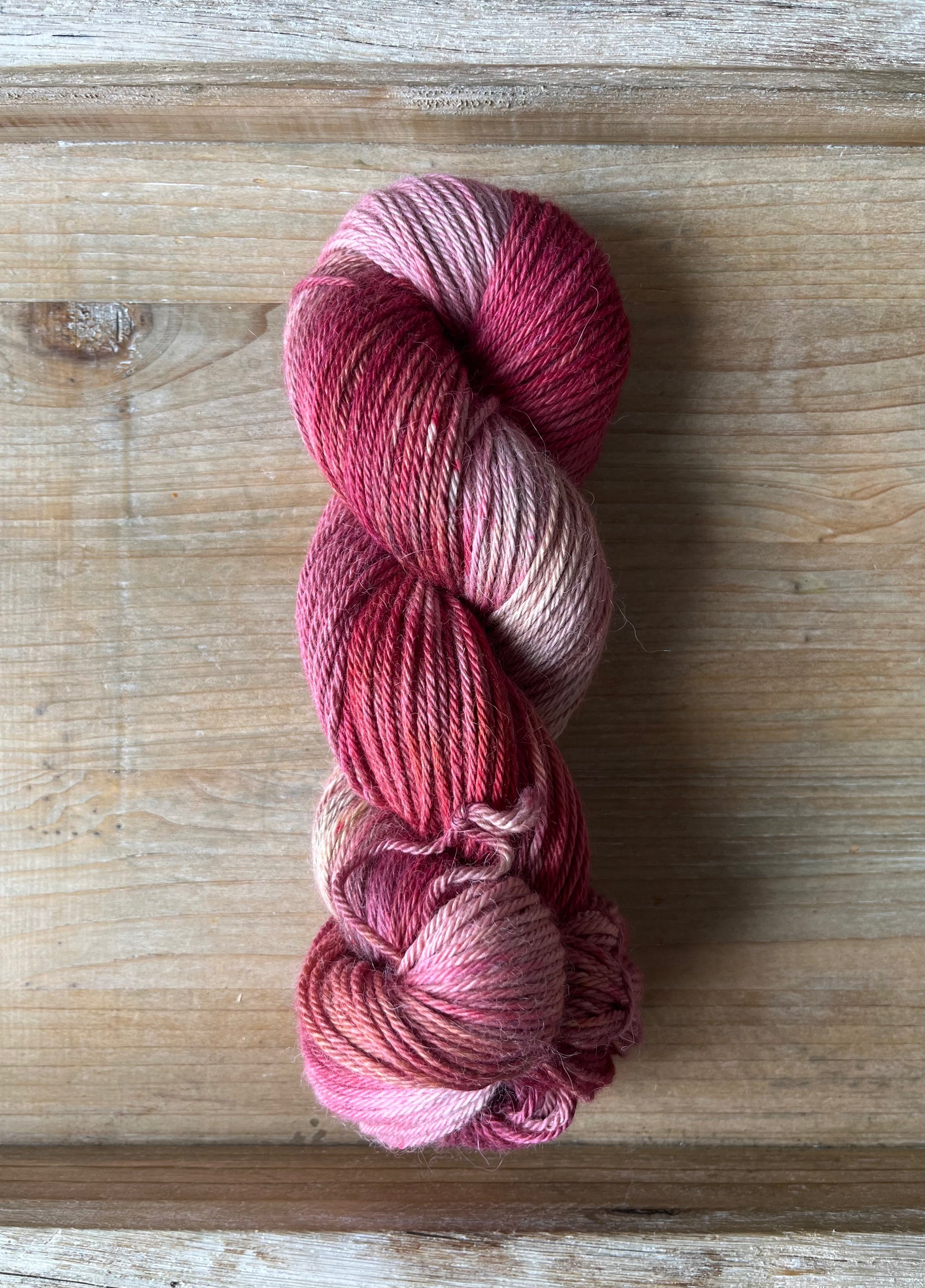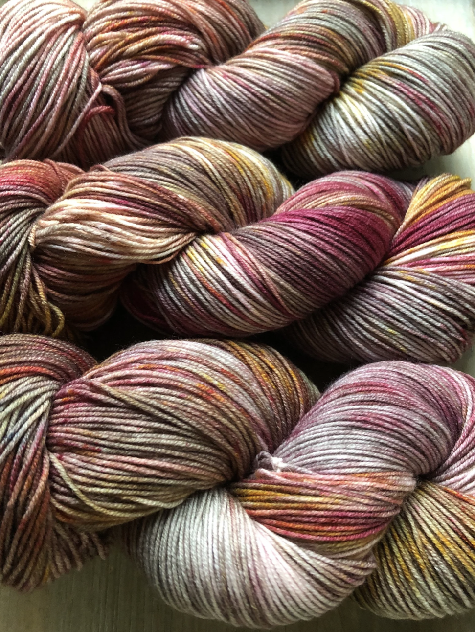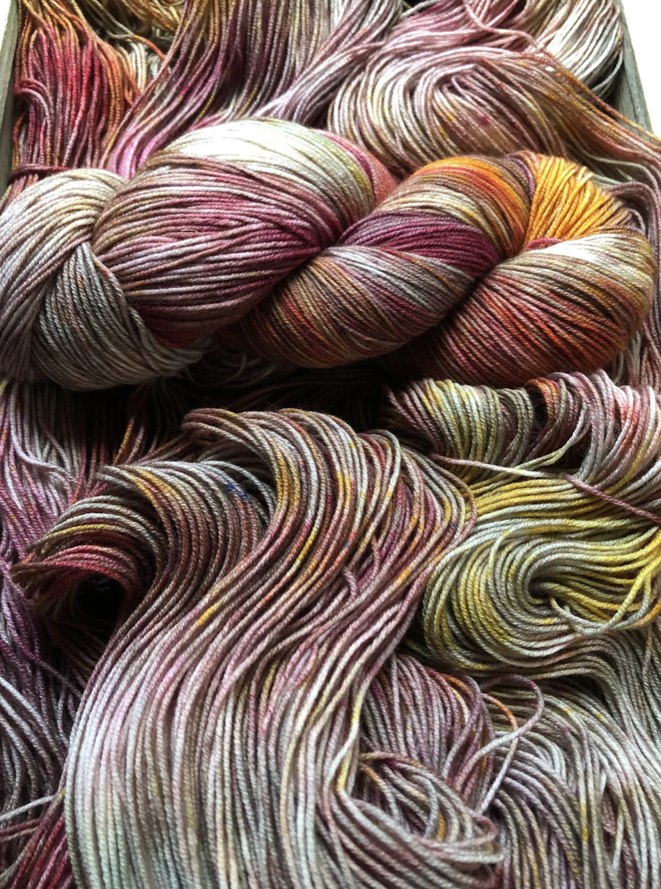 Luxe Sock Base: Luxe Sock is made up of 75% Ultra Fine Merino Wool, 15% Mulberry Silk, and 10% Cashmere. Each skien is 100 grams and 437 yards, 2ply construction. This yarn base is heavenly soft against the skin, and perfect for a special project calling for a high end fingering weight yarn. The Mulberry Silk adds drape and lustre, and the cashmere creates a fuzzy halo effect as you work with it. The colours of dye tend to shine through, looking much more striking and rich compared to some of my samples on Superwash bases. Fibres in this base are sourced from Australia, the wool used in this yarn is ethically produced from sheep that have NOT been mulesed. Hand wash only, lay flat to dry.