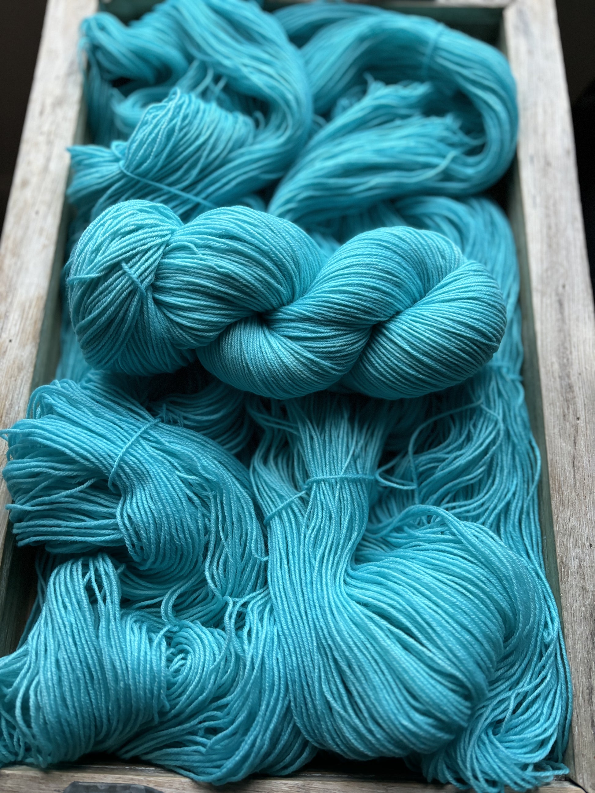 Luxe Sock Base: Luxe Sock is made up of 75% Ultra Fine Merino Wool, 15% Mulberry Silk, and 10% Cashmere. Each skien is 100 grams and 437 yards, 2ply construction. This yarn base is heavenly soft against the skin, and perfect for a special project calling for a high end fingering weight yarn. The Mulberry Silk adds drape and lustre, and the cashmere creates a fuzzy halo effect as you work with it. The colours of dye tend to shine through, looking much more striking and rich compared to some of my samples on Superwash bases. Fibres in this base are sourced from Australia, the wool used in this yarn is ethically produced from sheep that have NOT been mulesed. Hand wash only, lay flat to dry.