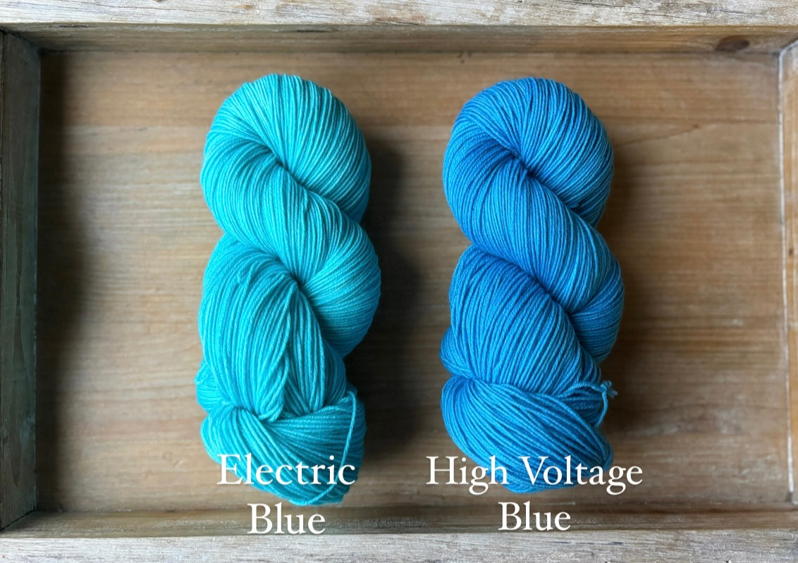 Bright Lights - High Voltage Blue is shown here on my Squishy Sock Base