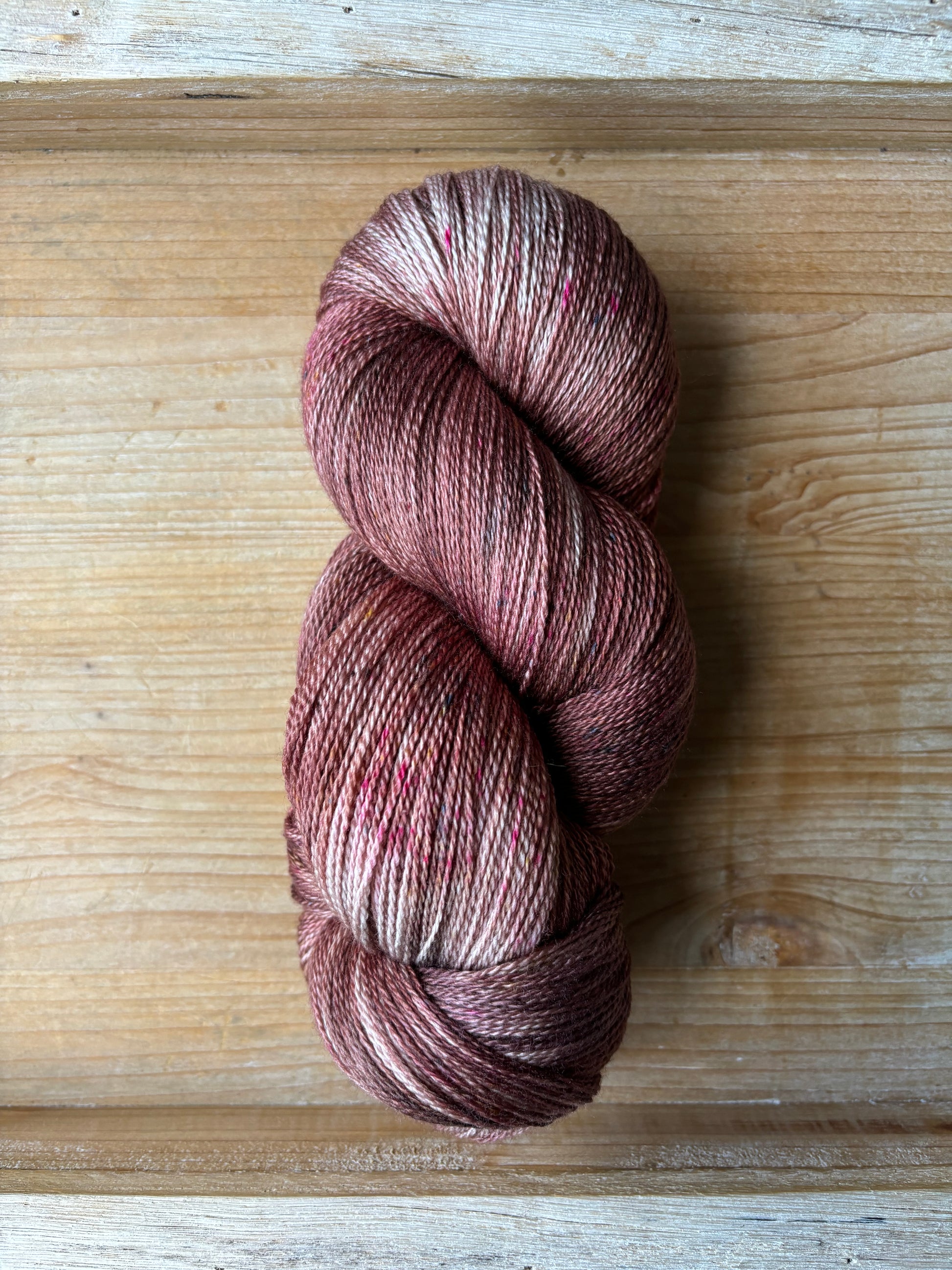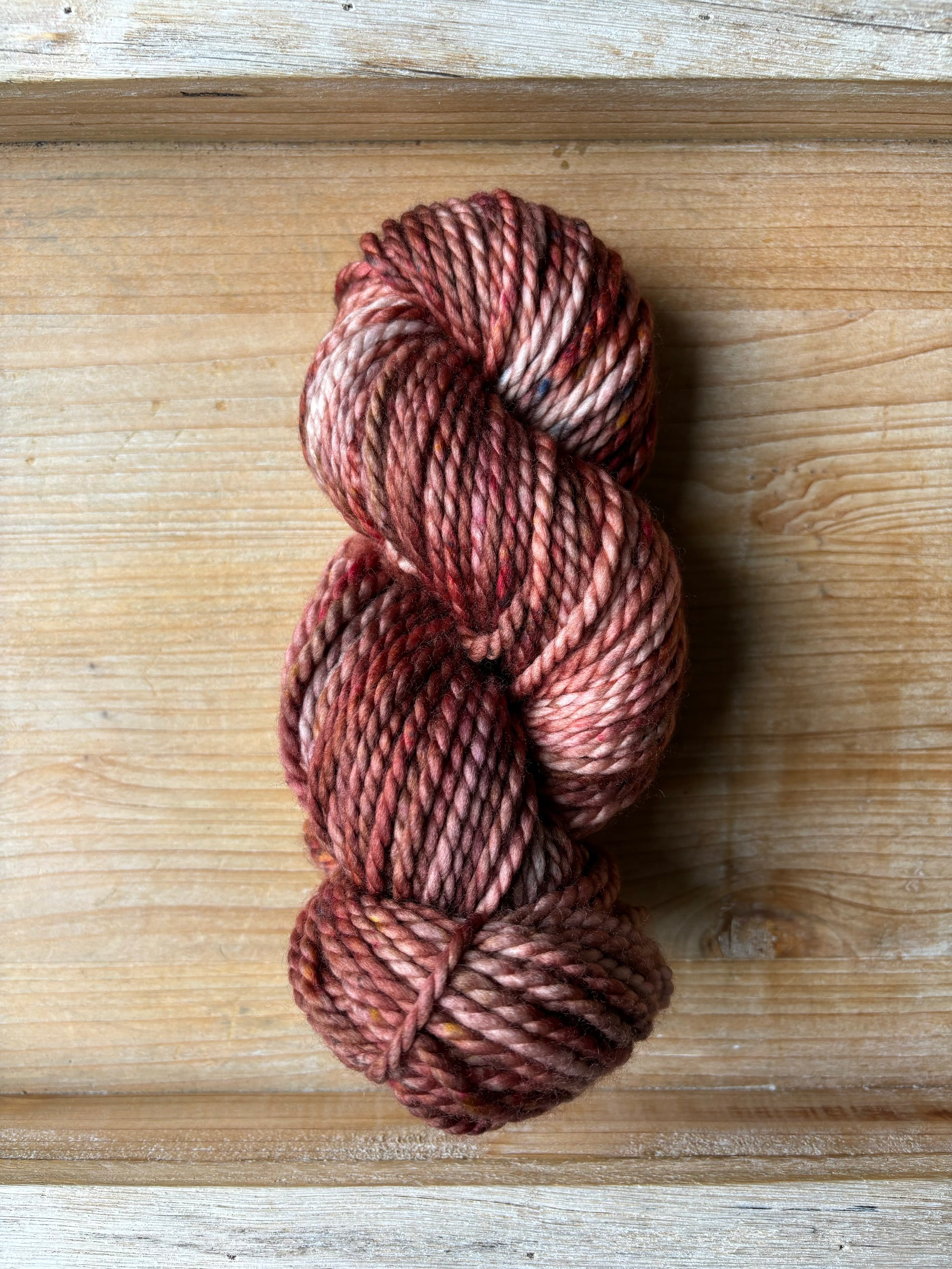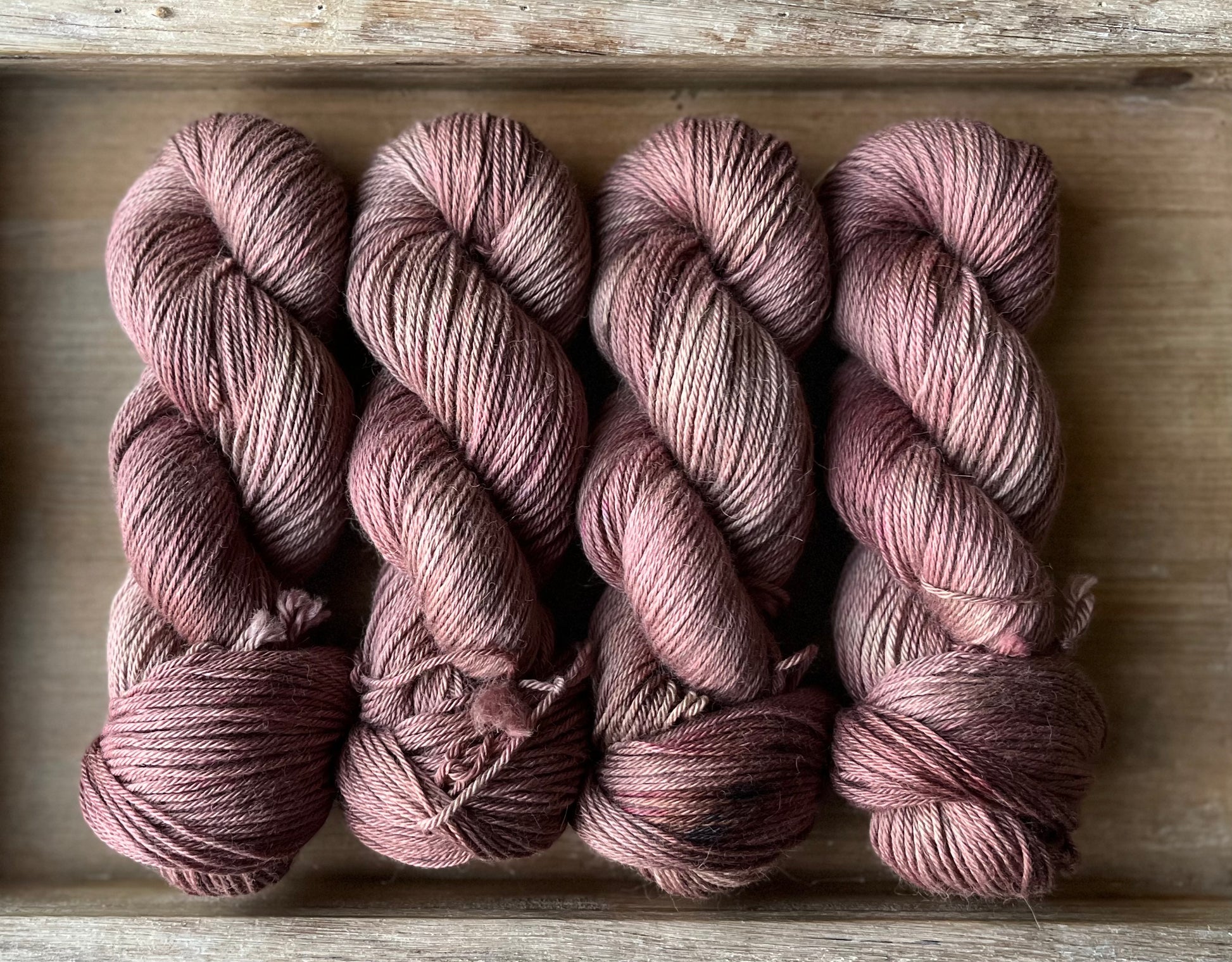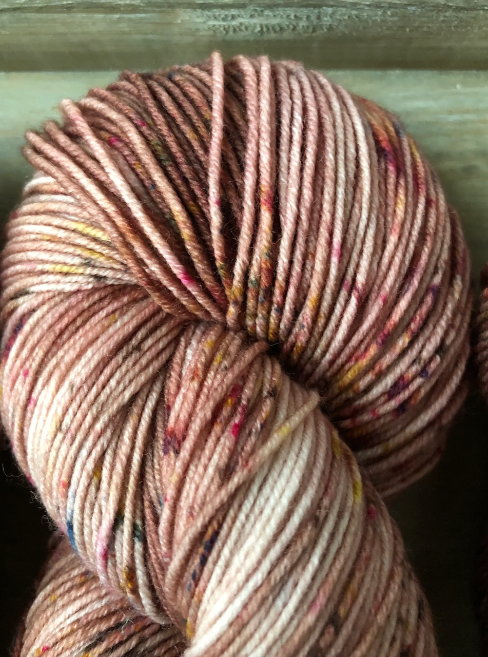 Brown Eyed Girl is a fan favourite, in both yarn and in song! This fabulous hand dyed yarn has the best of browns, rose-y pinks, and all the speckles in between! Some batches have more pink than others, but I will only ship you multiple skeins from the same dye pans for consistency. Alternating skeins in between rows is especially recommended with colourways like this one.