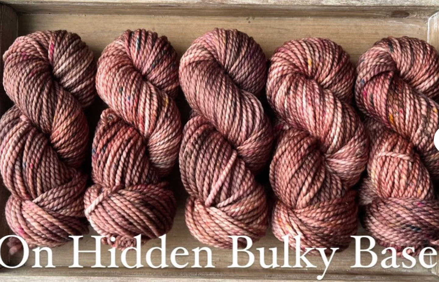 Hidden Bulky Base: Once a little shop secret, this base is now available all the time! The thickest of all my bases, this 100% Extra Fine Superwash Merino base is unbelievably soft next to the skin, and the dye colours simply shine through. Each skein is 100 grams and 109 yards, with a 2ply construction. Although made up of the same blend as the Classic Worsted Weight base, this yarn has a much softer feel to it thanks to the Extra Fine Merino Wool. Fibres in this base are sourced from Australia, the wool used in this yarn is ethically produced from sheep that have NOT been mulesed.