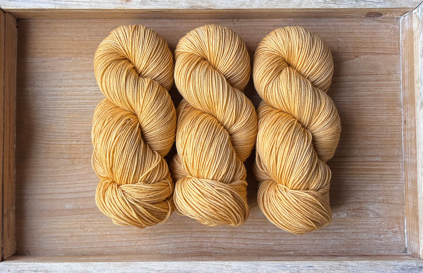 Luxe Sock Base: Luxe Sock is made up of 75% Ultra Fine Merino Wool, 15% Mulberry Silk, and 10% Cashmere. Each skien is 100 grams and 437 yards, 2ply construction. This yarn base is heavenly soft against the skin, and perfect for a special project calling for a high end fingering weight yarn. The Mulberry Silk adds drape and lustre, and the cashmere creates a fuzzy halo effect as you work with it. The colours of dye tend to shine through, looking much more striking and rich compared to some of my samples on Superwash bases. Fibres in this base are sourced from Australia, the wool used in this yarn is ethically produced from sheep that have NOT been mulesed. Hand wash only, lay flat to dry.