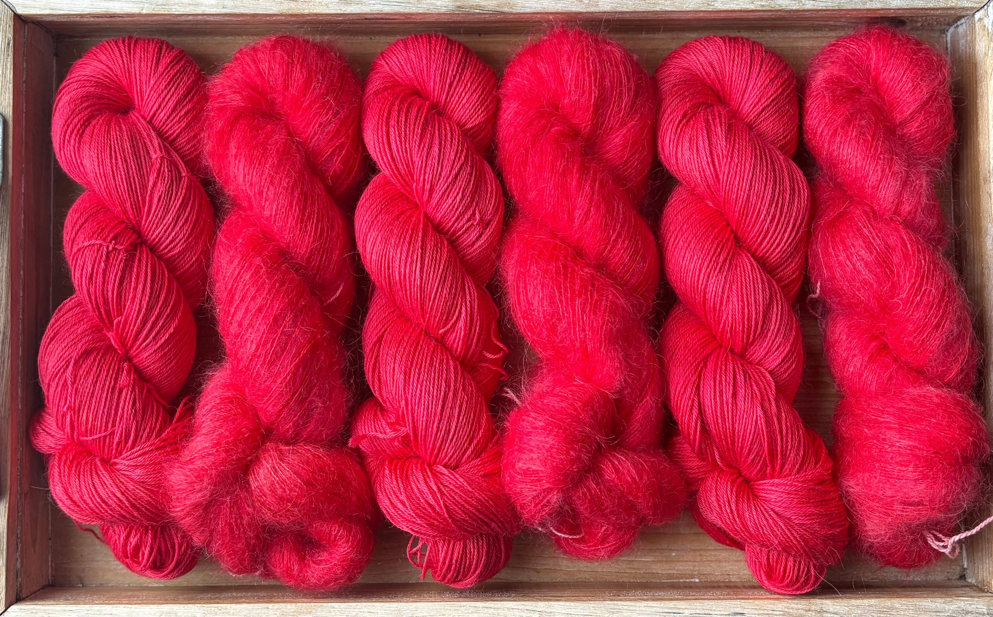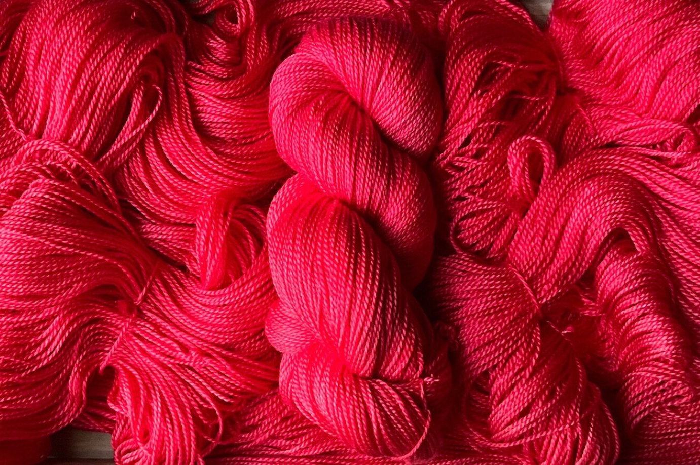 Luxe Sock Base: Luxe Sock is made up of 75% Ultra Fine Merino Wool, 15% Mulberry Silk, and 10% Cashmere. Each skien is 100 grams and 437 yards, 2ply construction. This yarn base is heavenly soft against the skin, and perfect for a special project calling for a high end fingering weight yarn. The Mulberry Silk adds drape and lustre, and the cashmere creates a fuzzy halo effect as you work with it. The colours of dye tend to shine through, looking much more striking and rich compared to some of my samples on Superwash bases. Fibres in this base are sourced from Australia, the wool used in this yarn is ethically produced from sheep that have NOT been mulesed. Hand wash only, lay flat to dry.