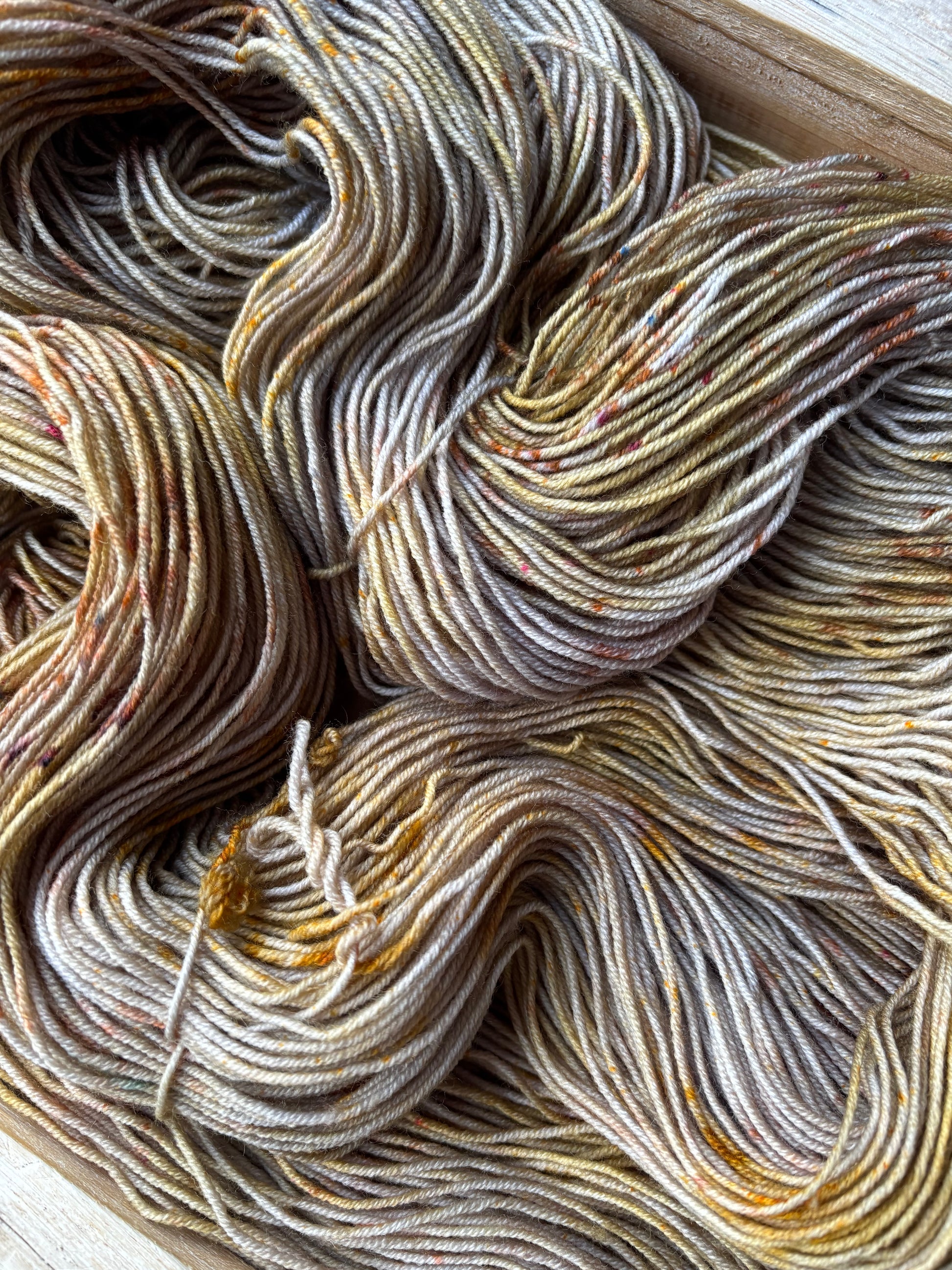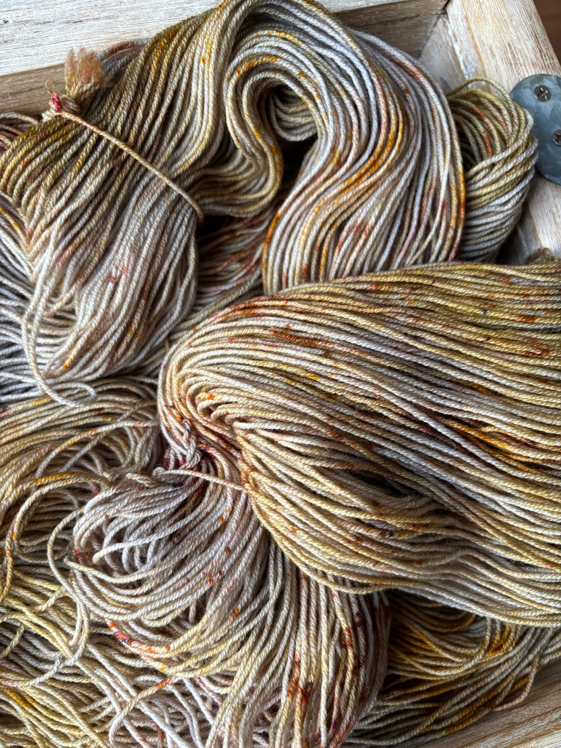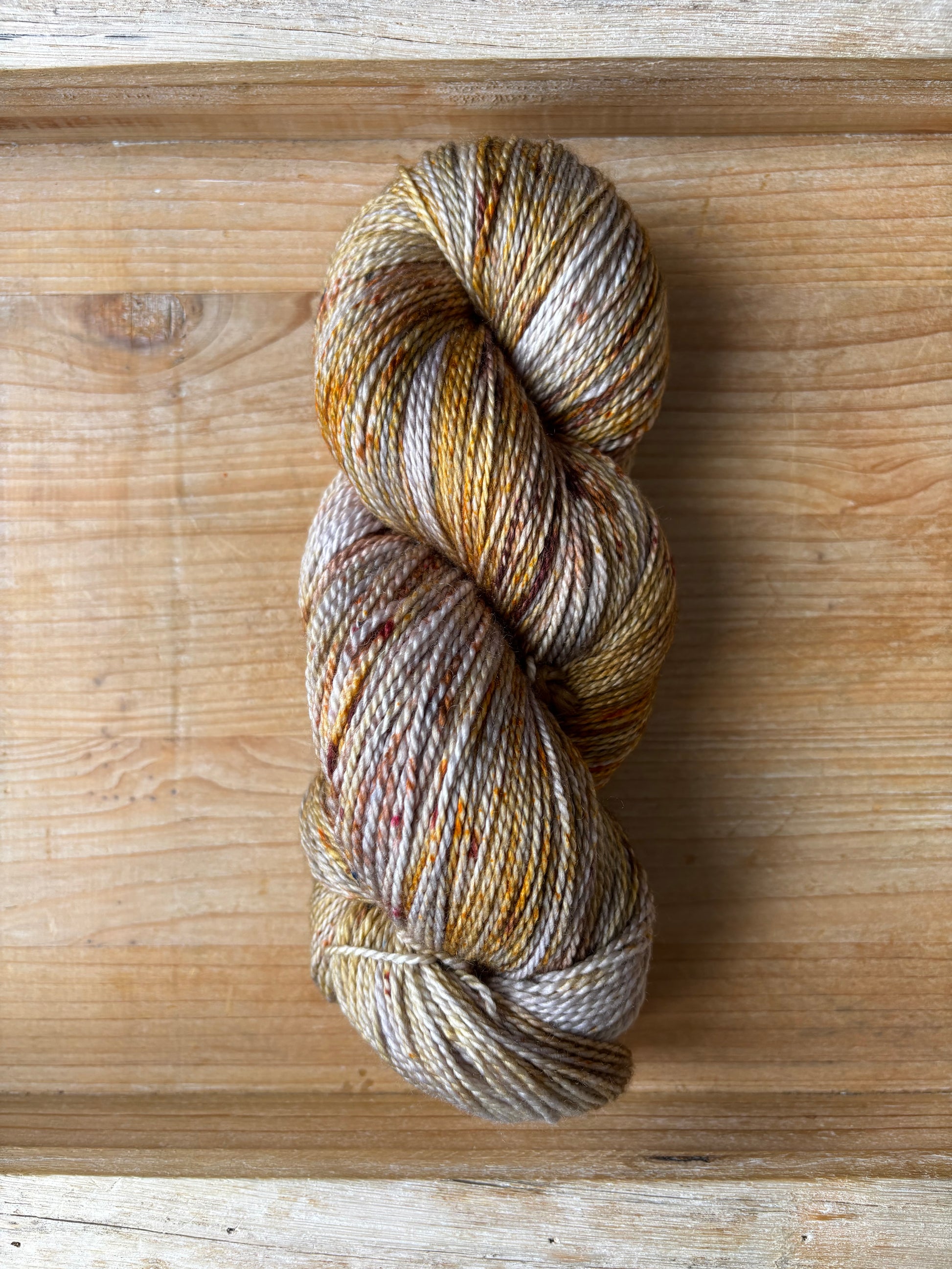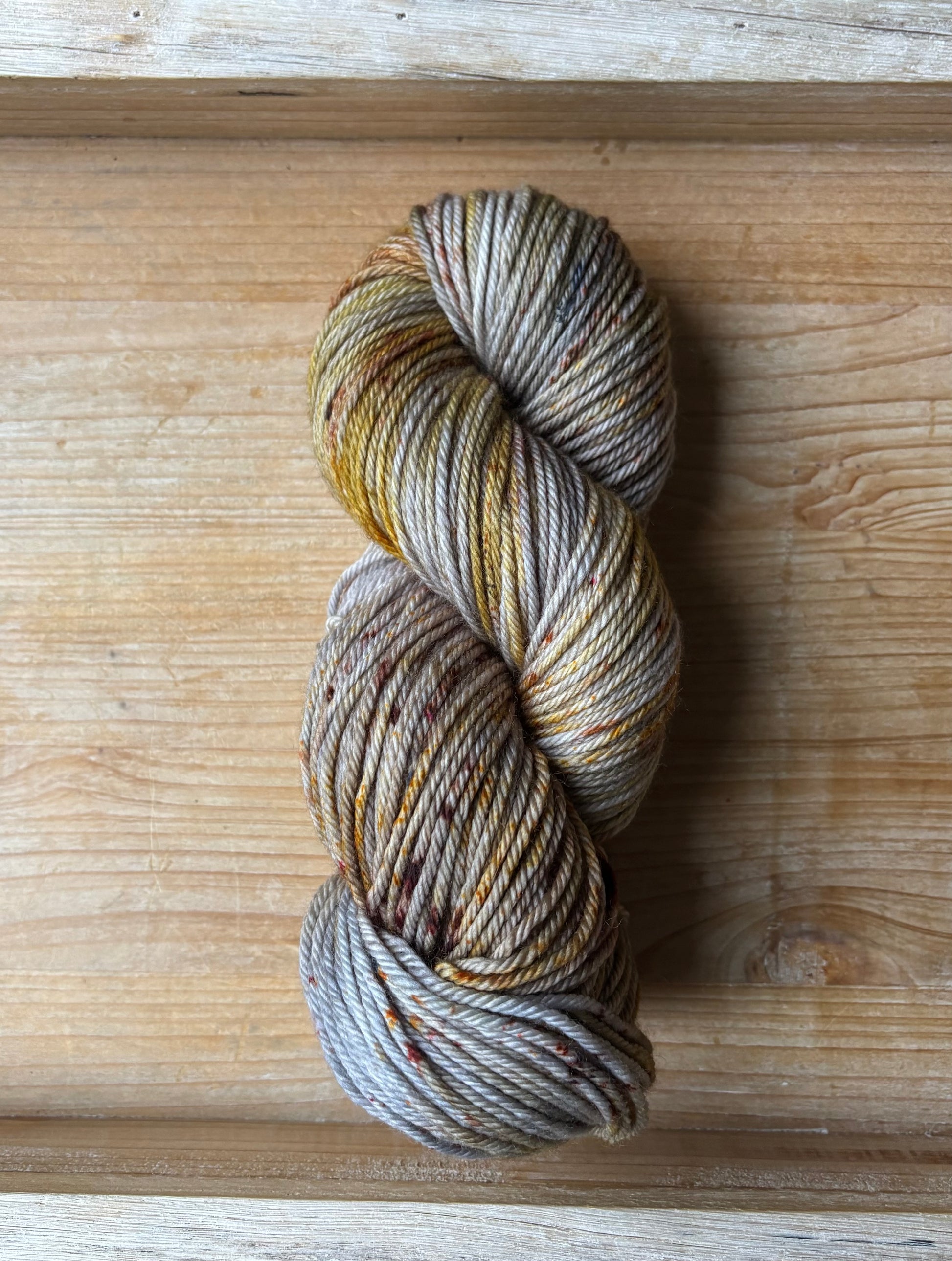Catching Fireflies is a colourway full of sparkle and glow, with notes of silver and gold, speckles of bronze-y caramel and brown. Catching Fireflies will spark a love for hand dyed yarn, as each skein is truly a unique and one of a kind creation. You'll want to make sure to alternate skeins in between rows of larger projects to melt each skein into the next!