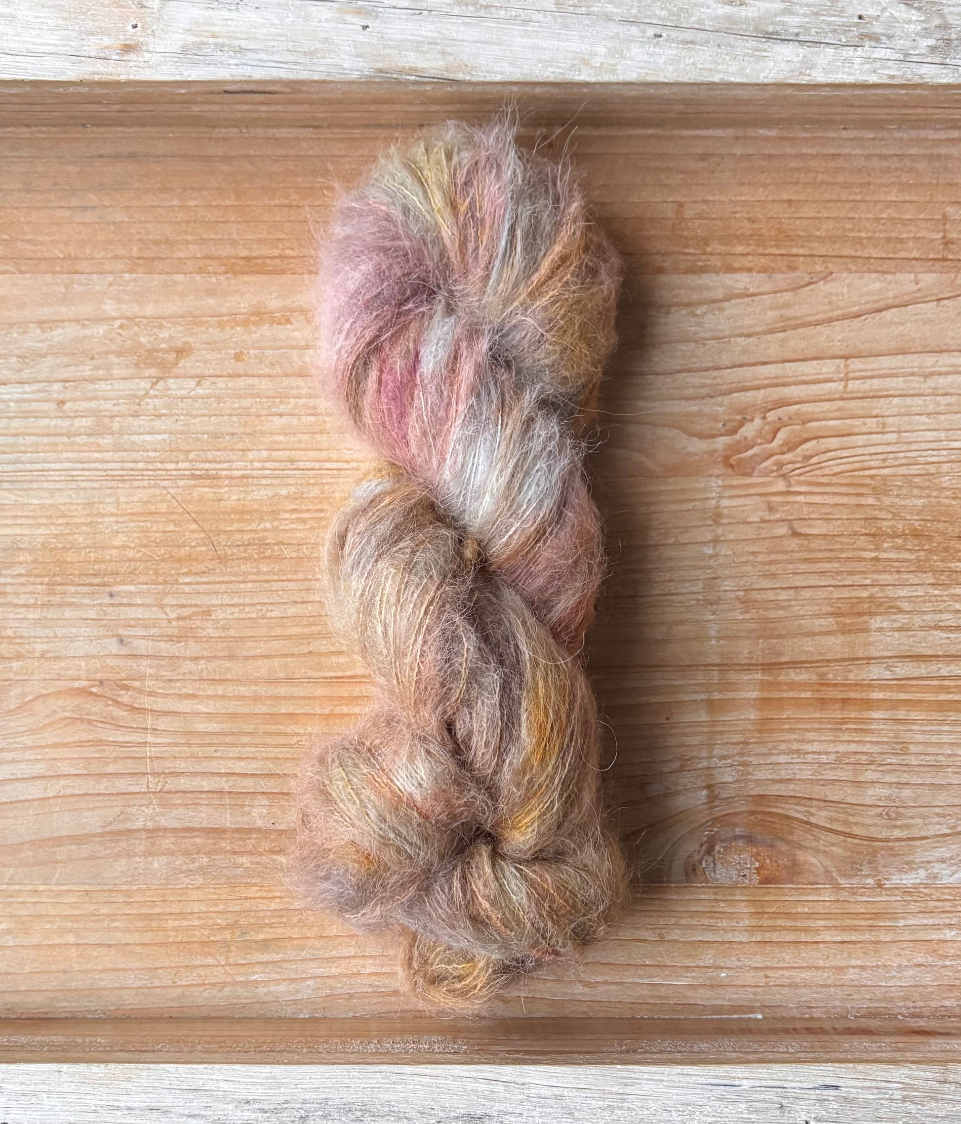 Yes, Suri! Lace Base: Take your project to the next level of luxury with this gorgeous lace weight yarn base! Made up of 75% Brushed Baby Suri Alpaca, and 25% Mulberry Silk, each 50 gram skein comes with 328 yards of fluffy magic. This base can be somewhat of a wild card when it comes to dye recipe consistency, as is often the case with Alpaca blends, so please do not hesitate to reach out to me as I’m always happy to send ‘preview photos’ before shipping, just to make sure we get it right! Yes, Suri! is significantly softer than Mohair Halo and is a great choice for anyone who wants something less itchy for next to skin wear. This base has a bit more drape and creates a less stiff fabric than Mohair Halo. Fibres in this yarn base are sourced from South America. Hand wash only, lay flat to dry, and colour bleeding is quite typical for the first few washes, so swatching to test for colour transfer is recommended