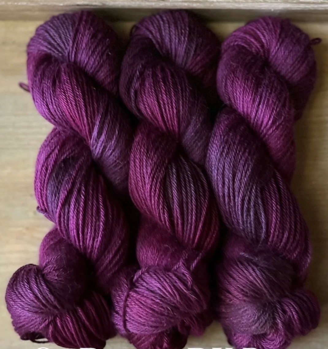 Luxe Sock Base: Luxe Sock is made up of 75% Ultra Fine Merino Wool, 15% Mulberry Silk, and 10% Cashmere. Each skien is 100 grams and 437 yards, 2ply construction. This yarn base is heavenly soft against the skin, and perfect for a special project calling for a high end fingering weight yarn. The Mulberry Silk adds drape and lustre, and the cashmere creates a fuzzy halo effect as you work with it. The colours of dye tend to shine through, looking much more striking and rich compared to some of my samples on Superwash bases. Fibres in this base are sourced from Australia, the wool used in this yarn is ethically produced from sheep that have NOT been mulesed. Hand wash only, lay flat to dry.