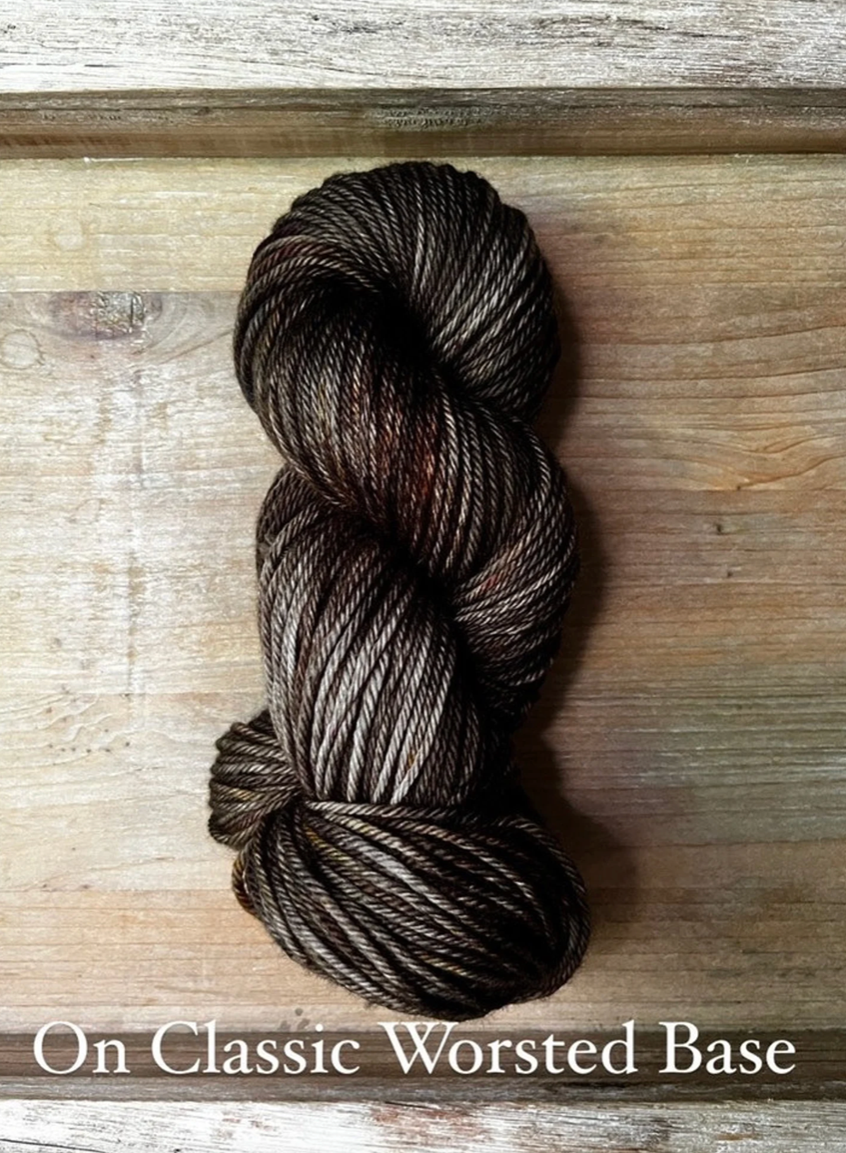 Classic Worsted Base: A soft and full Worsted Base yarn, made up of 100% Superwash Merino Wool. Each skein is 110 grams and 205 yards, with a 4 ply construction. It is plush, and versatile, with terrific stitch definition. And thanks to it’s superwash treatment, it is also machine washable on a delicate cycle. A great, practical choice for any project calling for a Worsted Weight base. Fibres in this base are sourced from Australia.