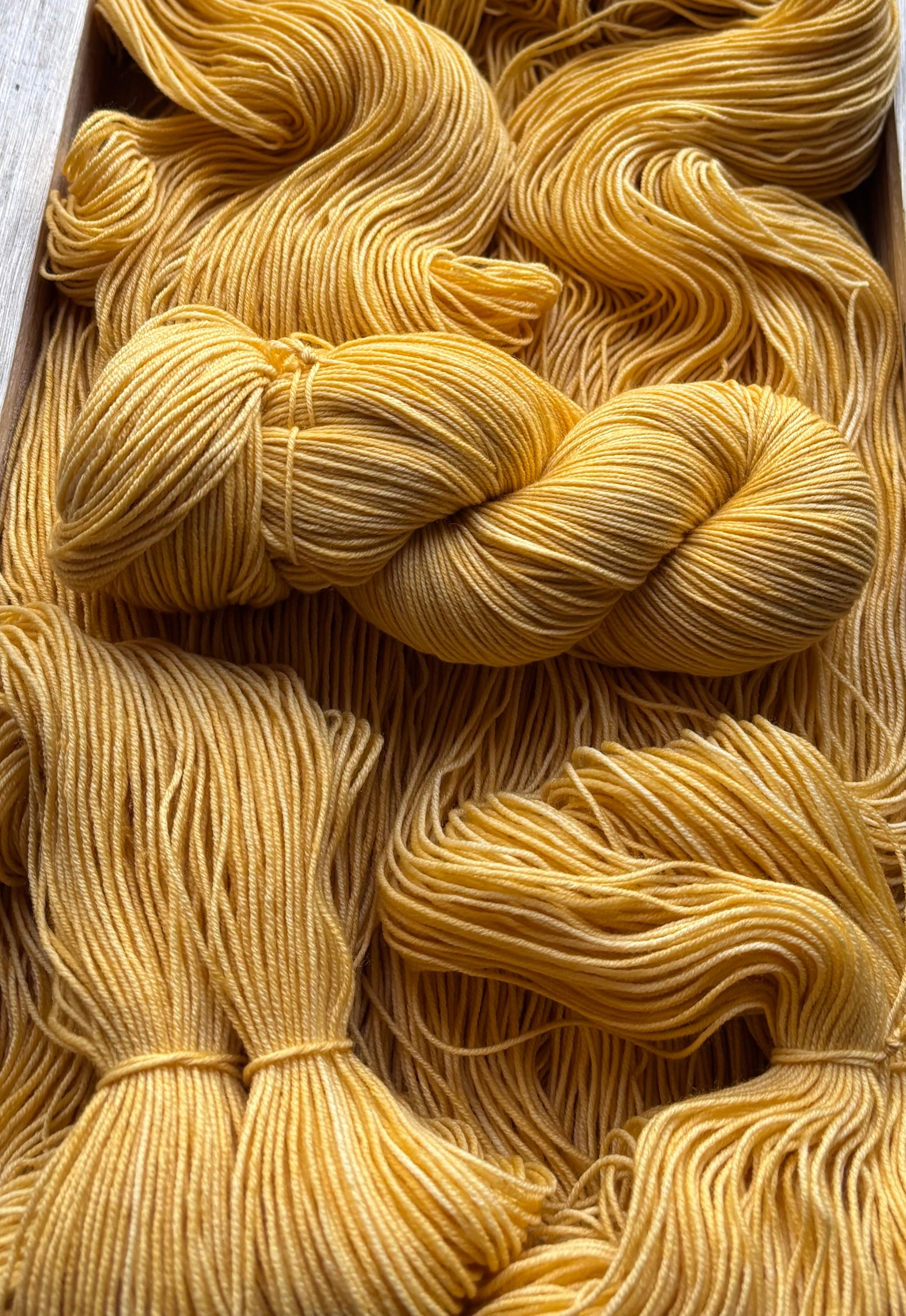 Luxe Sock Base: Luxe Sock is made up of 75% Ultra Fine Merino Wool, 15% Mulberry Silk, and 10% Cashmere. Each skien is 100 grams and 437 yards, 2ply construction. This yarn base is heavenly soft against the skin, and perfect for a special project calling for a high end fingering weight yarn. The Mulberry Silk adds drape and lustre, and the cashmere creates a fuzzy halo effect as you work with it. The colours of dye tend to shine through, looking much more striking and rich compared to some of my samples on Superwash bases. Fibres in this base are sourced from Australia, the wool used in this yarn is ethically produced from sheep that have NOT been mulesed. Hand wash only, lay flat to dry.