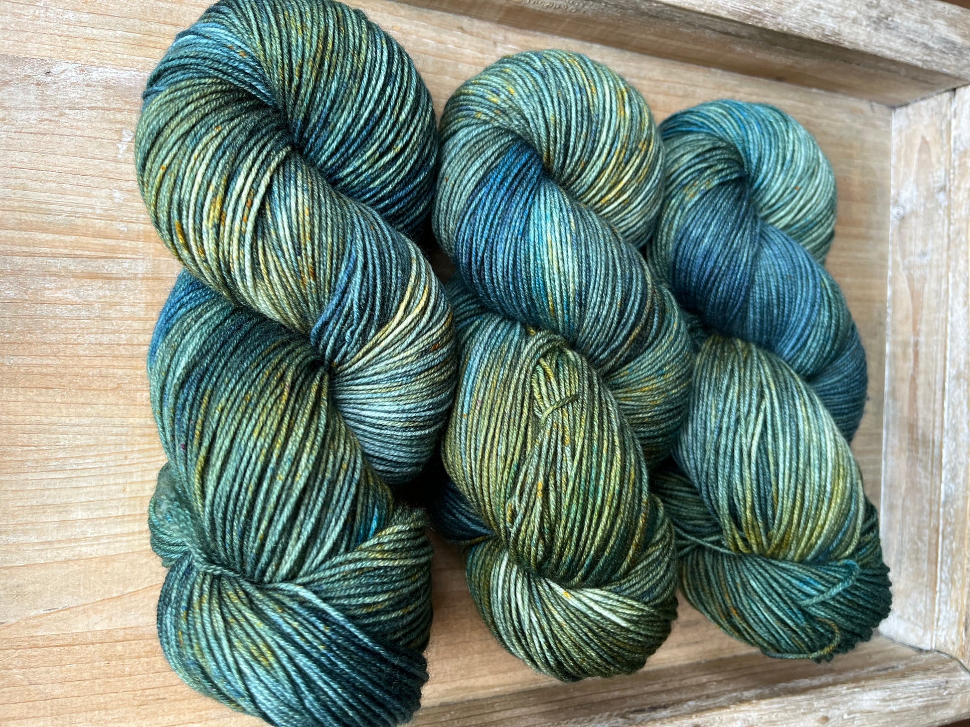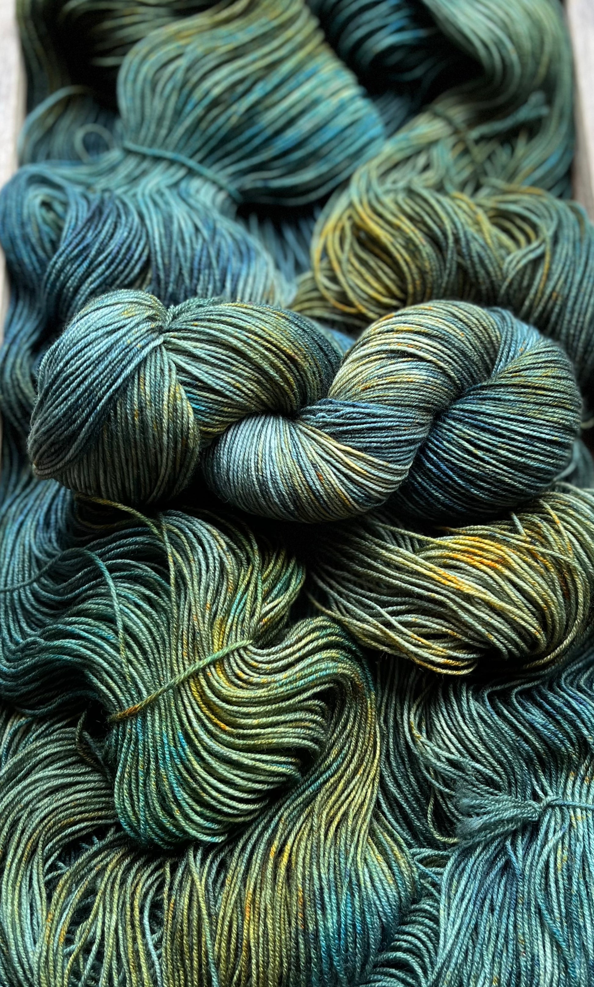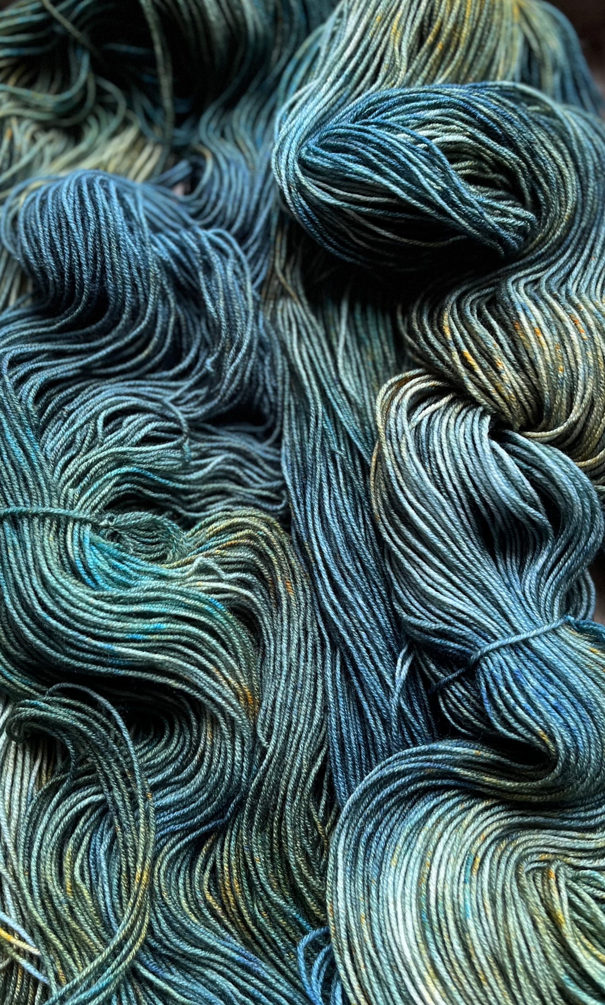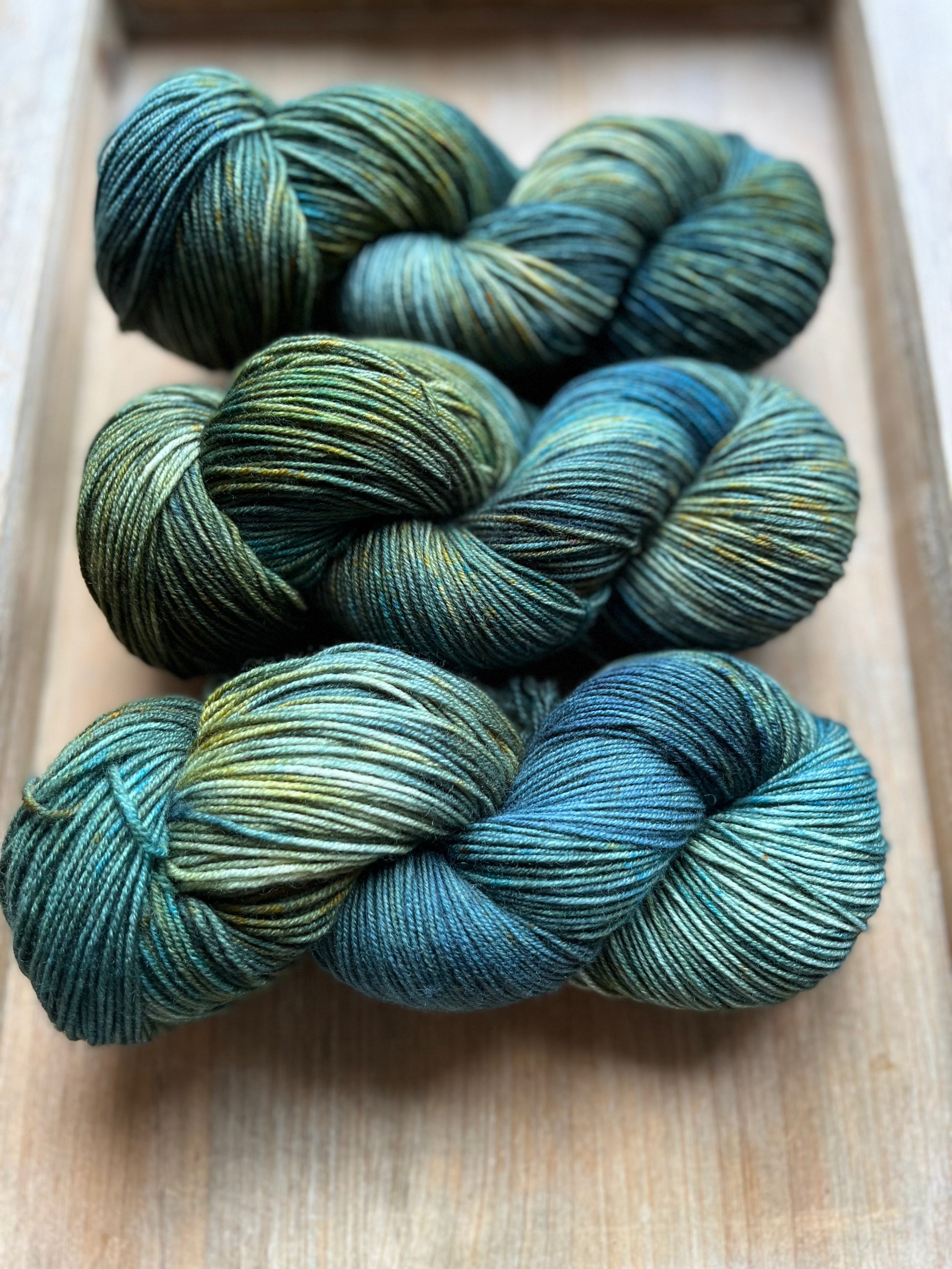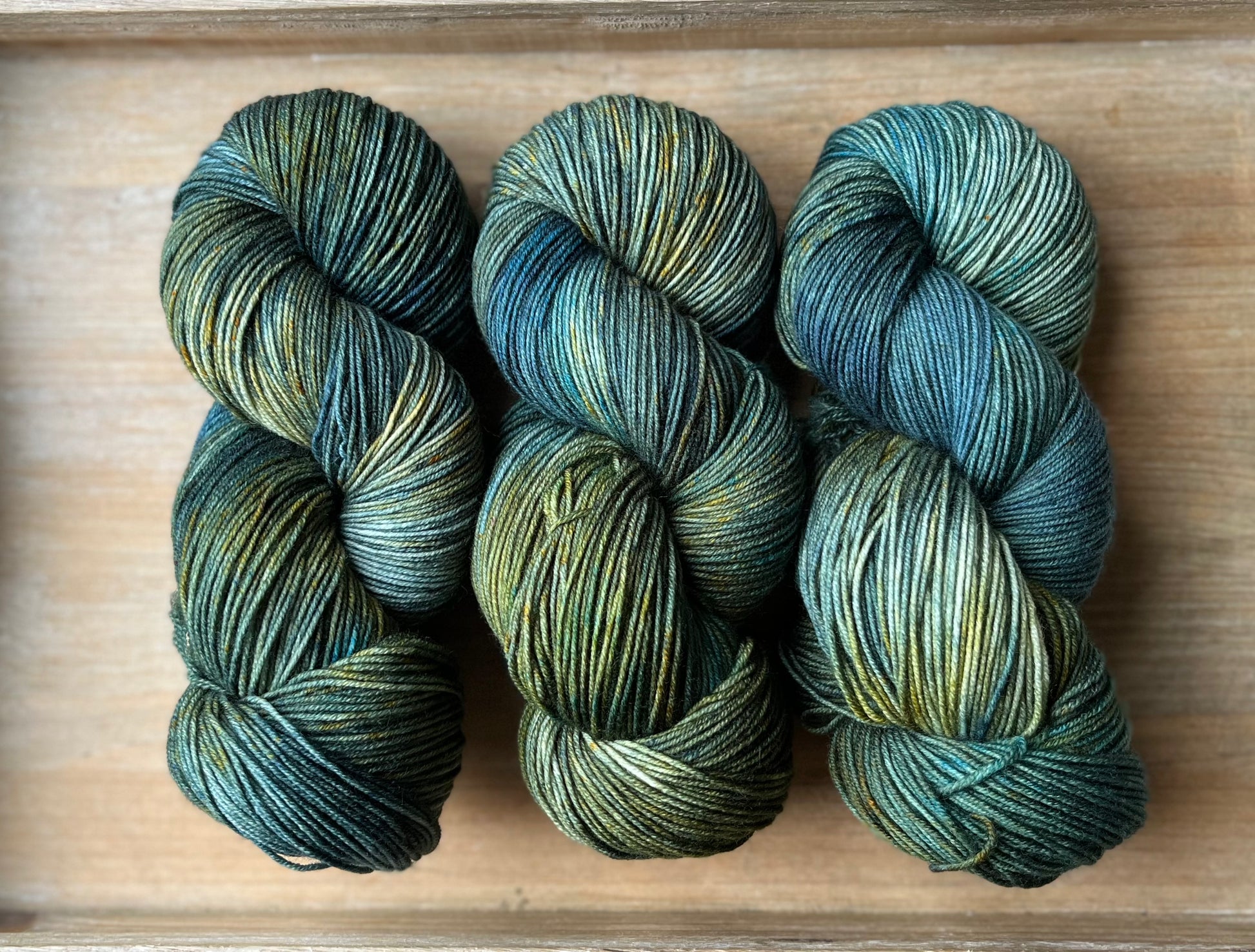 Luxe Sock Base: Luxe Sock is made up of 75% Ultra Fine Merino Wool, 15% Mulberry Silk, and 10% Cashmere. Each skien is 100 grams and 437 yards, 2ply construction. This yarn base is heavenly soft against the skin, and perfect for a special project calling for a high end fingering weight yarn. The Mulberry Silk adds drape and lustre, and the cashmere creates a fuzzy halo effect as you work with it. The colours of dye tend to shine through, looking much more striking and rich compared to some of my samples on Superwash bases. Fibres in this base are sourced from Australia, the wool used in this yarn is ethically produced from sheep that have NOT been mulesed. Hand wash only, lay flat to dry.