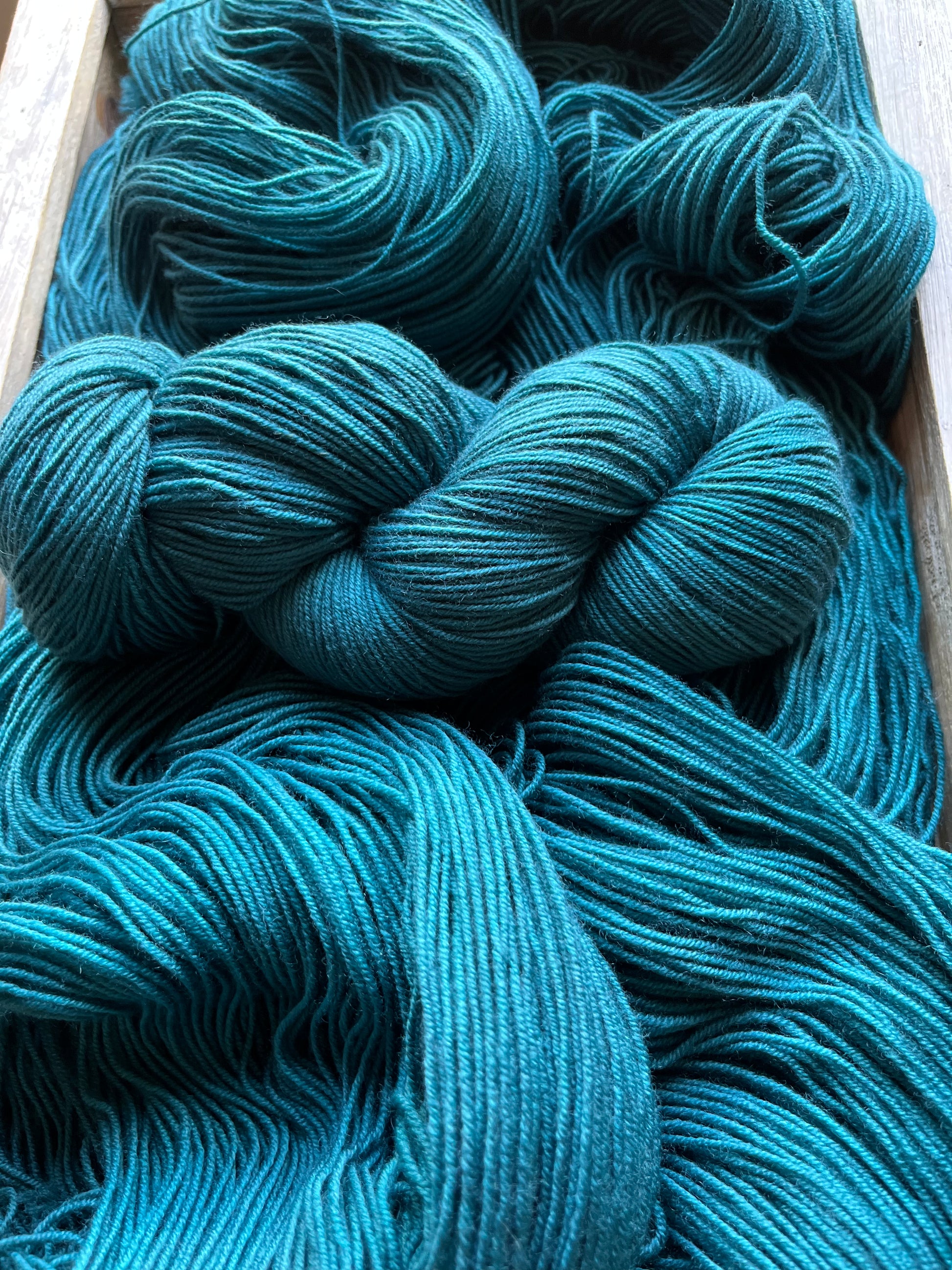 Hidden DK Base: Once a little shop secret, this base is now available all the time! This ultra versatile Double Knit Base is a no-brainer, easy choice for anything meant to wear next to the skin. Made up of 85% Extra Fine Superwash Merino Wool and 15% Nylon, this yarn is unbelievably soft, easy to care for (machine washable on a delicate cycle, in cold water) and takes up the dye colours beautifully. This yarn base (especially) does not agree with the plastic packaging and shipping process, and can often have an off-putting odour upon opening. With a little room to breathe, and some fresh air, you’ll notice it dissipates quickly enough! Each skein is 100 grams and 246 yards, this yarn is a 4ply construction. Fibres in this base are sourced from Australia, the wool used in this yarn is ethically produced from sheep that have NOT been mulesed.
