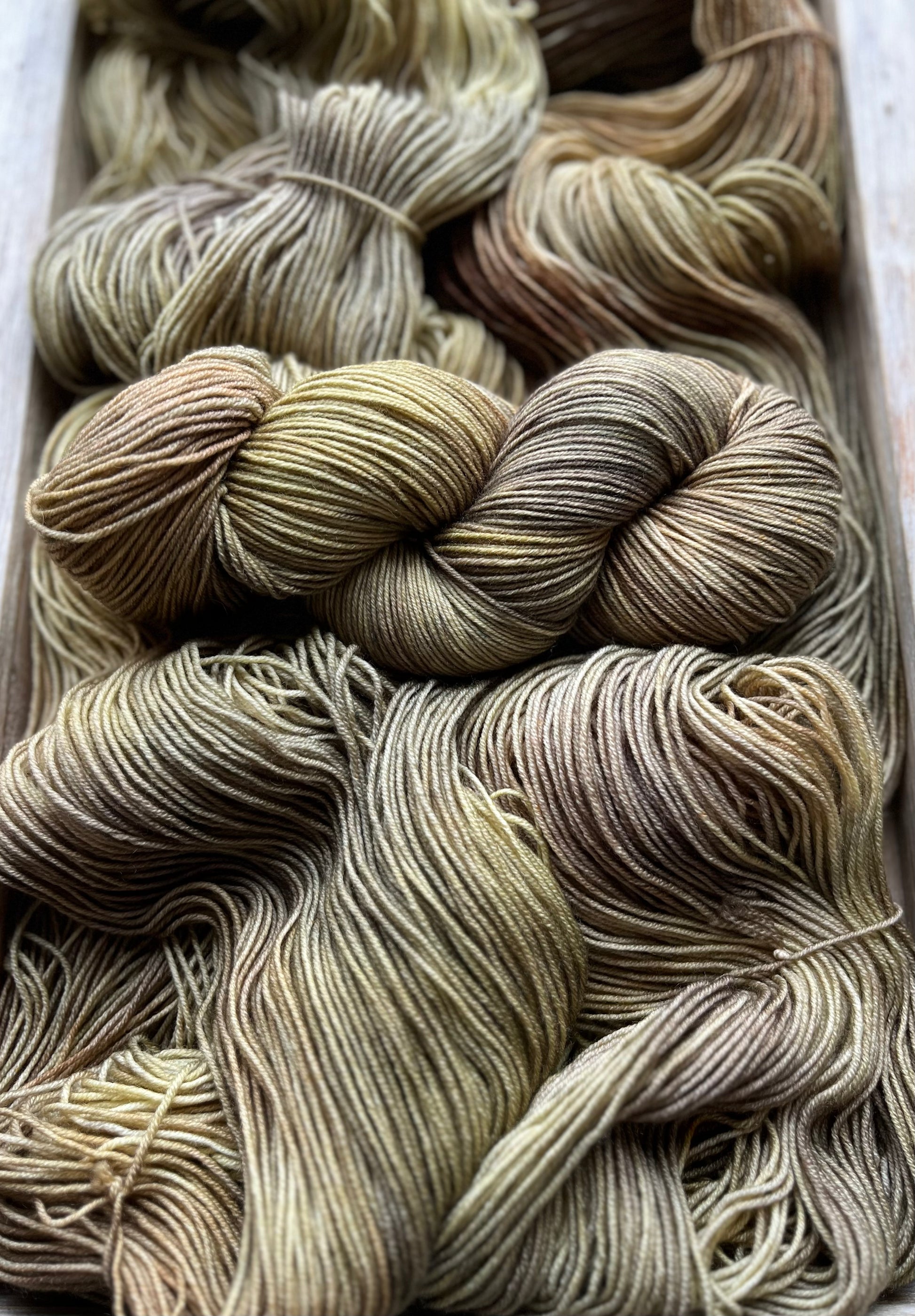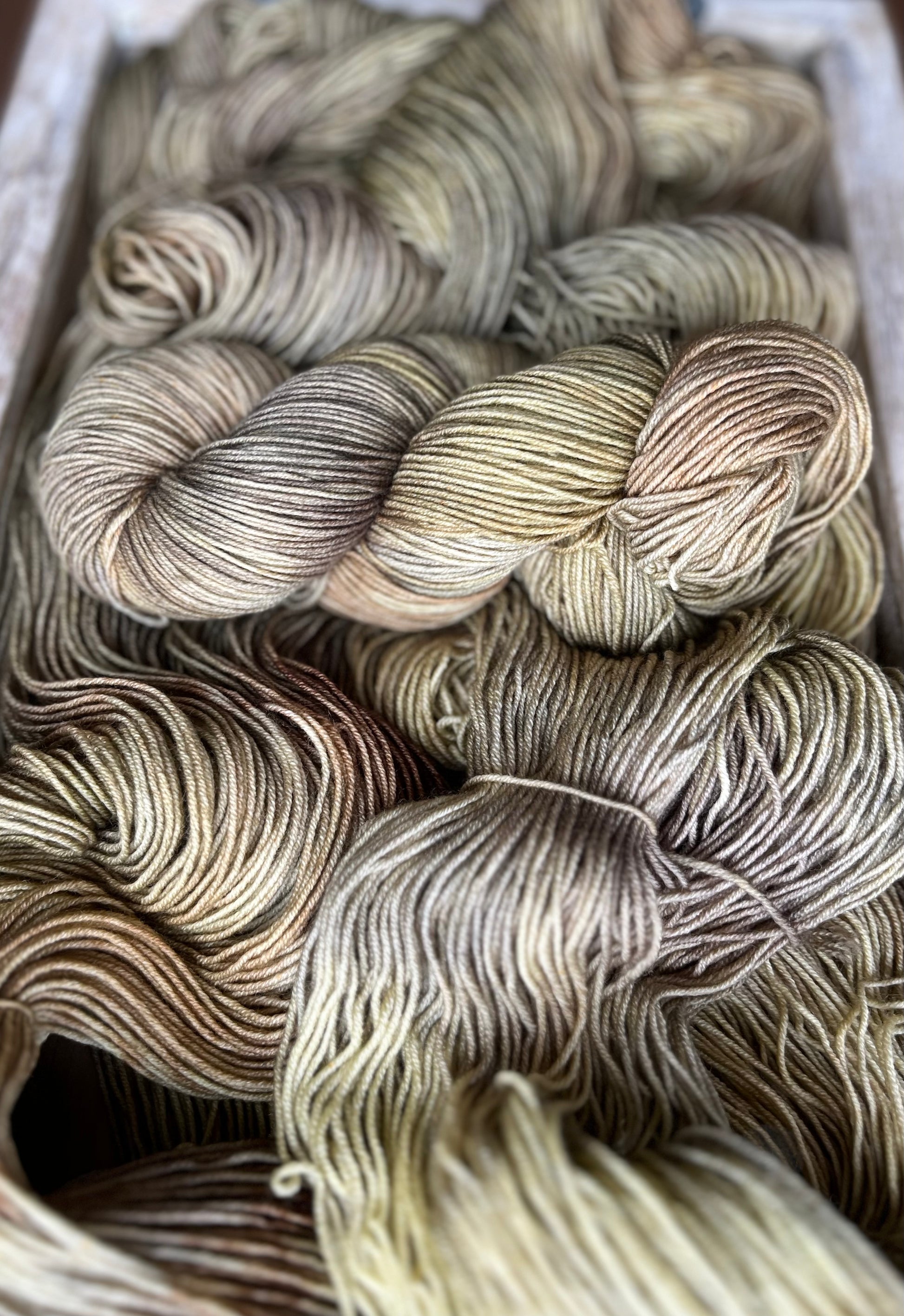Luxe Sock Base: Luxe Sock is made up of 75% Ultra Fine Merino Wool, 15% Mulberry Silk, and 10% Cashmere. Each skien is 100 grams and 437 yards, 2ply construction. This yarn base is heavenly soft against the skin, and perfect for a special project calling for a high end fingering weight yarn. The Mulberry Silk adds drape and lustre, and the cashmere creates a fuzzy halo effect as you work with it. The colours of dye tend to shine through, looking much more striking and rich compared to some of my samples on Superwash bases. Fibres in this base are sourced from Australia, the wool used in this yarn is ethically produced from sheep that have NOT been mulesed. Hand wash only, lay flat to dry.