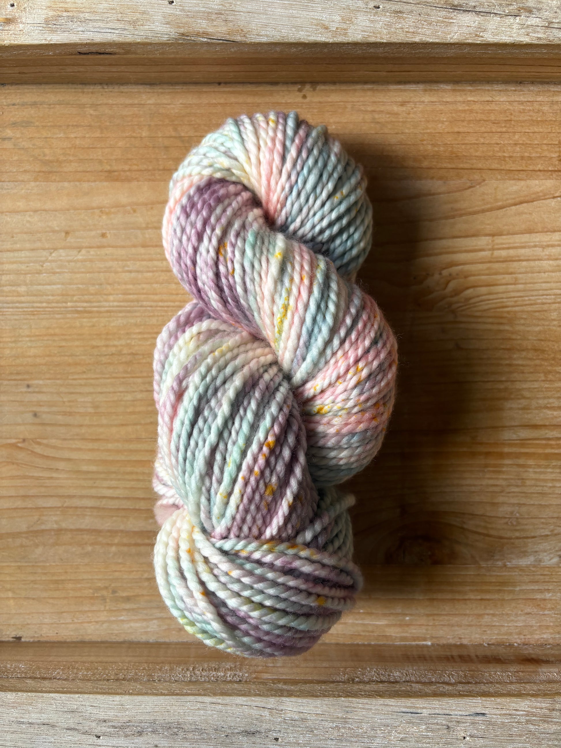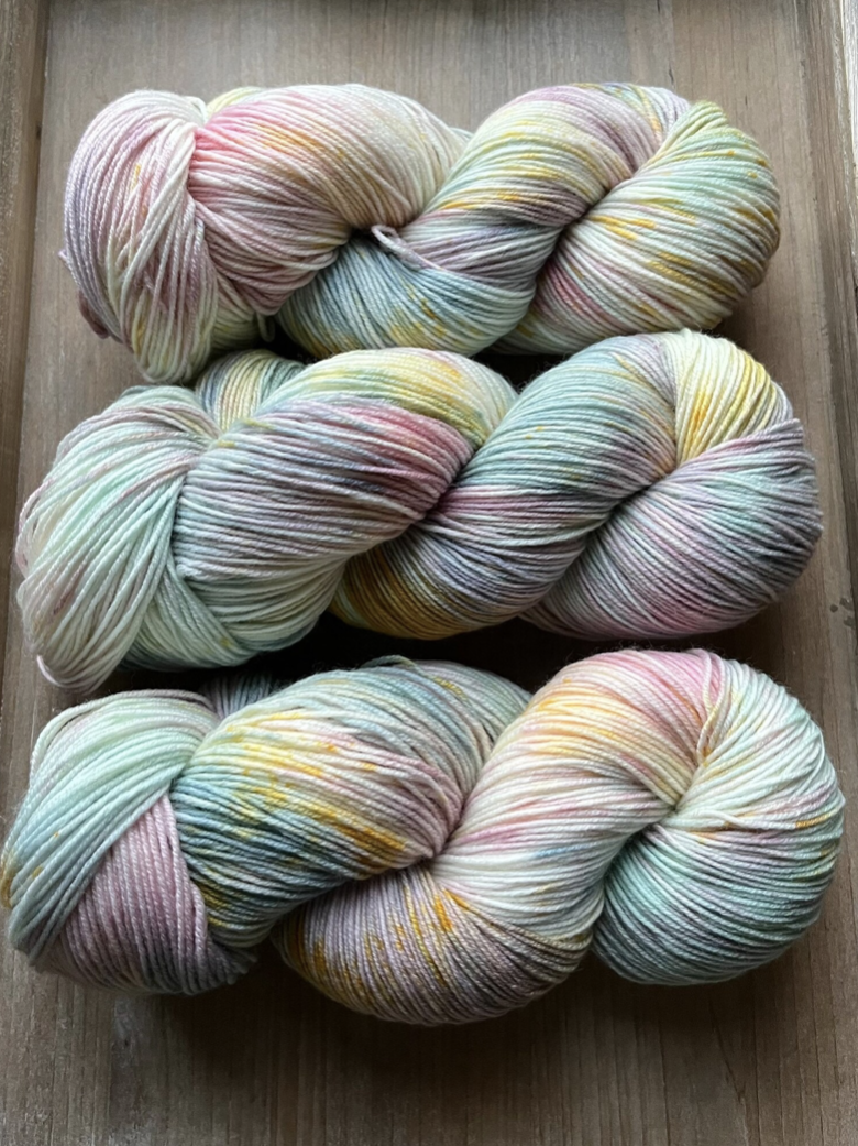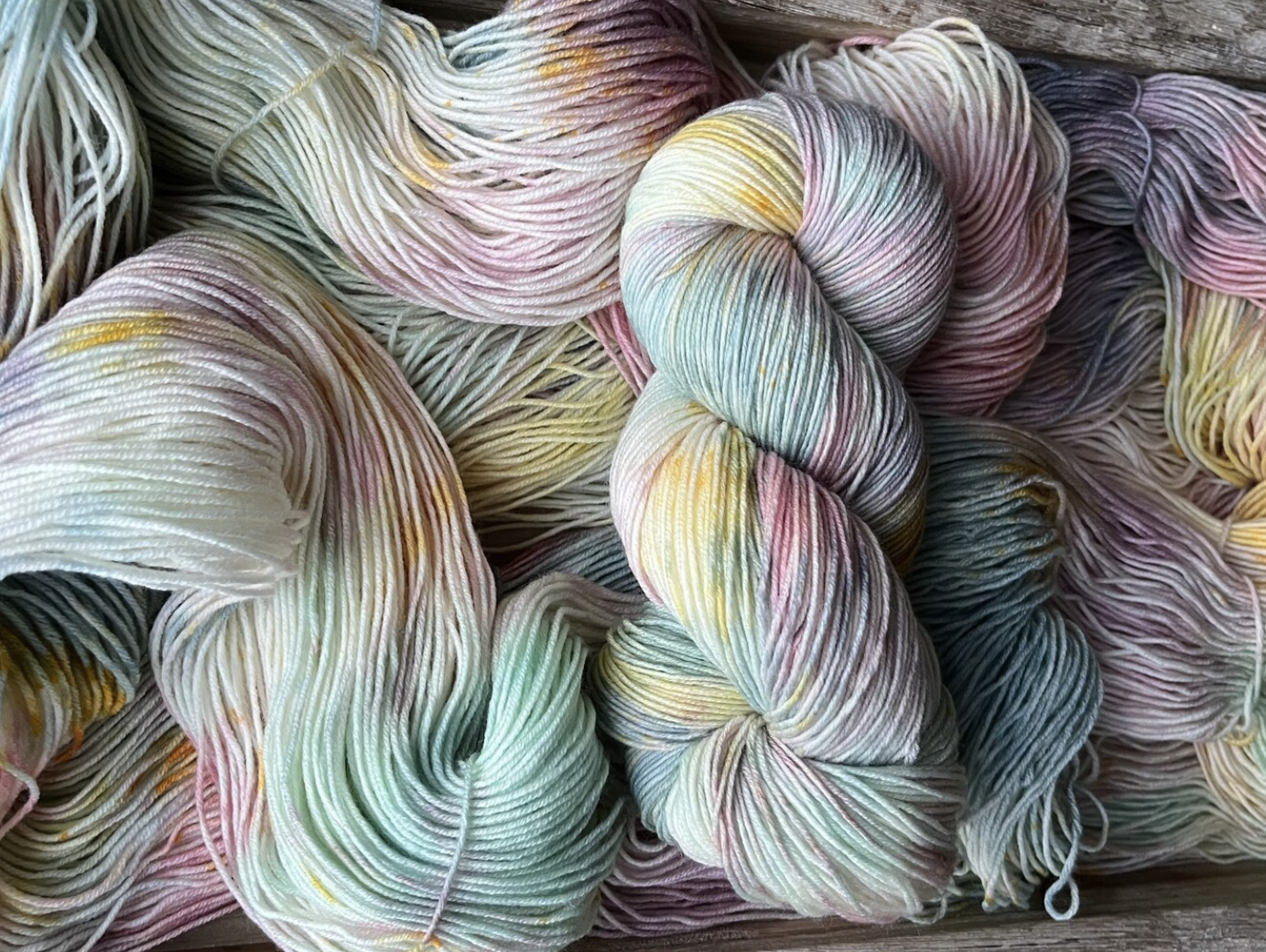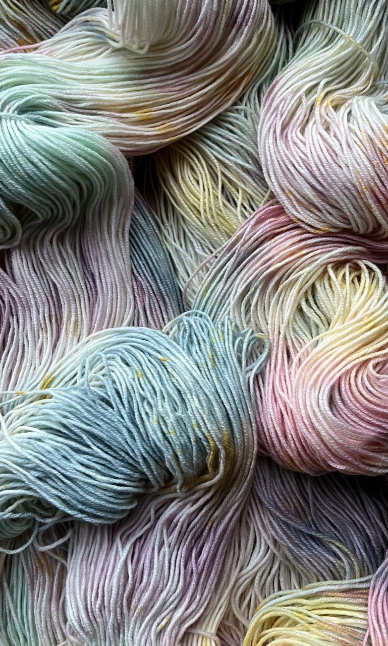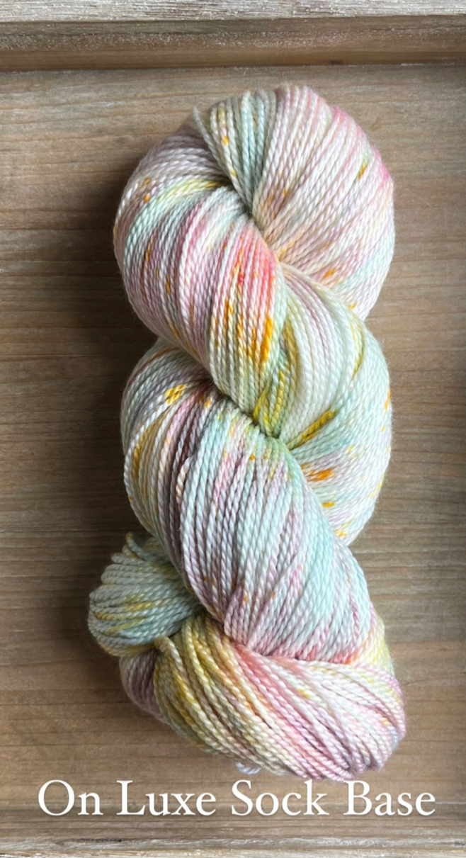 Luxe Sock Base: Luxe Sock is made up of 75% Ultra Fine Merino Wool, 15% Mulberry Silk, and 10% Cashmere. Each skien is 100 grams and 437 yards, 2ply construction. This yarn base is heavenly soft against the skin, and perfect for a special project calling for a high end fingering weight yarn. The Mulberry Silk adds drape and lustre, and the cashmere creates a fuzzy halo effect as you work with it. The colours of dye tend to shine through, looking much more striking and rich compared to some of my samples on Superwash bases. Fibres in this base are sourced from Australia, the wool used in this yarn is ethically produced from sheep that have NOT been mulesed. Hand wash only, lay flat to dry.
