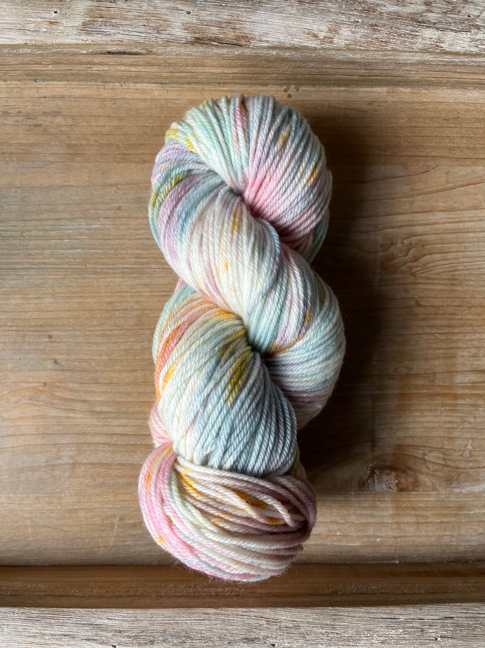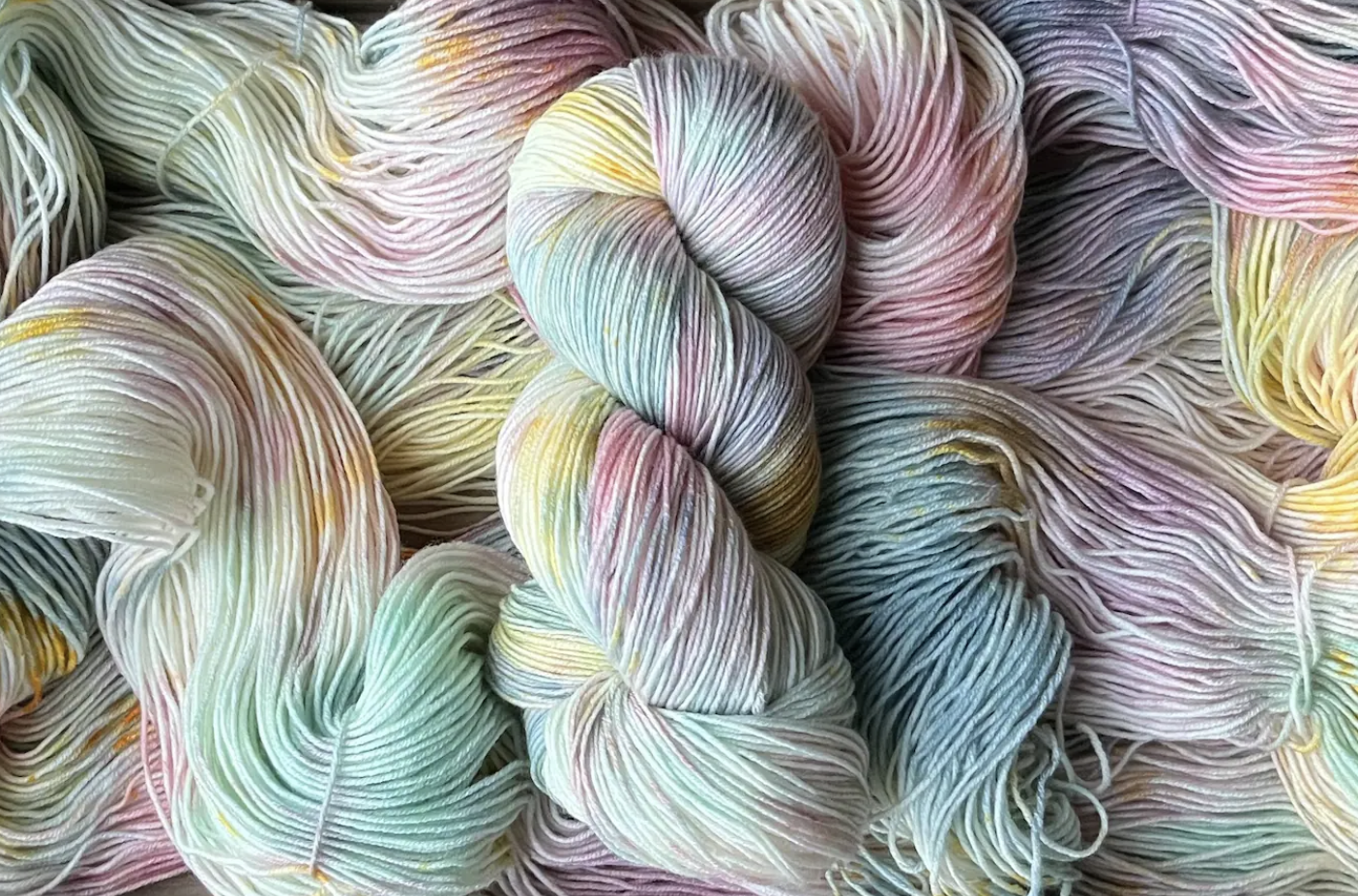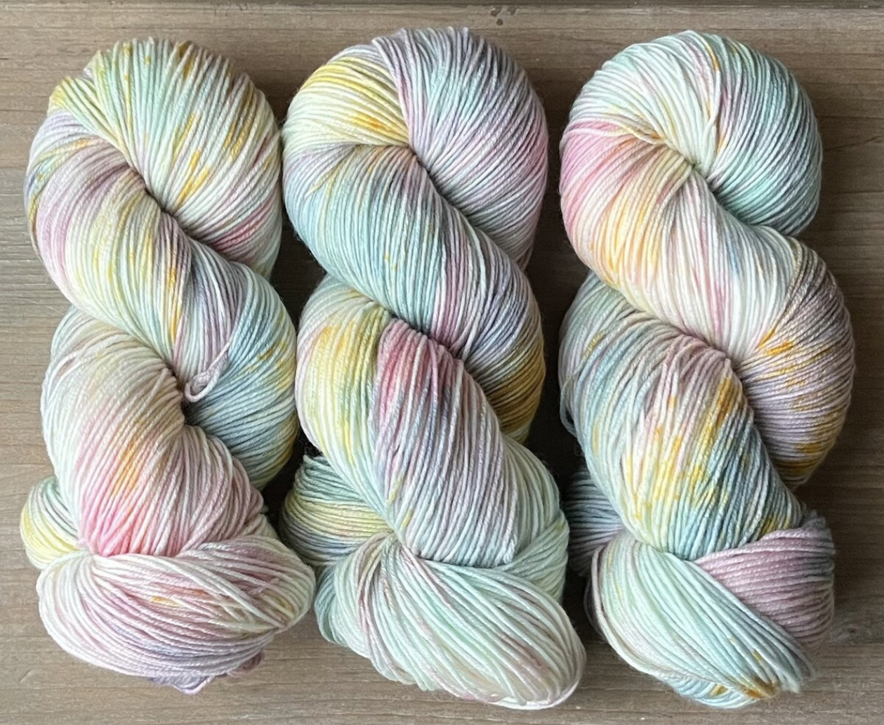 Squishy Sock Base: A soft and plump fingering weight yarn, made up of 80% Superwash Merino Wool and 20% Nylon. Each skien is 114 grams and 437 yards. It has an 8 ply makeup, giving it a substantial feel for a fingering weight yarn, which borderlines sport weight for some. It is machine washable on delicate cycle, thanks to it’s superwash treatment. This is a reliable and practical choice for items like socks, shawls, baby items and other wearable garments. Fibres in this base are sourced from Australia. It is machine washable on delicate cycle, thanks to it’s superwash treatment, and is best laid flat to dry.
