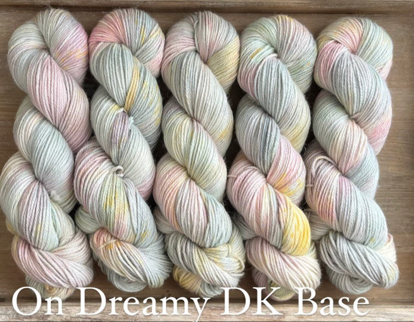 Dreamy DK Base: A superb Double Knit weight yarn that is made up of 70% Baby Alpaca, 20% Silk and 10% Cashmere. Each skein is 100 grams and 246 yards, with a 4 ply construction. This yarn knits up beautifully and is oh so soft against the skin. Due to the nature of this yarn, the colours of the dye tend to be more muted and muddled, softer and subtler than on my superwash bases. Colourways always look different on this base, I try to add photos to the listing whenever possible. This is a luxury yarn base that is a pure pleasure to work with. The silk creates a lustrous hue and the cashmere gives a subtle fuzzy halo effect as you knit with it. Hand wash only, colour bleeding to be expected, especially with the first few washes. Fibres in this base are sourced from South America.